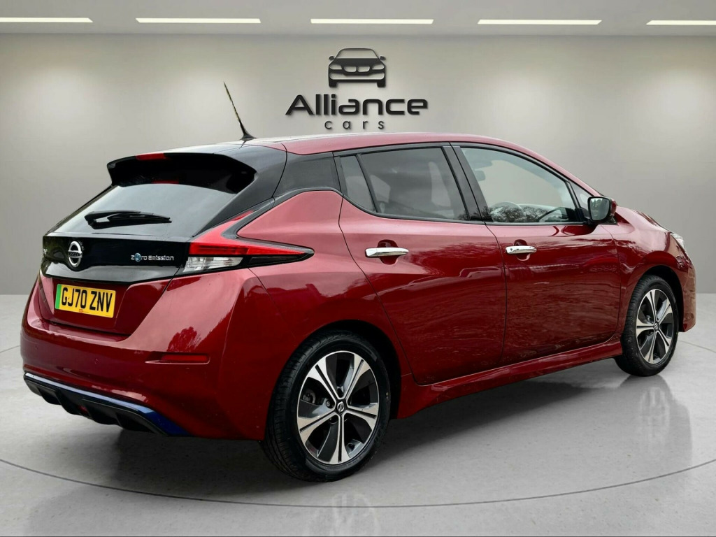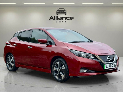 Up to 2 Years Autoguard Nationwide Warranty including Parts and Labour, Full Service History, New 12 Months MOT with no advisories, Euro 6 Emission Standard, Ultra Low Emission Zone (ULEZ) compliant, 2 Keys, Very Economical Battery, Excellent Drive, Recently Serviced, Fully Valeted, Immaculate Condition, All Previous MOT Reports, HPI Clear, Warranted Mileage, Part Exchange Welcome, Finance Available, Drive away the same day, Free Home Delivery up to 10 miles for online orders, All major credit and debit cards accepted, Grab a bargain at this EXCLUSIVE WEB DISCOUNTED PRICE! All transactions are subject to our terms and conditions, please see our website for details. www.alliancecarsltd.co.uk. 12V Socket, 17in Alloy Wheels, 3 Pin EVSE Charging Cable, 50kW CHAdeMO Rapid Charger, 6 Speakers, 6.6kW AC On Board Charger, 60-40 Split Folding Rear Seats, 7in TFT Screen Combimeter, ABS with EBD and Brake Assist, AM-FM-DAB Audio System, AUX Socket, Alarm - Thatcham, Android Auto and Apple CarPlay, Auto Dimming Rear View Mirror, Auto Wipers, Automatic Air Conditioning, Blind Spot Warning, Body Coloured Door Mirrors with Integrated LED Indicators, Door Handles - Chrome, Driver - Passenger - Side - Curtain Airbags, E-Pedal, ESP - Electronic Stability Programme, EV Connect Telematics System, Electric Folding Door Mirrors, Electric Power Steering, Front Centre Console and Armrest, Front Fog Lights, Front Seat Back Pockets, Front and Rear Electric Windows, Gloss Black B-pillar, Halogen Headlamps with LED Signature, Headlights - High Beam Assist, Heat Pack, Heat Pump, Hill Start Assist, ISOFIX Child Seat Anchoring Points - Front and Rear, Illuminated Charge Port, Intelligent Auto Headlights with Follow Me-Home Functionality and Auto Hazard Lights, Intelligent Cruise Control, Intelligent Emergency Braking with Pedestrian Recognition, Intelligent Lane Intervention, Intelligent Trace Control, LED Signature Daytime Running Lights, LED Signature Tail Lights, Lane Departure Warning, Leather D Shaped Steering Wheel, Manually Adjustable Drivers Seat - Slide - Recline and Lifter, Manually Adjustable Passenger Seat - Slide and Recline, Metallic Blue Rear Finisher, Mode 3 Type 2 Charging Cable, Nissan Connect EVO 8in Touchscreen Navigation and Entertainment System, Nissan i-Key, Rear Cross Traffic Alert, Rear Privacy Glass, Rear USB Ports x2, Rear View Camera, Remote Audio Control, Speed Limiter, Start Push Button, Tech Pack, Tilt Adjustable Steering Wheel, Traction Control, Zero Emission Badging - Boot Lid, ProPILOT, ProPILOT including Electronic Parking Brake, Synthetic Leather-Cloth - Black, LED Pack. Full service history