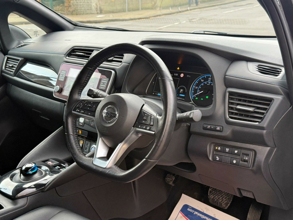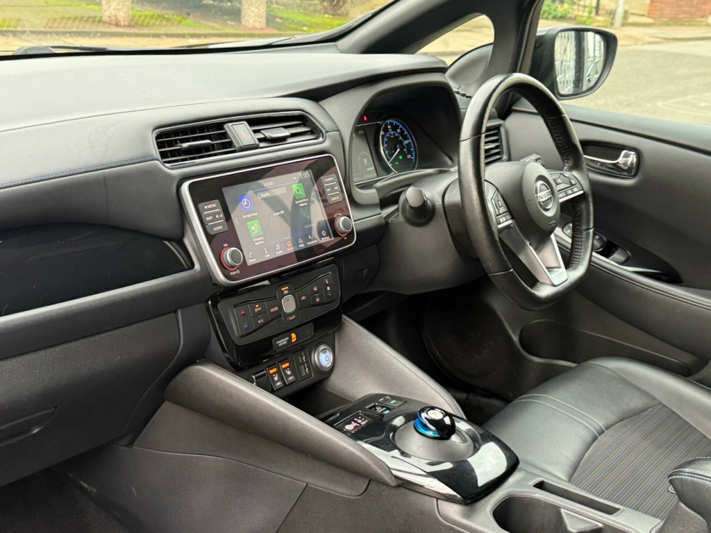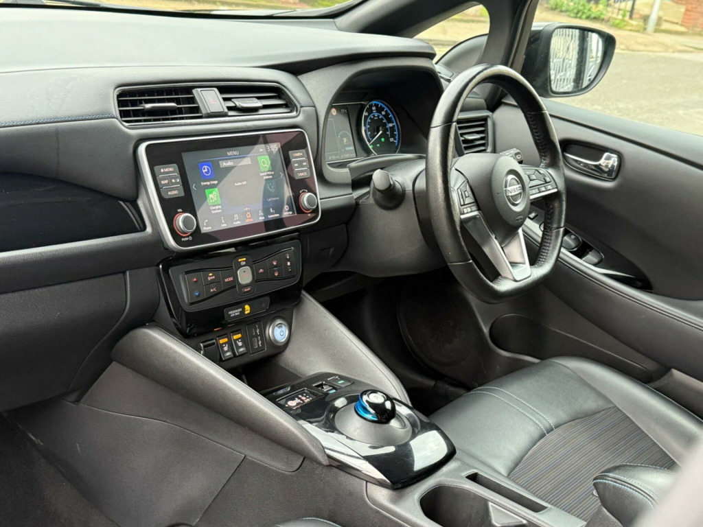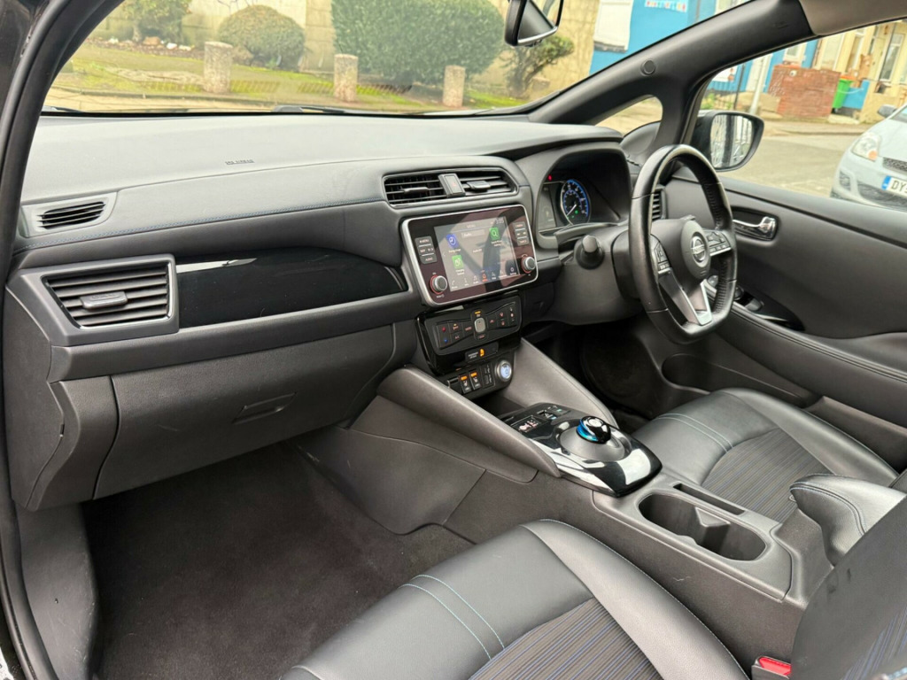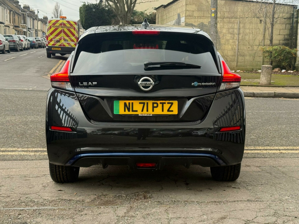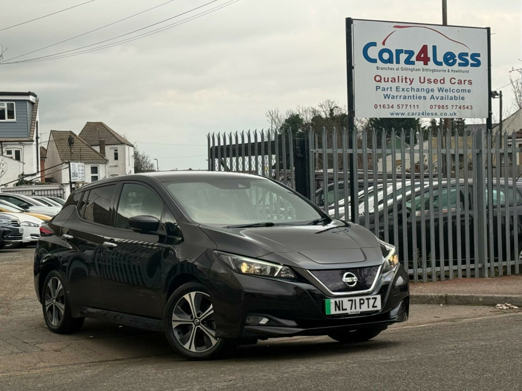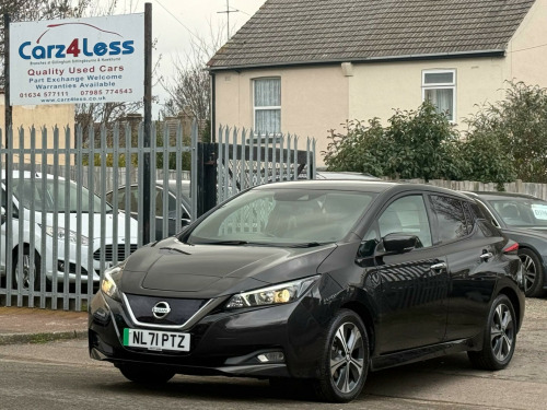ONE FORMER KEEPER, LOW MILES, MOT TILL SEP 2026, FULL SERVICE HISTORY, GOT 2 KEYS, FOR A FREE FINANCE CHECK VISIT OUR WEBSITE WWW.CARZ4LESS.CO.UK This 2021 Nissan Leaf N Connecta offers an excellent opportunity to embrace electric driving with its impressive 168 mile range. As an electric vehicle, it boasts a 40 kWh battery, providing a smooth and quiet driving experience. Charging is convenient, with a full charge at home taking approximately 7 hours and 30 minutes using a 7kW charger, and a rapid charge to 80% achievable in just 1 hour and 20 minutes at a public station. This N Connecta trim level comes equipped with Automatic Air Conditioning, Intelligent Cruise Control for relaxed journeys, and Blind Spot Warning to enhance safety. Connectivity is seamless with Android Auto and Apple CarPlay integration, while the Tech Pack includes a 360 degree camera and front and rear parking sensors for effortless manoeuvring.The Nissan Leaf N Connecta stands out with its generous boot space, offering ample room for shopping or luggage, making it a practical choice for everyday use. The inclusion of features like Intelligent Cruise Control and a 360 degree camera system demonstrates a commitment to driver convenience and safety, setting it apart from other vehicles in its class. This model is designed to make electric motoring accessible and enjoyable, combining modern technology with everyday usability.. 12V Socket, 17in Alloy Wheels, 3 Pin EVSE Charging Cable, 50kW CHAdeMO Rapid Charger, 6 Speakers, 6.6kW AC On Board Charger, 60-40 Split Folding Rear Seats, 7in TFT Screen Combimeter, ABS with EBD and Brake Assist, AM-FM-DAB Audio System, AUX Socket, Alarm - Thatcham, Android Auto and Apple CarPlay, Auto Dimming Rear View Mirror, Auto Wipers, Automatic Air Conditioning, Blind Spot Warning, Body Coloured Door Mirrors with Integrated LED Indicators, Door Handles - Chrome, Driver - Passenger - Side - Curtain Airbags, E-Pedal, ESP - Electronic Stability Programme, EV Connect Telematics System, Electric Folding Door Mirrors, Electric Power Steering, Front Centre Console and Armrest, Front Fog Lights, Front Seat Back Pockets, Front and Rear Electric Windows, Gloss Black B-pillar, Halogen Headlamps with LED Signature, Headlights - High Beam Assist, Heat Pack, Heat Pump, Hill Start Assist, ISOFIX Child Seat Anchoring Points - Front and Rear, Illuminated Charge Port, Intelligent Auto Headlights with Follow Me-Home Functionality and Auto Hazard Lights, Intelligent Cruise Control, Intelligent Emergency Braking with Pedestrian Recognition, Intelligent Lane Intervention, Intelligent Trace Control, LED Signature Daytime Running Lights, LED Signature Tail Lights, Lane Departure Warning, Leather D Shaped Steering Wheel, Manually Adjustable Drivers Seat - Slide - Recline and Lifter, Manually Adjustable Passenger Seat - Slide and Recline, Metallic Blue Rear Finisher, Mode 3 Type 2 Charging Cable, Nissan Connect EVO 8in Touchscreen Navigation and Entertainment System, Nissan i-Key, Rear Cross Traffic Alert, Rear Privacy Glass, Rear USB Ports x2, Rear View Camera, Remote Audio Control, Speed Limiter, Start Push Button, Tech Pack, Tilt Adjustable Steering Wheel, Traction Control, Zero Emission Badging - Boot Lid.