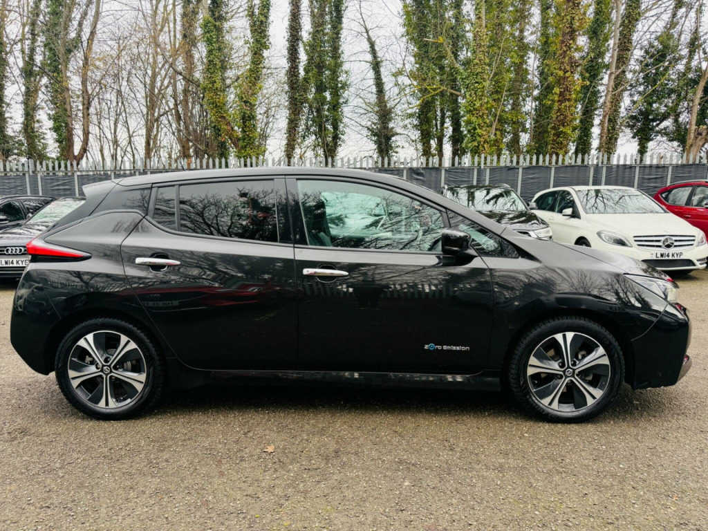 BLACK, FULL SERVICE HISTORY, FINANCE AVAILABLE, NAVIGATION SYSTEM, PARKING CAMERA, LEATHER AND HEATED SEATS, ONLY ONE FORMER KEEPER, SPARE KEYS, PRIVACY GLASS, START/STOP, CRUISE CONTROL,ULEZ COMPLIANT SUPERB DRIVE, VERY ECONOMICAL, ALLOY WHEELS, CLIMATE CONTROL, VERY WELL LOOKED AFTER. 1 USB Port, 12V Socket, 17in Alloy Wheels, 6 Airbags, 6.6kW AC On Board Charger, ABS with EBD, AVM with Moving Object Detector, Alarm - Thatcham, Audio System with 6 Speakers, Auto Hazard Lights, Auto Rain Sensing Wipers, Automatic Headlights - Dusk Sensor, Body Coloured Door Mirrors, Brake Assist, Door Handles - Chrome, E-Pedal, ESP - Electronic Stability Programme, EV Connect Telematics System, EVSE 6M or Mode 3 - 6M, Electric Folding Door Mirrors, Electric Speed-Sensitive Power Steering, Faster Heater, Follow Me Home Headlights, Forward Emergency Braking with Pedestrian Recognition, Front Fog Lights, Front Seat Back Pockets, Front and Rear Electric Windows, Gloss Black B-pillar, Halogen Headlamps with LED Signature, Heated Front and Rear Seats - Heated Steering Wheel, Hill Start Assist, I-Key and PES, ISOFIX on Rear, Integrated Turn Signals in Mirrors, Intelligent Cruise Control, Interior Rear View Mirror with Auto Dimming, Leather Steering Wheel, Manually Adjustable Drivers Seat - Slide - Recline and Lifter, Manually Adjustable Passenger Seat - Slide and Recline, Nissan Connect 2 Kai2 Navi with DAB and Apple Carplay - Android Auto, Nissan Connect EV, Nissan Connect EVO 7in Touchscreen Navigation and Entertainment System, Parking Sensors 4x Front - 4x Back, Quick Charger Capacity, Rear Lamp Styled LED, Rear Privacy Glass, Speed Limiter, Steering Wheel - Heated, Tilt Adjustable Steering Wheel, Trip Computer. Full service history