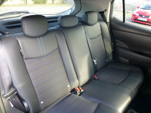 nissan leaf 40kwh 148 bhp n-connecta urban style automatic ev euro6 ulez compliant,the face lifted nissan leaf,Whether youre a city dweller,commuter or just a dedicated 100% electric driver in search of a more exciting ride,this could be the car for you,12V Socket, 6 Speakers,,AM-FM-DAB Audio System,AUX Socket,Android Auto and Apple CarPlay,EV Connect Telematics System,Nissan Connect EVO 8 inch Touch screen,Navigation and Entertainment System,Rear USB Ports x2,Blind Spot Warning,Intelligent Cruise Control,Lane Departure Warning,Rear View Camera,17 inch Alloy Wheels,Body Coloured Door Mirrors with Integrated LED Indicators,Electric Folding Door Mirrors, Front and Rear Electric Windows,Gloss Black B-pillar,Metallic Blue Rear Finisher,Rear Privacy Glass,Zero Emission Badging on the Boot Lid, Front Fog Lights,Halogen Headlamps with LED Signature,High Beam Assist,Intelligent Auto Headlights with Follow Me-Home Functionality and Auto Hazard Lights,LED Signature Daytime Running Lights,LED Signature Tail Lights,60-40 Split Folding Rear Seats,7 inch TFT Screen Combimeter,Auto Dimming Rear View Mirror,Auto Wipers,Automatic Air Conditioning,Front Centre Console and Armrest,Front Seat Back Pockets.Heat Pack,Illuminated Charge Port,Leather D Shaped Steering Wheel,Remote Audio Control,Start Push Button,Tech Pack,Tilt Adjustable Steering Wheel,3 Pin EVSE Charging Cable,50kW CHAdeMO Rapid Charger,6.6kW AC On Board Charger,E-Pedal,Electric Power Steering,Heat Pump,Mode 3 Type 2 Charging Cable,Speed Limiter,ABS with EBD and Brake Assist,Thatcham alarm,ESP-Electronic Stability Programme,Hill Start Assist,ISOFIX Child Seat Anchoring Points-Front and Rear,Intelligent Emergency Braking with Pedestrian Recognition, Intelligent Lane Intervention,Intelligent Trace Control,Nissan i-Key.Rear Cross Traffic Alert,Traction Control•Gloss Black interior trim,Electric folding door mirrors,Gloss black B-pillar,44,000 miles,service history,zero emmissions,finished in nissans [z11] pearl black metallic, , , , , , , , , , , hpi report available on all vehicles