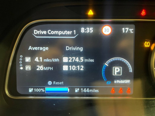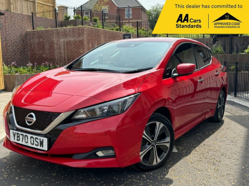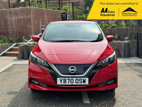 OVER 150 MILES ON A FULL CHARGE ** FREE 12 MONTH AA COVER ** 1 OWNER WITH A NISSAN MAIN DEALER SERVICE RECORD, A LOVELY CLEAN EXAMPLE AND WE WILL APPLY A 6 MONTH NATIONWIDE EV WARRANTY, 2 KEYS AND WE HAVE NATIONIWIDE DELIVERY OPTIONS. FEATURES INCLUDE NAVIGATION, BLUETOOTH, CRUISE, REVERSE CAMERA, PARK SENSORS, LANE DEPARTURE ASSIST, ADAPTIVE CRUISE, USB AND AUX PORTS, APPLE PLAY, CLIAMTE CONTROL, HEATED HALF LEATHER SEATS, CENTRE ARMRESTS, FOLDING MIRRORS, UNMARKED ALLOYS, LED LIGHTS, DAB AUDIO, TINTED GLASS. WE ARE OPEN 6 DAYS A WEEK WITH VIEWINGS BY APPOINTMENT, WE ARE OPEN 6 DAYS A WEEK, 8AM - 5.30PM. NATIONWIDE DELIVERY OPTIONS ARE AVAILABLE CALL 07790 958220. WE HOLD BOTH CHARGE LEADS AND 2 KEYS. 12V Socket, 17in Alloy Wheels, 50kW CHAdeMO Quick Charger, 6 Airbags, 6.6kW AC On Board Charger, 7in Combimeter, Alarm - Thatcham, Anti Lock Braking System - ABS, Audio System with 6 Speakers, Auto Dimming Rear View Mirror, Auto Hazard Lights, Automatic Air Conditioning, Blind Spot Intervention, Blind Spot Warning, Body Coloured Door Mirrors, DAB Radio with Apple CarPlay and Android, Door Handles - Chrome, E-Pedal, Electric Folding Door Mirrors, Electric Power Steering, EV Connect Telematics System, EVSE 6M or Mode 3 - 6M, Front and Rear Electric Windows, Front Fog Lights, Front Seat Back Pockets, Gloss Black B-pillar, Halogen Headlamps with LED Signature, Headlights - Follow Me Home Functio