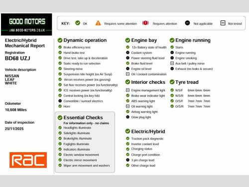+++ YOU CAN BUY ANY CAR WITH A PART PAYMENT OF JUST £500 THE CAR MUST BE COLLECTED/PAID IN FULL WITHIN 7 DAYS +++ +++SAME DAY NATIONWIDE DELIVERY AVAILABLE+++ +++OVER 150 VEHICLES IN STOCK+++WWW.GOOD-MOTORS.CO.UK+++ +++FINANCE AVAILABLE+++HERE WE HAVE ANOTHER CAREFULLY SELECTED PART EXCHANGE VEHICLE, A VERY NICE EXAMPLE, COMES WITH WARRANTY, FULL MAIN DEALER SERVICE HISTORY, 1 FORMER KEEPER, COMES WITH MOT TILL AUGUST 2026, THE VEHICLE IS IN GOOD CONDITION BOTH INSIDE AND OUT. NON-SMOKER OR PET OWNER CAR, SUPERB SPEC INCLUDING: FULL MAP SAT NAV, LEATHER INTERIOR, HEATED FRONT SEATS, COLOUR TOUCH SCREEN DISPLAY, DAB RADIO, BLUETOOTH HANDS FREE, AUDIO STREAMING, USB AND AUXILIARY INPUT SOCKET, DUAL CLIMATE CONTROL. KEY LESS ENTRY, KEY LESS START, CRUISE CONTROL, SPEED LIMITER, DAY TIME RUNNING LIGHTS. REAR LED LIGHTS. AUTO LIGHTS. AUTO WIPERS. ELECTRIC WINDOWS, ELECTRIC POWER FOLDING MIRRORS, CENTRAL LOCKING, AIR CONDITIONING, PARKING SENSORS, REVERSE CAMERA, ALL AROUND CAMERA VIEW, TYRE PRESSURE MONITORING SYSTEM. ISOFIX & CHILD LOCKS. MULTI FUNCTION STEERING WHEEL CONTROLS. PRIVACY GLASS. ALLOYS, SUPPLIED WITH 2 REMOTE KEYS. 35 POINT HEALTH CHECK WITH 20 MILE TEST DRIVE, HPI CLEAR WITH AND VOSA MILEAGE REPORT, EXTENDED RAC WARRANTIES WITH BREAKDOWN COVER AVAILABLE, ALL BANK TRANSFERS WELCOME, VIEW OVER 150 SIMILAR CARS ON OUR WEBSITE +++WWW.GOOD-MOTORS.CO.UK+++ EVERY EFFORT HAS BEEN MADE TO ENSURE THE ACCURACY OF THE INFORMATION ABOVE. HOWEVER, ERRORS MAY OCCUR 1 USB Port, 12V Socket, 17in Alloy Wheels, 6 Airbags, 6.6kW AC On Board Charger, ABS with EBD, AVM with Moving Object Detector, Alarm - Thatcham, Audio System with 6 Speakers, Auto Hazard Lights, Auto Rain Sensing Wipers, Automatic Headlights - Dusk Sensor, Body Coloured Door Mirrors, Brake Assist, Door Handles - Chrome, E-Pedal, ESP - Electronic Stability Programme, EV Connect Telematics System, EVSE 6M or Mode 3 - 6M, Electric Folding Door Mirrors, Electric Speed-Sensitive Power Steering, Faster Heater, Follow Me Home Headlights, Forward Emergency Braking with Pedestria, Front Fog Lights, Front Seat Back Pockets, Front and Rear Electric Windows, Gloss Black B-pillar, Halogen Headlamps with