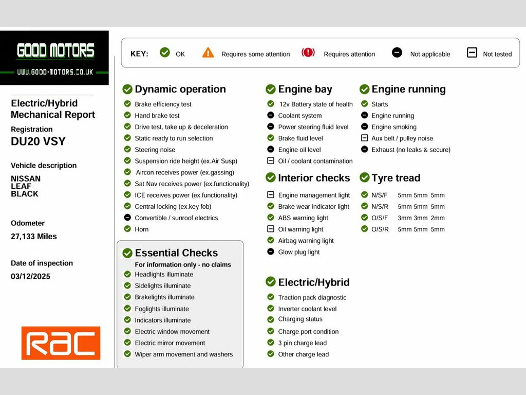 +++ YOU CAN BUY ANY CAR WITH A PART PAYMENT OF JUST £500 THE CAR MUST BE COLLECTED/PAID IN FULL WITHIN 7 DAYS +++ +++SAME DAY NATIONWIDE DELIVERY AVAILABLE+++ +++OVER 150 VEHICLES IN STOCK+++WWW.GOOD-MOTORS.CO.UK+++ +++FINANCE AVAILABLE+++HERE WE HAVE ANOTHER CAREFULLY SELECTED PART EXCHANGE VEHICLE, A VERY NICE EXAMPLE, COMES WITH WARRANTY, COMES WITH 12 MONTHS MOT, THE VEHICLE IS IN GOOD CONDITION BOTH INSIDE AND OUT. NON-SMOKER OR PET OWNER CAR, SUPERB SPEC INCLUDING: FULL MAP SAT NAV, LEATHER INTERIOR, HEATED FRONT SEATS, COLOUR TOUCH SCREEN DISPLAY, DAB RADIO, BLUETOOTH HANDS FREE, AUDIO STREAMING, USB AND AUXILIARY INPUT SOCKET, DUAL CLIMATE CONTROL. KEY LESS ENTRY, KEY LESS START, CRUISE CONTROL, SPEED LIMITER, DAY TIME RUNNING LIGHTS. REAR LED LIGHTS. AUTO LIGHTS. AUTO WIPERS. ELECTRIC WINDOWS, ELECTRIC POWER FOLDING MIRRORS. CENTRAL LOCKING, AIR CONDITIONING, PARKING SENSORS, REVERSE CAMERA, ALL AROUND CAMERA VIEW, TYRE PRESSURE MONITORING SYSTEM. ISOFIX & CHILD LOCKS. MULTI FUNCTION STEERING WHEEL CONTROLS. PRIVACY GLASS. ALLOYS, SUPPLIED WITH 2 REMOTE KEYS. 35 POINT HEALTH CHECK WITH 20 MILE TEST DRIVE, HPI CLEAR WITH AND VOSA MILEAGE REPORT, EXTENDED RAC WARRANTIES WITH BREAKDOWN COVER AVAILABLE, ALL BANK TRANSFERS WELCOME, VIEW OVER 150 SIMILAR CARS ON OUR WEBSITE +++WWW.GOOD-MOTORS.CO.UK+++ EVERY EFFORT HAS BEEN MADE TO ENSURE THE ACCURACY OF THE INFORMATION ABOVE. HOWEVER, ERRORS MAY OCCUR. CHECK WITH A SALESPERSON ABOUT ITEMS WHICH MAY AFFECT YO 12V Socket, 17in Alloy Wheels, 3 Pin EVSE Charging Cable, 50kW CHAdeMO Rapid Charger, 6 Speakers, 6.6kW AC On Board Charger, 60-40 Split Folding Rear Seats, 7in TFT Screen Combimeter, ABS with EBD and Brake Assist, AM-FM-DAB Audio System, AUX Socket, Alarm - Thatcham, Android Auto and Apple CarPlay, Auto Dimming Rear View Mirror, Auto Wipers, Automatic Air Conditioning, Blind Spot Warning, Body Coloured Door Mirrors with Integrat, Door Handles - Chrome, Driver - Passenger - Side - Curtain Airb, E-Pedal, ESP - Electronic Stability Programme, EV Connect Telematics System, Electric Folding Door Mirrors, Electric Power Steering, Front Centre Console and Armrest, Front Fog Lights, Front Seat Back
