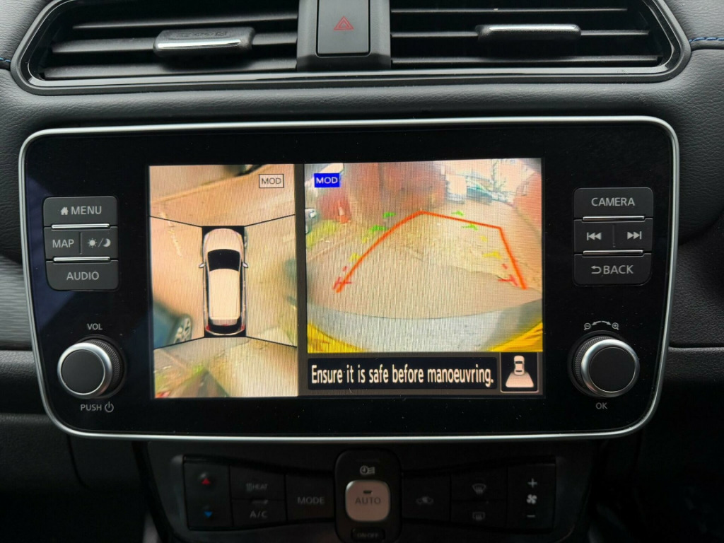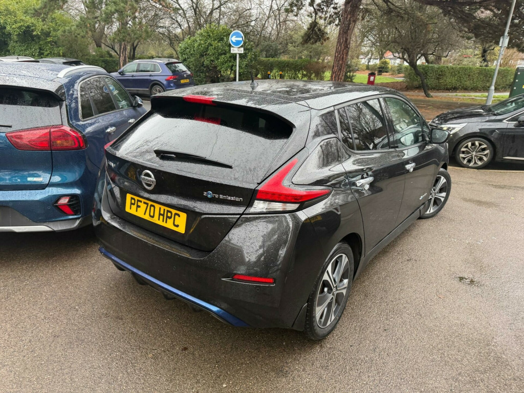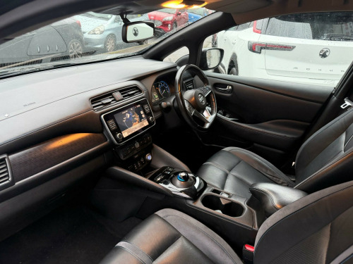Discover this 2020 Nissan Leaf Tekna, a superb electric vehicle offering a blend of efficiency and advanced technology. With its 40 kWh battery, this Leaf provides a maximum range of 168 miles when new, making it a practical choice for daily commutes and longer journeys. Charging is convenient, with a full charge at home taking approximately 7 hours and 30 minutes using a 7kW charger, while rapid public charging can replenish the battery from empty to 80% in just 1 hour and 20 minutes.This Tekna trim level is equipped with notable features designed to enhance your driving experience. Enjoy the ease of Nissan i-Key with keyless entry, and maintain perfect comfort with automatic air conditioning and climate control. The LED pack illuminates your way with bright LED headlights, while seamless smartphone integration is provided through Android Auto and Apple CarPlay. For an immersive audio experience, the BOSE Premium Audio System with 7 speakers delivers exceptional sound quality. Furthermore, the Nissan Leaf boasts a large boot space, offering ample room for your shopping and luggage, setting it apart from many other vehicles in its class. v socket, 17in alloy wheels, 3 pin evse charging cable, 50kw chademo rapid charger, 6.6kw ac on board charger, 60-40 split folding rear seats, 7in tft screen combimeter, abs with ebd and brake assist, am-fm-dab audio system, aux socket, alarm - thatcham, android auto and apple carplay, auto dimming rear view mirror, auto wipers, automatic air conditioning, bose premium audio system with 7 speakers, blind spot warning, body coloured door mirrors with integrated led indicators, door handles - chrome, driver - passenger - side - curtain airbags, e-pedal, esp - electronic stability programme, ev connect telematics system, electric folding door mirrors, electric parking brake, electric power steering, front centre console and armrest, front seat back pockets, front and rear electric windows, gloss black b-pillar, headlights - high beam assist, heat pack, heat pump, hill start assist, isofix child seat anchoring points - front and rear, illuminated charge port, intelligent auto headlights with follow me-home functionality and auto hazard lights, intelligent cruise control, intelligent emergency braking with pedestrian recognition, intelligent lane intervention, intelligent trace control, led pack, led signature daytime running lights, led signature tail lights, lane departure warning, leather d shaped steering wheel, manually adjustable drivers seat - slide - recline and lifter, manually adjustable passenger seat - slide and recline, metallic blue rear finisher, mode 3 type 2 charging cable, nissan connect evo 8in touchscreen navigation and entertainment system, nissan i-key, propilot, rear cross traffic alert, rear privacy glass, rear usb ports x2, rear view camera, remote audio control, speed limiter, start push button, tech pack, tilt adjustable steering wheel, traction control, zero emission badging - boot lid, zero emission badging - doors
