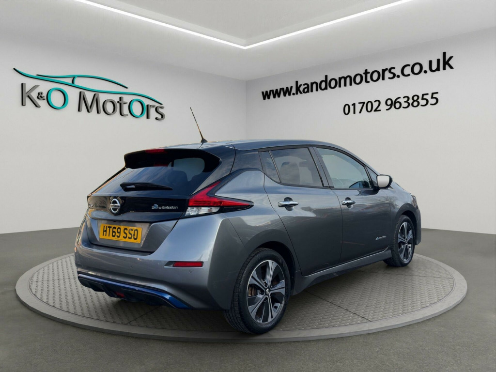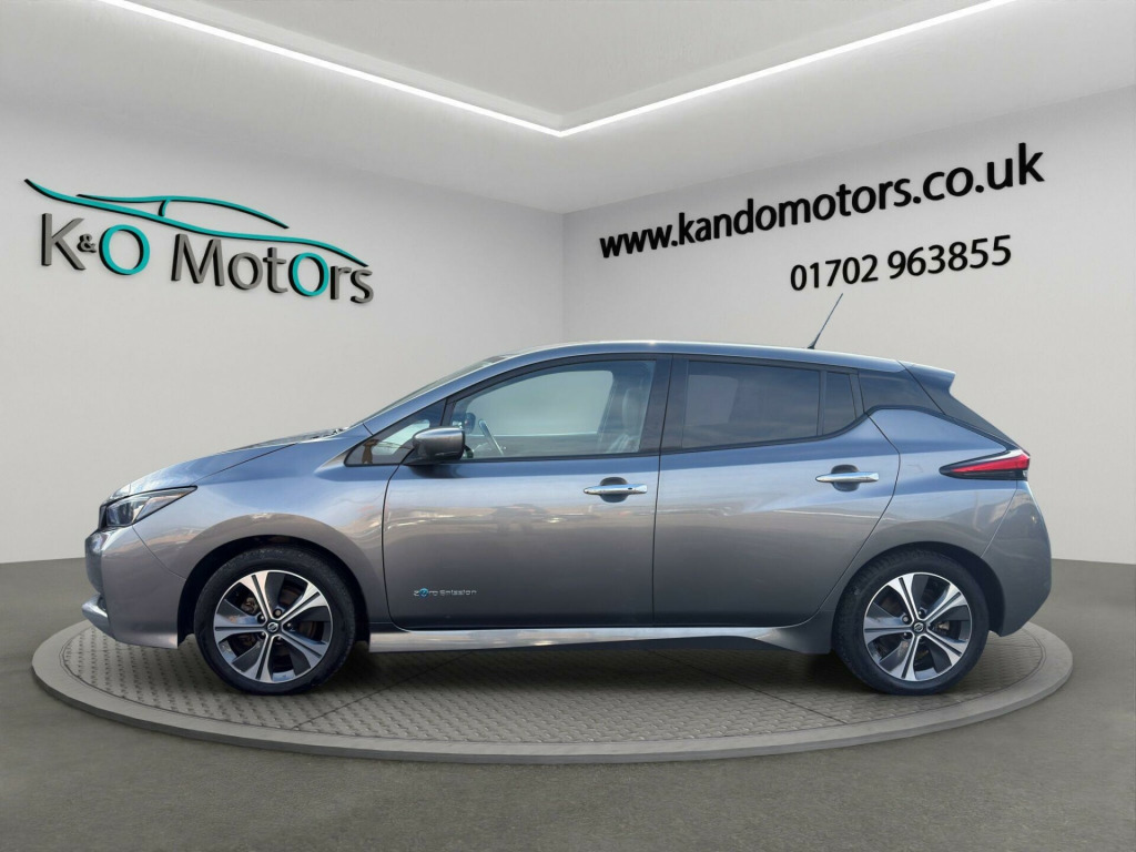This 2020 Nissan Leaf Tekna, finished in metallic grey, is ULEZ compliant and offered for sale in Southend, Essex. It benefits from fantastic service history, some great optional extras such as full 360 camera, satnav, heated front and rear seats, etc! The car has been fully prepared and is ready for its next owner today.K&O Motors, your trusted independent car dealer in Southend-on-Sea, Essex, specialising in quality used cars at competitive prices. All vehicles are hand-selected for condition, value, and performance and are available for immediate viewing. We are a family run business with 8 staff members (7 are family!) and offer a much more friendly environment to buy your next car than some of the bigger supermarket dealers!At K&O Motors in Southend, every vehicle is HPI clear and undergoes a comprehensive 150 point health check for complete peace of mind. We’re proud to be ranked in the top 5% of AutoTrader dealers for five consecutive years, earning the “Highly Rated for Customer Service” award every year thanks to our commitment to customer satisfaction.Ask a team member how to secure this vehicle today with a fully refundable deposit scheme from as little as £250.With over 300 verified 5-star reviews and a 99%+ customer satisfaction rate, you can buy with confidence. We offer competitive part exchange, flexible finance options for all credit backgrounds (including poor credit), and nationwide delivery. For added reassurance, nationwide warranty cover is available for up to 3 years.We’re conveniently located in Southend, Essex, with free collection from Southend Central or Prittlewell train stations. People have also flown into London Southend airport to visit us! Viewings is advised by appointment.Opening hours: Mon–Fri 9:15am–5.30pm | Sat 9:15am–1pm. Out-of-hours appointments available on request.K&O Motors – Quality Used Cars in Southend, Essex. Contact us today.. 12V Socket, 17in Alloy Wheels, 3 Pin EVSE Charging Cable, 50kW CHAdeMO Rapid Charger, 6.6kW AC On Board Charger, 60-40 Split Folding Rear Seats, 7in TFT Screen Combimeter, ABS with EBD and Brake Assist, AM-FM-DAB Audio System, AUX Socket, Alarm - Thatcham, Android Auto and Apple CarPlay, Auto Dimming Rear View Mirror, Auto Wipers, Automatic Air Conditioning, BOSE Premium Audio System with 7 Speakers, Blind Spot Warning, Body Coloured Door Mirrors with Integrated LED Indicators, Door Handles - Chrome, Driver - Passenger - Side - Curtain Airbags, E-Pedal, ESP - Electronic Stability Programme, EV Connect Telematics System, Electric Folding Door Mirrors, Electric Parking Brake, Electric Power Steering, Front Centre Console and Armrest, Front Seat Back Pockets, Front and Rear Electric Windows, Gloss Black B-pillar, Headlights - High Beam Assist, Heat Pack, Heat Pump, Hill Start Assist, ISOFIX Child Seat Anchoring Points - Front and Rear, Illuminated Charge Port, Intelligent Auto Headlights with Follow Me-Home Functionality and Auto Hazard Lights, Intelligent Cruise Control, Intelligent Emergency Braking with Pedestrian Recognition, Intelligent Lane Intervention, Intelligent Trace Control, LED Pack, LED Signature Daytime Running Lights, LED Signature Tail Lights, Lane Departure Warning, Leather D Shaped Steering Wheel, Manually Adjustable Drivers Seat - Slide - Recline and Lifter, Manually Adjustable Passenger Seat - Slide and Recline, Metallic Blue Rear Finisher, Mode 3 Type 2 Charging Cable, Nissan Connect EVO 8in Touchscreen Navigation and Entertainment System, Nissan i-Key, ProPILOT, Rear Cross Traffic Alert, Rear Privacy Glass, Rear View Camera, Remote Audio Control, Speed Limiter, Start Push Button, Tech Pack, Tilt Adjustable Steering Wheel, Traction Control, USB Port.