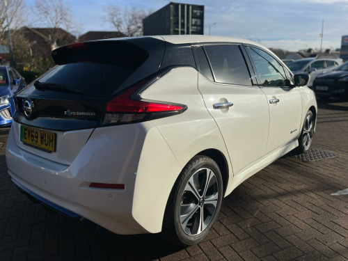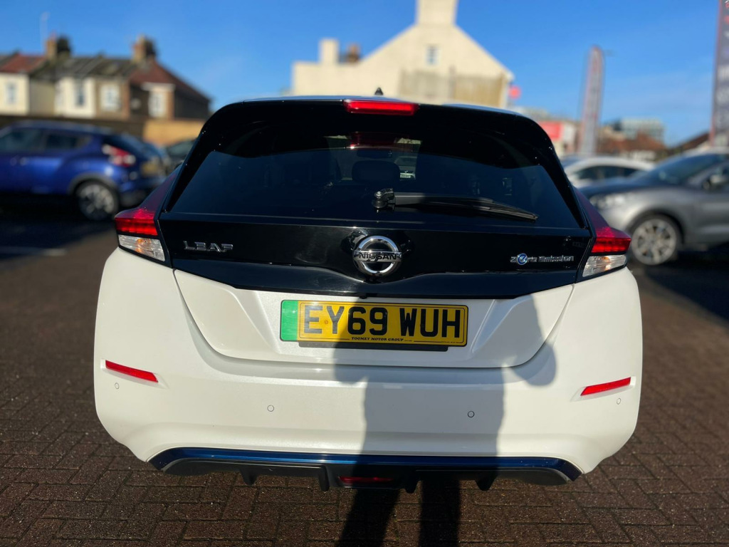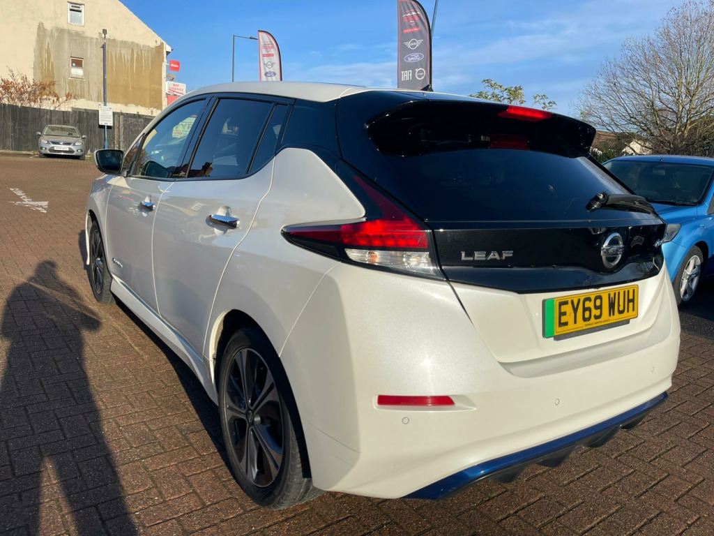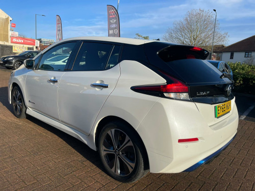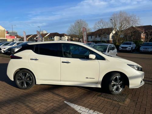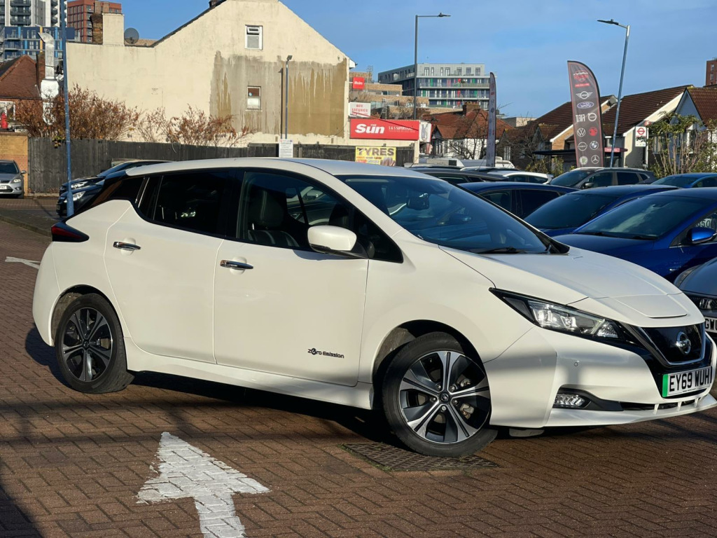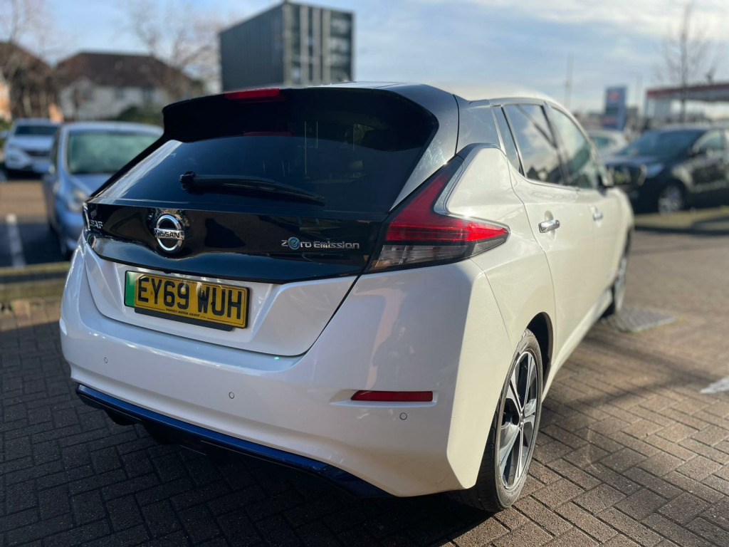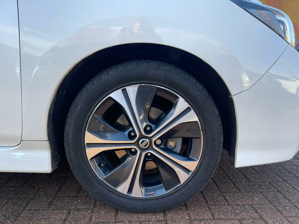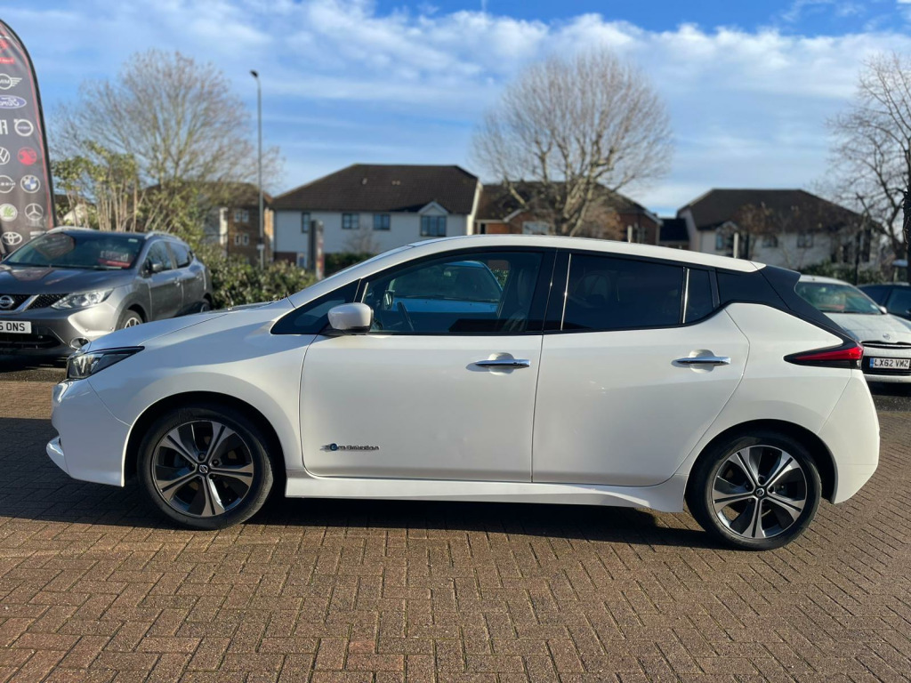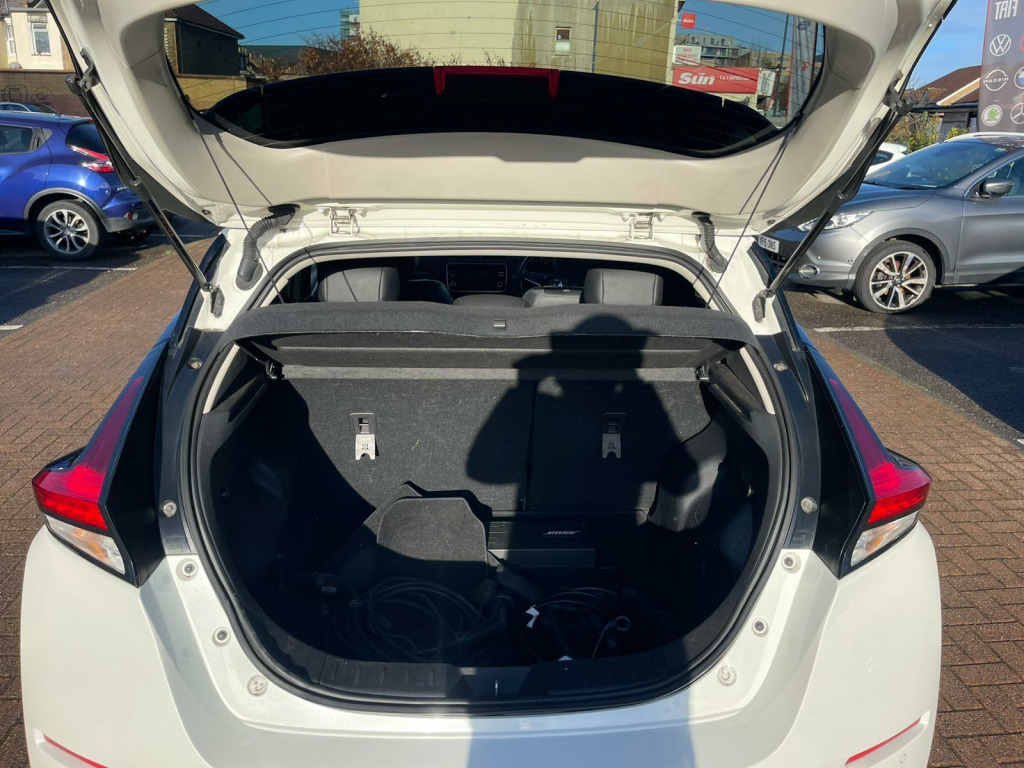 Discover this 2019 Nissan Leaf Tekna, a superb example of electric motoring. This Tekna variant boasts a 40 kWh battery, offering a maximum range of 168 miles when new, making it ideal for both daily commutes and longer journeys. Charging is convenient, with a full charge at home taking approximately 7 hours and 30 minutes using a 7kW charger, and rapid public charging reaching 80% in just 1 hour and 20 minutes.This Nissan Leaf Tekna is equipped with a suite of intelligent features designed to enhance your driving experience. Enjoy the convenience of Intelligent Auto Headlights with Full LED illumination and automatic dusk sensing, ensuring optimal visibility. The heated steering wheel provides comfort on colder days, while Intelligent Cruise Control adapts to traffic flow. Parking is made effortless with the AVM (Around View Monitor) featuring a Moving Object Detector, offering a 360 degree camera view. Furthermore, the generous boot space provides ample room for all your luggage and shopping needs, setting this Leaf apart from other vehicles in its class. usb port, 12v socket, 17in alloy wheels, 6 airbags, 6.6kw ac on board charger, abs with ebd, avm with moving object detector, alarm - thatcham, auto hazard lights, auto rain sensing wipers, automatic headlights - dusk sensor, bose premium audio system with 7 speakers, body coloured door mirrors, brake assist, door handles - chrome, e-pedal, esp - electronic stability programme, ev connect telematics system, evse 6m or mode 3 - 6m, electric folding door mirrors, electric parking brake, electric speed-sensitive power steering, faster heater, follow me home headlights, forward emergency braking with pedestrian recognition, front fog lights, front seat back pockets, front and rear electric windows, gloss black b-pillar, heated front and rear seats - heated steering wheel, hill start assist, i-key and pes, isofix on rear, integrated turn signals in mirrors, intelligent auto headlight with full led, intelligent cruise control, interior rear view mirror with auto dimming, leather steering wheel, manually adjustable drivers seat - slide - recline and lifter, manually adjustable passenger seat - slide and recline, nissan connect 2 kai2 navi with dab and apple carplay - android auto, nissan connect ev, nissan connect evo 7in touchscreen navigation and entertainment system, parking sensors 4x front - 4x back, propilot, quick charger capacity, rear lamp styled led, rear privacy glass, speed limiter, steering wheel - heated, tilt adjustable steering wheel, trip computer