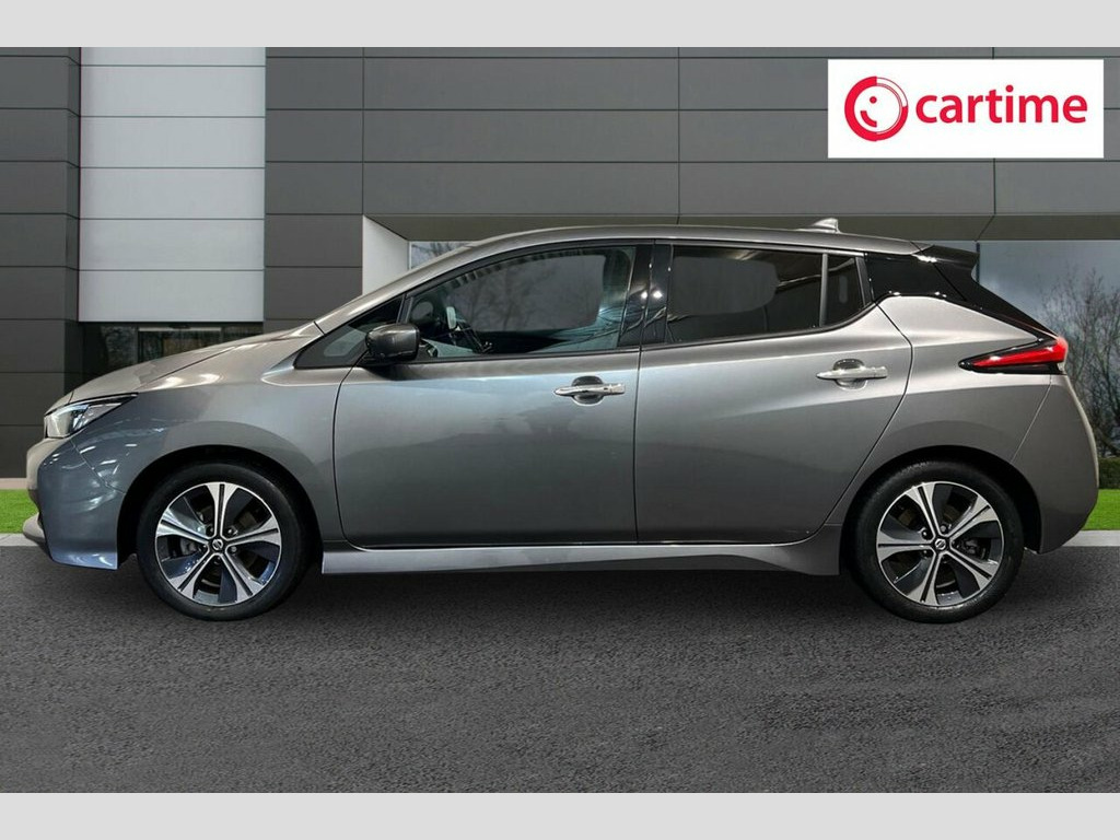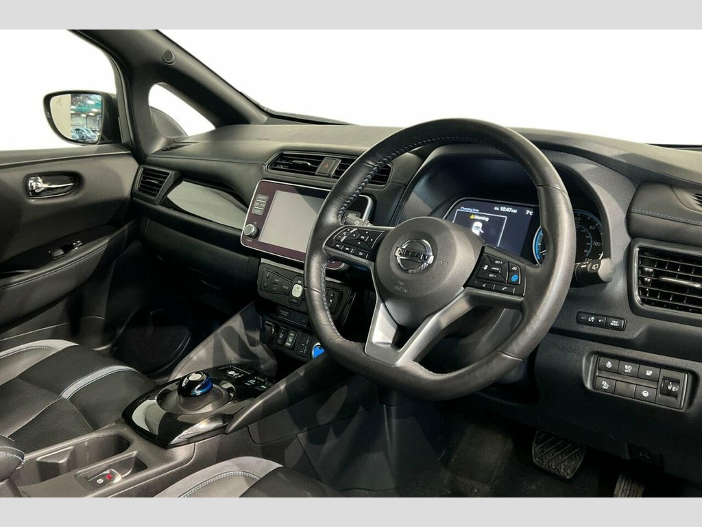 This 2021 Nissan Leaf Tekna has had only one owner and boasts a clear vehicle history check, offering you peace of mind. As a fully electric vehicle with a 40 kWh battery, it provides a maximum range of 168 miles when new. Charging is convenient, with a full charge at home on a 7kW charger taking approximately 7 hours and 30 minutes, while rapid public charging can take you from empty to 80% in just 1 hour and 20 minutes. This Tekna model comes equipped with a DAB radio featuring Apple CarPlay and Android Auto, an LED Pack for enhanced visibility, and Blind Spot Warning for added safety. You'll also appreciate the Automatic Air Conditioning and the Heat Pack, which includes heated seats and a heated steering wheel for comfort in all conditions. The generous boot space in this Nissan Leaf Tekna ensures you have plenty of room for shopping or luggage. The inclusion of features like Apple CarPlay and Android Auto, along with Blind Spot Warning and LED headlights, demonstrates a higher specification compared to many other vehicles in its class. These thoughtful additions enhance both the convenience and safety of your driving experience, making this electric Nissan Leaf a well appointed and practical choice. 12V Socket, 17in Alloy Wheels, 50kW CHAdeMO Quick Charger, 6 Airbags, 6.6kW AC On Board Charger, 7in Combimeter, 8in Touchscreen Entertainment System, Alarm - Thatcham, Anti Lock Braking System - ABS, Auto Dimming Rear View Mirror, Auto Hazard Lights, Automatic Air Conditioning, Blind Spot Intervention, Blind Spot Warning, Body Coloured Door Mirrors, BOSE Premium Audio System with 7 Speaker, Ceramic Grey with Pearl Black Roof, DAB Radio with Apple CarPlay and Android, Door Handles - Chrome, E-Pedal, Electric Folding Door Mirrors, Electric Power Steering, EVSE 6M or Mode 3 - 6M, Front and Rear Electric Windows, Front Seat Back Pockets, Gloss Black B-pillar, Headlights - Follow Me Home Functio