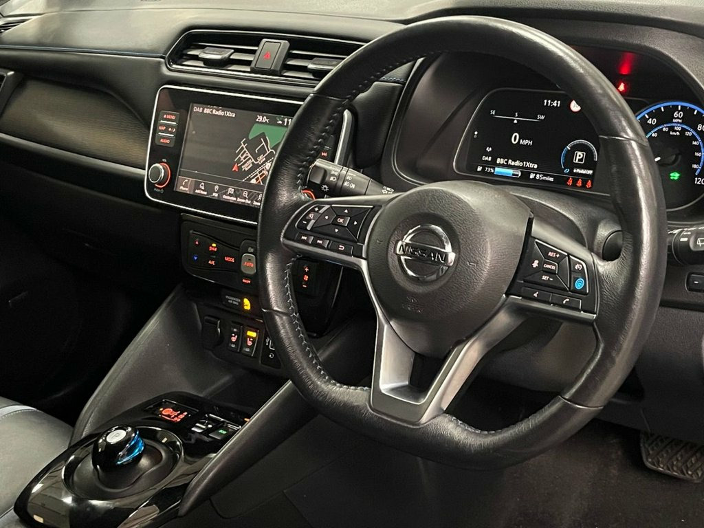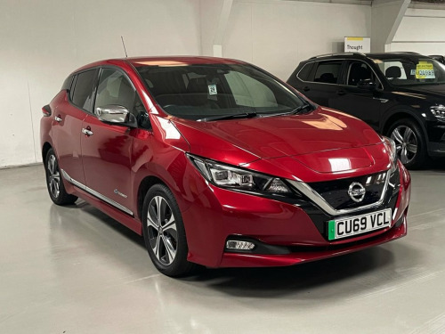 This 2019 Nissan Leaf Tekna presents a superb example of electric motoring with exceptionally low mileage for its age, having covered just 37373 miles. Complimented by a fully documented service history. As a fully electric vehicle, it boasts a 40 kWh battery offering a maximum range of 168 miles when new. This Tekna variant benefits from a clear vehicle history check, providing peace of mind for its next owner. This model is boasting a very high level of specification including... 17" alloy wheels... apple car play / android auto... rear camera... heat pack ( heated front seats and steering wheel) ... heat pump... bose premium audio system... rear privacy glass... dab digital radio... bluetooth... plus many more features listed below... Experience the convenience of charging with a full charge at home taking approximately 7 hours and 30 minutes using a 7kW charger, and rapid charging from empty to 80% in just 1 hour and 20 minutes at a public charging station. These charging times, combined with its impressive range and low mileage, demonstrate the Leaf Tekna's suitability for both daily commutes and longer journeys, offering an efficient and economical driving experience. 17in Alloy Wheels, Rear View Camera, 3 Pin EVSE Charging Cable, 50kW CHAdeMO Rapid Charger, BOSE Premium Audio System with 7 Speaker, Heat Pack, 7in TFT Screen Combimeter, Heat Pump, Rear Privacy Glass, Alarm - Thatcham, AM-FM-DAB Audio System, Android Auto and Apple CarPlay, Auto Dimming Rear View Mirror, Auto Wipers, Automatic Air Conditioning, AUX Socket, Blind Spot Warning, Body Coloured Door Mirrors with Integrat, Door Handles - Chrome, Driver - Passenger - Side - Curtain Airb, E-Pedal, Electric Folding Door Mirrors, Electric Parking Brake, Electric Power Steering, ESP - Electronic Stability Programme, EV Connect Telematics System, Front and Rear Electric Windows, Front Centre Console a