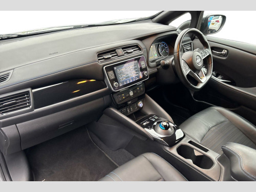 The N-Connecta trim level is well equipped with a suite of helpful features. The Tech Pack enhances parking with front and rear sensors, as well as a 360 degree camera system, complemented by a standard rear view camera. Stay connected and entertained with Android Auto and Apple CarPlay integration. For comfort, the Heat Pack includes heated seats and a heated steering wheel, perfect for colder days. Intelligent auto headlights with a follow me home function and auto hazard lights add to the driving convenience. Furthermore, the Nissan Leaf offers a generous boot space, making it a practical choice for everyday needs and longer journeys, setting it apart from many other vehicles in its class. 12V Socket, 17in Alloy Wheels, 3 Pin EVSE Charging Cable, 50kW CHAdeMO Rapid Charger, 6 Speakers, 6.6kW AC On Board Charger, 60-40 Split Folding Rear Seats, 7in TFT Screen Combimeter, ABS with EBD and Brake Assist, AM-FM-DAB Audio System, AUX Socket, Alarm - Thatcham, Android Auto and Apple CarPlay, Auto Dimming Rear View Mirror, Auto Wipers, Automatic Air Conditioning, Blind Spot Warning, Body Coloured Door Mirrors with Integrated LED Indicators, Door Handles - Chrome, Driver - Passenger - Side - Curtain Airbags, E-Pedal, ESP - Electronic Stability Programme, EV Connect Telematics System, Electric Folding Door Mirrors, Electric Power Steering, Front Centre Console and Armrest, Front Fog Lights, Front Seat Back Pockets, Front and Rear Electric Windows, Gloss Black B-pillar, Halogen Headlamps with LED Signature, Headlights - High Beam Assist, Heat Pack, Heat Pump, Hill Start Assist, ISOFIX Child Seat Anchoring Points - Front and Rear, Illuminated Charge Port, Intelligent Auto Headlights with Follow Me-Home Functionality and Auto Hazard Lights, Intelligent Cruise Control, Intelligent Emergency Braking with Pedestrian Recognition, Intelligent Lane Intervention, Intelligent Trace Control, LED Signature Daytime Running Lights, LED Signature Tail Lights, Lane Departure Warning, Leather D Shaped Steering Wheel, Manually Adjustable Drivers Seat - Slide - Recline and Lifter, Manually Adjustable Passenger Seat - Slide and Recline, Metallic Blue Rear Finisher, Mode 3 Type 2 Charging Cable, Nissan Connect EVO 8in Touchscreen Navigation and Entertainment System, Nissan i-Key, Rear Cross Traffic Alert, Rear Privacy Glass, Rear USB Ports x2, Rear View Camera, Remote Audio Control, Speed Limiter, Start Push Button, Tech Pack, Tilt Adjustable Steering Wheel, Traction Control, Zero Emission Badging - Boot Lid