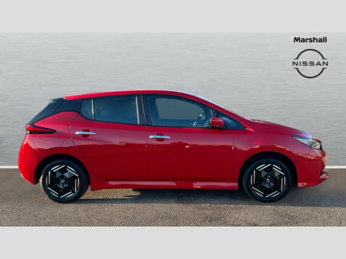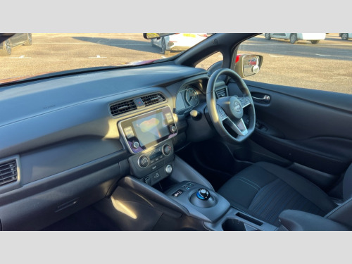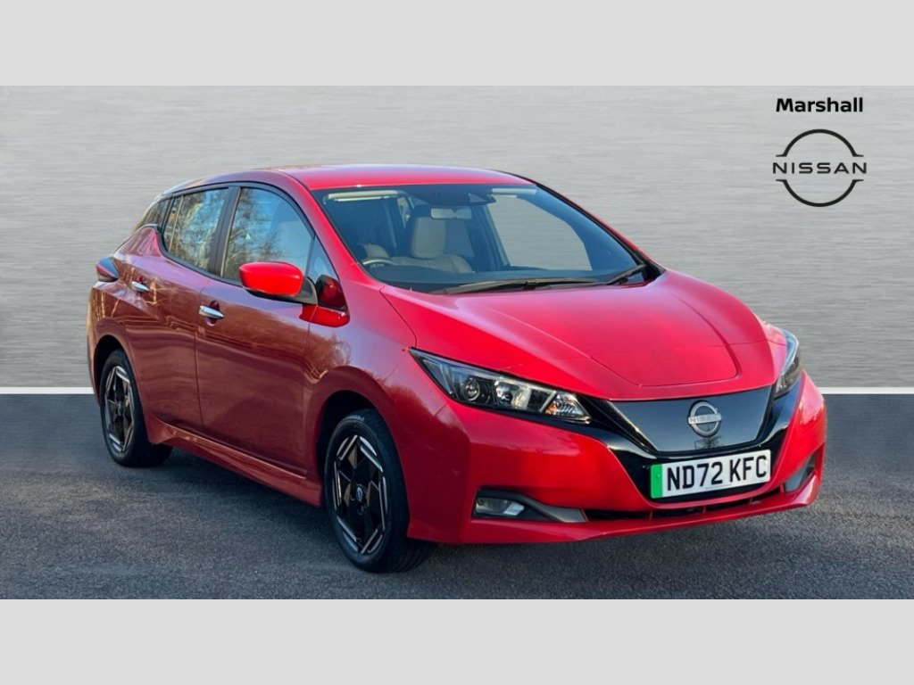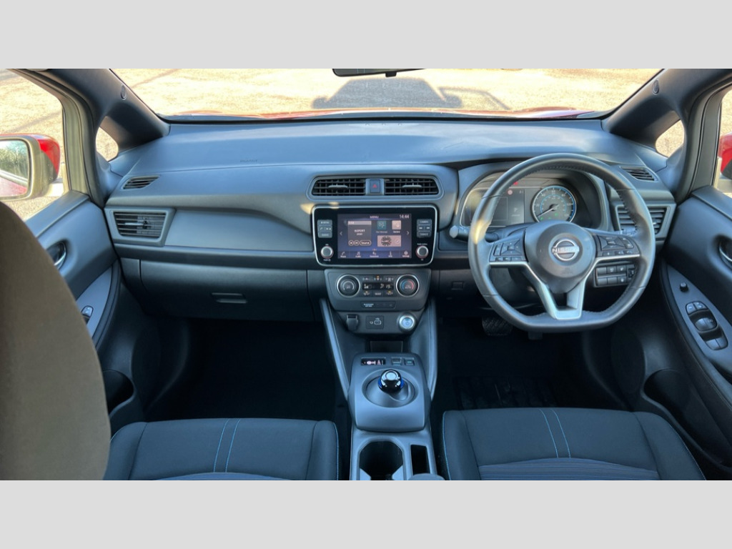 Nissan LEAF 110kW Acenta 39kWh 5dr Auto 7" full colour TFT screen combimeter, 8" colour display with touchscreen, Apple car play/Android Auto, Blind spot intervention, Blind spot warning, E Pedal, eCall emergency call system, Electric power assisted steering, Intelligent Cruise control (ICC), Intelligent lane intervention, Lane departure warning system, Rear cross traffic alert, Rear view camera, Speed limiter, Trip computer, 39kWh usable battery capacity, 6.6 kw On-board charger, Charging port remote opening, Mac Pherson strut front suspension and twist beam axle rear suspension, Max DC charging power, ChaDeMo type: up to 50kW, Single motor, 6 speakers, Audio system with USB, Bluetooth with audio streaming, DAB Digital radio, Rear USB ports, Aero roof spoiler, Automatic activation of hazard warning lights, Automatic rain sensing wipers, Body coloured door mirrors with integrated LED turn signals, Chrome door handles, Electric front/rear windows, Follow me home headlights, Front fog lights, Grey rear bumper finisher, Halogen headlamps, High beam assist, Illuminated charge port, Intelligent auto headlights, LED signature daytime running lights with directional indicator, LED signature rear lights, LED third brake light, Manual folding door mirrors, Rain sensor, Rear side wing doors, Rear wiper, 12V socket, 3 seat bench in 2nd row, 60/40 split folding rear seat, Automatic climate control with pollen filter and timer, Front centre console and armrest, Front head restraints, Front seatback pockets, Height adjustable driver seat, Isofix child seat anchor points, Manual adjust driver/passenger seats, Multifunction leather steering wheel, PTC (Positive Temp Co-efficent) heater, Rake and reach adjustable steering column, Rear assist grips, Rear head restraints, Single front passenger seat, Telescopic steering wheel adjustment, Woven fabric upholstery, 3 point front seatbelts with pre-tensioners, 3x3 point rear seatbelts, ABS with EBD and brake assist, Curtain airbags, Driver and passenger airbags, Electrically driven intelligent braking system, Electronic Stability Programme (ESP), Front and rear vented brake discs, Front seatbelt pretensioners + load limiters, Height adjustable front seatbelts, Hill start assist, Intelligent emergency braking with pedestrian recognition, Intelligent ride control, Intelligent trace control, Manual child proof rear door locks, Mechanical parking brake, Nissan safety shield, Seatbelt reminder for driver and front passenger, Side airbags, Traction control, Tyre pressure monitoring system, VDC Dynamic Vehicle Control, Deadlock, Immobiliser, Intelligent Key with push button starter, Remote central locking, Thatcham Cat.1 alarm, 16" Diamond cut black alloy wheels