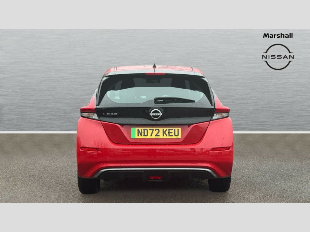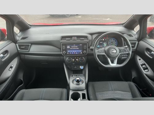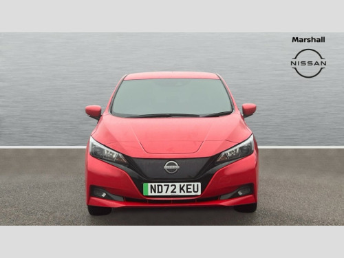 Nissan LEAF 110kW Acenta 39kWh 5dr Auto 7" full colour TFT screen combimeter, 8" colour display with touchscreen, Apple car play/Android Auto, Blind spot intervention, Blind spot warning, E Pedal, eCall emergency call system, Electric power assisted steering, Intelligent Cruise control (ICC), Intelligent lane intervention, Lane departure warning system, Rear cross traffic alert, Rear view camera, Speed limiter, Trip computer, 39kWh usable battery capacity, 6.6 kw On-board charger, Charging port remote opening, Mac Pherson strut front suspension and twist beam axle rear suspension, Max DC charging power, ChaDeMo type: up to 50kW, Single motor, 6 speakers, Audio system with USB, Bluetooth with audio streaming, DAB Digital radio, Rear USB ports, Aero roof spoiler, Automatic activation of hazard warning lights, Automatic rain sensing wipers, Body coloured door mirrors with integrated LED turn signals, Chrome door handles, Electric front/rear windows, Follow me home headlights, Front fog lights, Grey rear bumper finisher, Halogen headlamps, High beam assist, Illuminated charge port, Intelligent auto headlights, LED signature daytime running lights with directional indicator, LED signature rear lights, LED third brake light, Manual folding door mirrors, Rain sensor, Rear side wing doors, Rear wiper, 12V socket, 3 seat bench in 2nd row, 60/40 split folding rear seat, Automatic climate control with pollen filter and timer, Front centre console and armrest, Front head restraints, Front seatback pockets, Height adjustable driver seat, Isofix child seat anchor points, Manual adjust driver/passenger seats, Multifunction leather steering wheel, PTC (Positive Temp Co-efficent) heater, Rake and reach adjustable steering column, Rear assist grips, Rear head restraints, Single front passenger seat, Telescopic steering wheel adjustment, Woven fabric upholstery, 3 point front seatbelts with pre-tensioners, 3x3 point rear seatbelts, ABS with EBD and brake assist, Curtain airbags, Driver and passenger airbags, Electrically driven intelligent braking system, Electronic Stability Programme (ESP), Front and rear vented brake discs, Front seatbelt pretensioners + load limiters, Height adjustable front seatbelts, Hill start assist, Intelligent emergency braking with pedestrian recognition, Intelligent ride control, Intelligent trace control, Manual child proof rear door locks, Mechanical parking brake, Nissan safety shield, Seatbelt reminder for driver and front passenger, Side airbags, Traction control, Tyre pressure monitoring system, VDC Dynamic Vehicle Control, Deadlock, Immobiliser, Intelligent Key with push button starter, Remote central locking, Thatcham Cat.1 alarm, 16" Diamond cut black alloy wheels