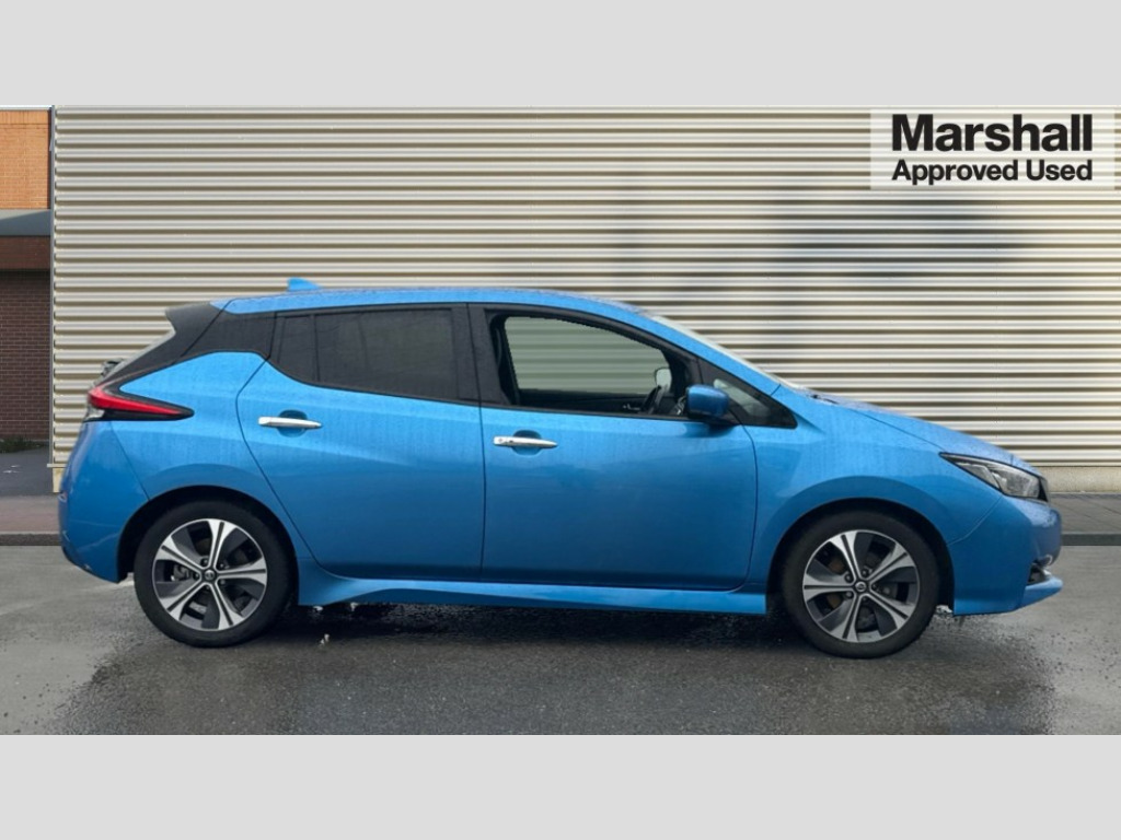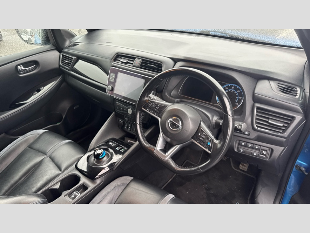 Nissan LEAF 110kW Tekna 40kWh 5dr Auto 7" Combimeter, 8" touchscreen navigation and entertainment system, Apple car play/Android Auto, Blind spot intervention, Blind spot warning, E Pedal, eCall emergency call system, Intelligent Cruise control (ICC), Intelligent lane intervention, Lane departure warning system, Nissan connect services with nav, Push button starter, Rear cross traffic alert, Speed limiter, Speed sensitive power steering, Telematics system, Trip computer, Voice control system, 6.6 kw On-board charger, 6.6 kW onboard charger, EVSE charging cable, AM/FM/DAB audio system, Aux-in socket, Bose Premium Audio system+7 speakers, Remote audio control, Two rear USB sockets, USB port, Auto dimming rear view mirror, Automatic activation of hazard warning lights, Automatic rain sensing wipers, Body colour mirror caps, Chrome door handles, Electric front/rear windows, Electrically adjustable and folding door mirrors, Follow me home headlights, Gloss black finish B pillar, High beam assist, Illuminated charge port, Integrated turn signals in mirrors, Intelligent auto headlights, LED signature daytime running lights, LED tail light signature, LED third brake light, Metallic blue rear bumper accent, Rain sensor, Rear privacy glass, Rear side wing doors, Rear wiper, Shark fin antenna, 12V socket, 3 seat bench in 2nd row, 50kW Quick Charger Capacity, 60/40 split folding rear seat, Automatic air conditioning with timer and heater, Front centre console and armrest, Front head restraints, Front seatback pockets, Heat pump, Height adjustable driver seat, Isofix child seat anchor points, Leather steering wheel, Leather/ultra suede upholstery, Manual adjust driver/passenger seats, PTC (Positive Temp Co-efficent) heater, Quick charge port, Rake and reach adjustable steering column, Rear assist grips, Rear head restraints, Rear heater duct, Single front passenger seat, Heat pack - LEAF, LED Pack - Leaf, Pro pilot Pack - Leaf, Tech Pack - Leaf, 3 point front seatbelts with pre-tensioners, 3x3 point rear seatbelts, Curtain airbags, Driver and passenger airbags, Front seatbelt pretensioners + load limiters, Height adjustable front seatbelts, Hill start assist, Intelligent emergency braking with pedestrian recognition, Intelligent trace control, Manual child proof rear door locks, Seatbelt reminder for driver and front passenger, Side airbags, Traction control, Tyre pressure monitoring system, VDC Dynamic Vehicle Control, Deadlock, Immobiliser, Nissan i-key, Remote central locking, Thatcham Cat.1 alarm, 17" Alloy wheels