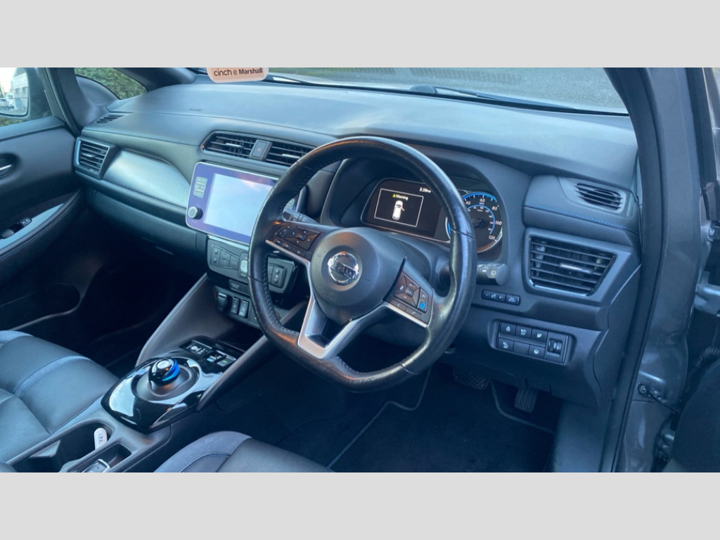 Nissan LEAF 160kW e+ Tekna 62kWh 5dr Auto 7" Combimeter, Apple car play/Android Auto, Blind spot warning, E Pedal, Intelligent Cruise control (ICC), Intelligent lane intervention, Lane departure warning system, Nissan connect EV 8" touch screen navigation and entertainment system, Push button starter, Rear cross traffic alert, Rear view camera, Speed limiter, Speed sensitive power steering, Telematics system, Trip computer, Voice control system, 6.6 kw On-board charger, 6.6 kW onboard charger, EVSE charging cable, AM/FM/DAB audio system, Aux-in socket, Bose Premium Audio system+7 speakers, Remote audio control, Two rear USB sockets, USB port, Anti dazzle rear view mirror, Auto dimming rear view mirror, Automatic activation of hazard warning lights, Automatic rain sensing wipers, Body coloured door mirrors with integrated LED indicators, Chrome door handles, Door mirrors with turn signal and puddle lamps, e+ embossed charging port, Electric front/rear windows, Electrically adjustable and folding door mirrors, Follow me home headlights, Gloss black finish B pillar, High beam assist, Intelligent auto headlights, LED signature daytime running lights, LED tail light signature, Metallic blue front splitter, Metallic blue rear bumper accent, Rear privacy glass, 60/40 split folding rear seat, Automatic air conditioning with timer and heater, Front centre console and armrest, Front head restraints, Front seatback pockets, Heat pump system with remote control, Height adjustable driver seat, Isofix child seat anchor points, Leather D shaped steering wheel, Manual adjust driver/passenger seats, Part leather/Ultra suede upholstery, PTC (Positive Temp Co-efficent) heater, Quick charge port, Rear assist grips, Rear head restraints, Rear heater duct, Tilt adjustable steering wheel, Heat pack - LEAF, LED Pack - Leaf, Pro pilot Pack - Leaf, Tech Pack - Leaf, 3 point front seatbelts with pre-tensioners, 3x3 point rear seatbelts, ABS with EBD and brake assist, Curtain airbags, Driver and passenger airbags, Front seatbelt pretensioners + load limiters, Height adjustable front seatbelts, Hill start assist, Intelligent emergency braking with pedestrian recognition, Intelligent trace control, Seatbelt reminder for driver and front passenger, Side airbags, Traction control, Tyre pressure monitoring system, VDC Dynamic Vehicle Control, Deadlock, Immobiliser, Nissan i-key, Remote central locking, Thatcham Cat.1 alarm, 17" Alloy wheels