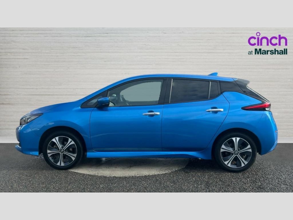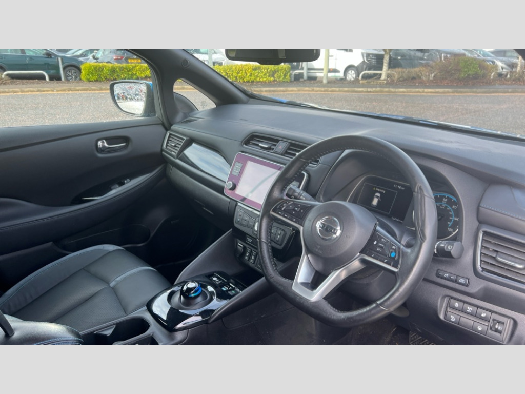Nissan LEAF 160kW e+ Tekna 62kWh 5dr Auto 7" Combimeter, 8" touchscreen navigation and entertainment system, Apple car play/Android Auto, Blind spot intervention, Blind spot warning, E Pedal, eCall emergency call system, Intelligent Cruise control (ICC), Intelligent lane intervention, Lane departure warning system, Nissan connect services with nav, Push button starter, Rear cross traffic alert, Speed limiter, Speed sensitive power steering, Telematics system, Trip computer, Voice control system, 6.6 kw On-board charger, 6.6 kW onboard charger, EVSE charging cable, AM/FM/DAB audio system, Aux-in socket, Bose Premium Audio system+7 speakers, Remote audio control, Two rear USB sockets, USB port, Auto dimming rear view mirror, Automatic activation of hazard warning lights, Automatic rain sensing wipers, Body colour mirror caps, Chrome door handles, e+ embossed charging port, Electric front/rear windows, Electrically adjustable and folding door mirrors, Follow me home headlights, Gloss black finish B pillar, High beam assist, Illuminated charge port, Integrated turn signals in mirrors, Intelligent auto headlights, LED signature daytime running lights, LED tail light signature, LED third brake light, Metallic blue rear bumper accent, Rain sensor, Rear privacy glass, Rear side wing doors, Rear wiper, Shark fin antenna, 100kW Quick Charger Capacity, 12V socket, 3 seat bench in 2nd row, 60/40 split folding rear seat, Automatic air conditioning with timer and heater, Front centre console and armrest, Front head restraints, Front seatback pockets, Heat pump, Height adjustable driver seat, Isofix child seat anchor points, Leather steering wheel, Leather/ultra suede upholstery, Manual adjust driver/passenger seats, PTC (Positive Temp Co-efficent) heater, Quick charge port, Rake and reach adjustable steering column, Rear assist grips, Rear head restraints, Rear heater duct, Single front passenger seat, Heat pack - LEAF, LED Pack - Leaf, Pro pilot Pack - Leaf, Tech Pack - Leaf, 3 point front seatbelts with pre-tensioners, 3x3 point rear seatbelts, Curtain airbags, Driver and passenger airbags, Front seatbelt pretensioners + load limiters, Height adjustable front seatbelts, Hill start assist, Intelligent emergency braking with pedestrian recognition, Intelligent trace control, Manual child proof rear door locks, Seatbelt reminder for driver and front passenger, Side airbags, Traction control, Tyre pressure monitoring system, VDC Dynamic Vehicle Control, Deadlock, Immobiliser, Nissan i-key, Remote central locking, Thatcham Cat.1 alarm, 17" Alloy wheels