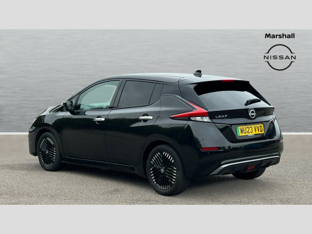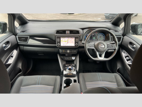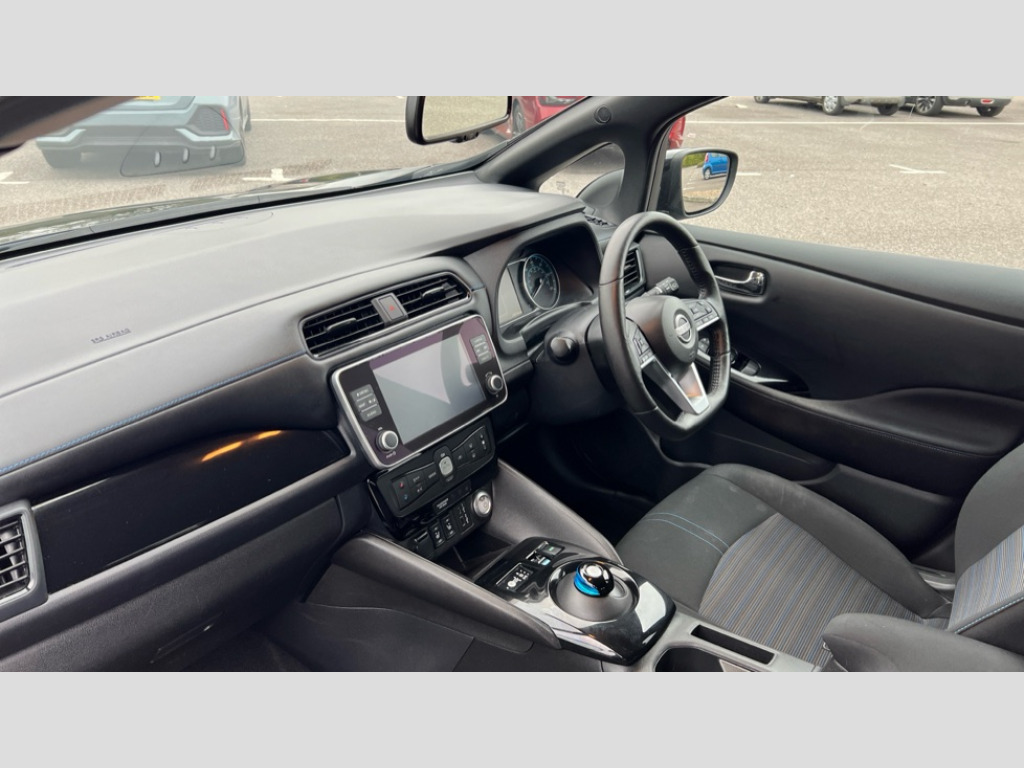 Nissan LEAF 110kW N-Connecta 39kWh 5dr Auto 360 degree colour camera view, 7" full colour TFT screen combimeter, 8" colour display with touchscreen, Apple car play/Android Auto, Blind spot intervention, Blind spot warning, E Pedal, eCall emergency call system, Electric power assisted steering, EV telematics system, Front and rear parking sensors, Intelligent around view monitor, Intelligent Cruise control (ICC), Intelligent driver alert system, Intelligent lane intervention, Lane departure warning system, Moving object detection, Navigation system with voice control, Nissan connect services app (air conditioning control, cabin heating and charging), Rear cross traffic alert, Speed limiter, Trip computer, 39kWh usable battery capacity, 6.6 kw On-board charger, Charging port remote opening, Mac Pherson strut front suspension and twist beam axle rear suspension, Max DC charging power, ChaDeMo type: up to 50kW, Single motor, 6 speakers, Audio system with USB, Bluetooth with audio streaming, DAB Digital radio, Rear USB ports, Aero roof spoiler, Auto dimming rear view mirror, Automatic activation of hazard warning lights, Automatic rain sensing wipers, Chrome door handles, Electric front/rear windows, Electrically adjustable and folding door mirrors, Follow me home headlights, Grey rear bumper finisher, High beam assist, Illuminated charge port, Intelligent auto headlights, LED signature daytime running lights with directional indicator, LED signature rear lights, LED third brake light, Rain sensor, Rear privacy glass, Rear side wing doors, Rear wiper, Shark fin antenna, 12V socket, 3 seat bench in 2nd row, 60/40 split folding rear seat, Automatic climate control with pollen filter and timer, Energy saving cabin heating system with heat pump, Front centre console and armrest, Front head restraints, Front seatback pockets, Height adjustable driver seat, Isofix child seat anchor points, Manual adjust driver/passenger seats, Multifunction leather steering wheel, PTC (Positive Temp Co-efficent) heater, Rake and reach adjustable steering column, Rear assist grips, Rear head restraints, Single front passenger seat, Telescopic steering wheel adjustment, Woven fabric upholstery, Heat pack with Heated front seats - Leaf, 3 point front seatbelts with pre-tensioners, 3x3 point rear seatbelts, ABS with EBD and brake assist, Curtain airbags, Driver and passenger airbags, Electrically driven intelligent braking system, Electronic Stability Programme (ESP), Front and rear vented brake discs, Front seatbelt pretensioners + load limiters, Height adjustable front seatbelts, Hill start assist, Intelligent emergency braking with pedestrian recognition, Intelligent ride control, Intelligent trace control, Manual child proof rear door locks, Mechanical parking brake, Nissan safety shield, Seatbelt reminder for driver and front passenger, Side airbags, Traction control, Tyre pressure monitoring system, VDC Dynamic Vehicle Control, Deadlock, Immobiliser, Intelligent Key with push button starter, Remote central locking, Thatcham Cat.1 alarm, 17" Diamond cut black alloy wheels