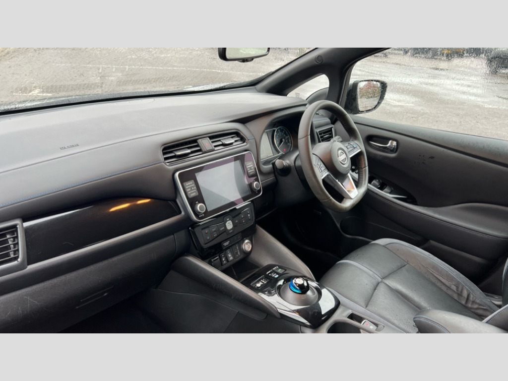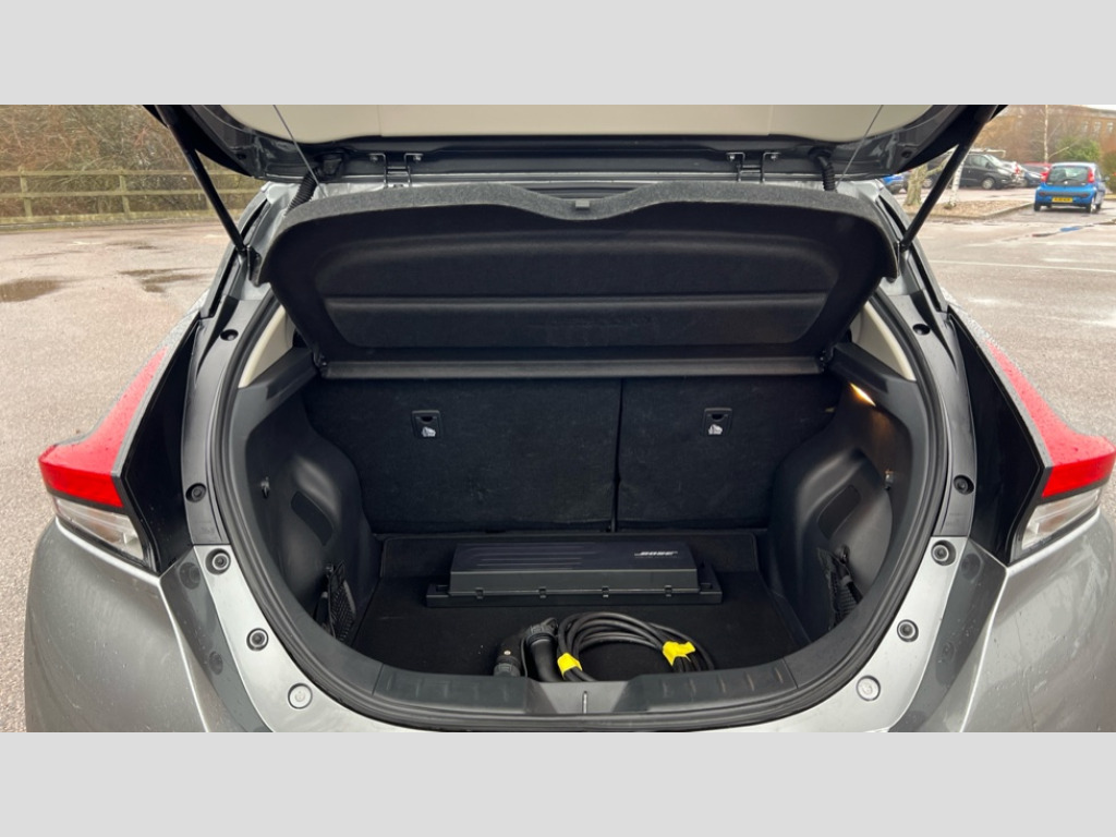 Nissan LEAF 110kW Tekna 39kWh 5dr Auto 360 degree colour camera view, 7" full colour TFT screen combimeter, 8" colour display with touchscreen, Apple car play/Android Auto, Blind spot intervention, Blind spot warning, E Pedal, eCall emergency call system, Electric power assisted steering, EV telematics system, Front and rear parking sensors, Intelligent around view monitor, Intelligent Cruise control (ICC), Intelligent driver alert system, Intelligent lane intervention, Intelligent lane keep assist, Lane departure warning system, Moving object detection, Navigation system with voice control, Nissan connect services app (air conditioning control, cabin heating and charging), Rear cross traffic alert, Speed limiter, Traffic jam pilot, Trip computer, 39kWh usable battery capacity, 6.6 kw On-board charger, Charging port remote opening, Mac Pherson strut front suspension and twist beam axle rear suspension, Max DC charging power, ChaDeMo type: up to 50kW, Single motor, Audio system with USB, Bluetooth with audio streaming, Bose audio system 7 speakers - 2 tweeters, 4 high and medium frequency door speakers including subwoofer, DAB Digital radio, Rear USB ports, Aero roof spoiler, Auto dimming rear view mirror, Automatic activation of hazard warning lights, Automatic rain sensing wipers, Chrome door handles, Electric front/rear windows, Electrically adjustable and folding door mirrors, Follow me home headlights, Grey rear bumper finisher, High beam assist, Illuminated charge port, Intelligent auto headlights, LED signature daytime running lights with directional indicator, LED signature rear lights, LED third brake light, Rain sensor, Rear privacy glass, Rear side wing doors, Rear wiper, Shark fin antenna, 12V socket, 3 seat bench in 2nd row, 60/40 split folding rear seat, Automatic climate control with pollen filter and timer, Energy saving cabin heating system with heat pump, Front centre console and armrest, Front head restraints, Front seatback pockets, Heated rear seats, Height adjustable driver seat, Isofix child seat anchor points, Manual adjust driver/passenger seats, Multifunction leather steering wheel, Part leather with ultrasuede and synthetic leather upholstery, PTC (Positive Temp Co-efficent) heater, Rake and reach adjustable steering column, Rear assist grips, Rear head restraints, Single front passenger seat, Telescopic steering wheel adjustment, Heat pack with Heated front seats - Leaf, LED pack with Full LED headlights - Leaf, 3 point front seatbelts with pre-tensioners, 3x3 point rear seatbelts, ABS with EBD and brake assist, Curtain airbags, Driver and passenger airbags, Electrically driven intelligent braking system, Electronic parking brake, Electronic Stability Programme (ESP), Front and rear vented brake discs, Front seatbelt pretensioners + load limiters, Height adjustable front seatbelts, Hill start assist, Intelligent emergency braking with pedestrian recognition, Intelligent ride control, Intelligent trace control, Manual child proof rear door locks, Nissan safety shield, Seatbelt reminder for driver and front passenger, Side airbags, Traction control, Tyre pressure monitoring system, VDC Dynamic Vehicle Control, Deadlock, Immobiliser, Intelligent Key with push button starter, Remote central locking, Thatcham Cat.1 alarm, 17" Diamond cut black alloy wheels