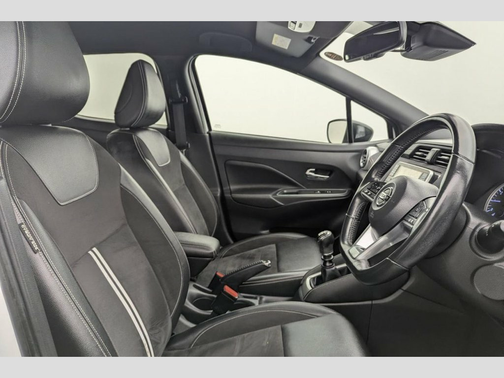 Henson Car Store presents the NISSAN MICRA 1.0 DIG-T N-Sport Hatchback 5dr Petrol Manual Euro 6 (s/s) finished in White, this car comes with service history. The 2019 Nissan Micra 1.0 DIG-T N-Sport is a stylish and sporty five-door hatchback, finished with distinctive N-Sport exterior touches including gloss-black trim, carbon-look accents and striking 17-inch alloy wheels that really set it apart on the road. It's powered by the lively 1.0-litre turbocharged petrol engine, paired with a smooth 5-speed manual gearbox, delivering strong performance for its size while remaining economical and fully compliant with Euro 6 emissions standards and stop/start technology. Inside, the N-Sport trim gives you a well-appointed cabin with part-leather and Alcantara-style sports seats, a leather steering wheel, contrast stitching and a premium feel throughout. The 7-inch NissanConnect touchscreen infotainment system includes Bluetooth, USB connectivity and support for Apple CarPlay and Android Auto, while features such as automatic air conditioning, cruise control, keyless start and a rear-view camera make everyday driving easy and comfortable. Safety is well covered too, with multiple airbags, hill-start assist, lane departure warning and stability control. 12V Socket - Front, 17in Alloy Wheels, 2 x Front and 1 x Rear Cup Holders, 4 Speakers, 60-40 Split Folding Rear Seats, ABS with EBD and Brake Assist, AUX-In Socket, Advanced Drive-assist Display, Antenna - 300mm, Audio System with MP3, Auto Hazard Lights, Automatic Headlights, Bluetooth, Body Coloured Door Mirrors, Body Coloured Front Door Handles, Boot Cover, Chrome Interior Door Handles, Concealed Rear Door Handles, Crash Warning, Cruise Control, DAB Radio, Door Mirrors with Turn Indicators, Driver and Passenger Sun Visor with Vani, Driver-Passenger-Side and Curtain Airbag, ESP - Electronic Stability Programme, Electrically Adjustable and Manual Foldi, Exterior Pack Plus - Black and Carbon