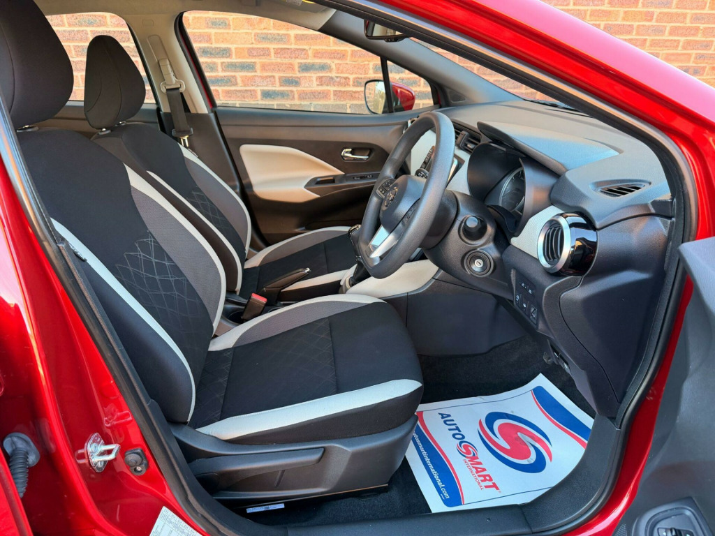 Low Mileage with a great service history including 5 documented services, ULEZ Compliant Vehicle, 2 Keys supplied, This 2019 Nissan Micra IG-T Acenta boasts a clear vehicle history and an MOT valid until April 2026, offering peace of mind for its next owner. Powered by an efficient 1.0 litre petrol engine, this Euro 6 compliant model has a last service mileage of 43286 miles. Inside, you'll find manual air conditioning for comfort, automatic headlights for convenience, and a rear view camera with rear sensors to aid parking. Stay connected on the go with smartphone app integration, including Android Auto and Apple CarPlay, and enjoy seamless Bluetooth connectivity for calls and music.The Nissan Micra IG-T Acenta stands out with its low CO2 emissions, contributing to a more environmentally friendly drive. Furthermore, its position in a low insurance group means that running costs are kept to a minimum, making it a sensible choice for many drivers. These factors combined indicate that this particular vehicle offers excellent value and efficiency compared to other similar cars on the market. nual air conditioning, nissan connect 7in touchscreen navigation and entertainment system, 16in alloy wheels, cruise control, bluetooth, 60-40 split folding rear seats, abs with ebd and brake assist, aux-in socket, advanced drive-assist display, antenna - 300mm, audio system with mp3, auto hazard lights, automatic headlights, body coloured door mirrors, body coloured front door handles, boot cover, chrome interior door handles, concealed rear door handles, crash warning, 4 speakers, dab radio, door mirrors with turn indicators, driver and passenger sun visor with vanity mirror, driver-passenger-side and curtain airbags, esp - electronic stability programme, electrically adjustable and manual folding door mirrors, front console storage, front electric windows, front fog lights, front passenger seatback pockets, front and rear door pockets with drink holders, front and rear seatbelt warning, gear shift indicator, grey pvc front door pads, halogen headlights with signature finisher, headlights - high beam assist, 12v socket - front, height adjustable driver seat - manual, 2 x front and 1 x rear cup holders, height adjustable front headrests with satin silver decoration, height adjustable front and rear seatbelts with pre-tensioner and load limiter, height and telescopic adjustable steering wheel, high mounted rear brake light, hill start assist, isofix child seat anchoring points, intelligent emergency braking with pedestrian recognition, jacknife key type x1, led signature daytime running lights, lane departure warning and prevention, luggage room lighting, map lamp and power window switch illumination, nissan anti theft system immobiliser, outside temperature gauge, passenger airbag deactivation system, power assisted steering, rain sensing windscreen wipers, rear roof spoiler, rear view camera, rear wiper, reclining front seats, remote central locking, satin silver decoration on gear knob - steering wheel and air vents, smartphone app integration, soft knee pad with stitching, soft touch upper dash, soft-touch upper ip with grey pc insert, speed limiter, steering wheel mounted audio controls, tpms - tyre pressure monitoring system, traffic sign recognition, trip computer, two adjustable rear headrests, tyre repair kit, usb - ipod connectivity