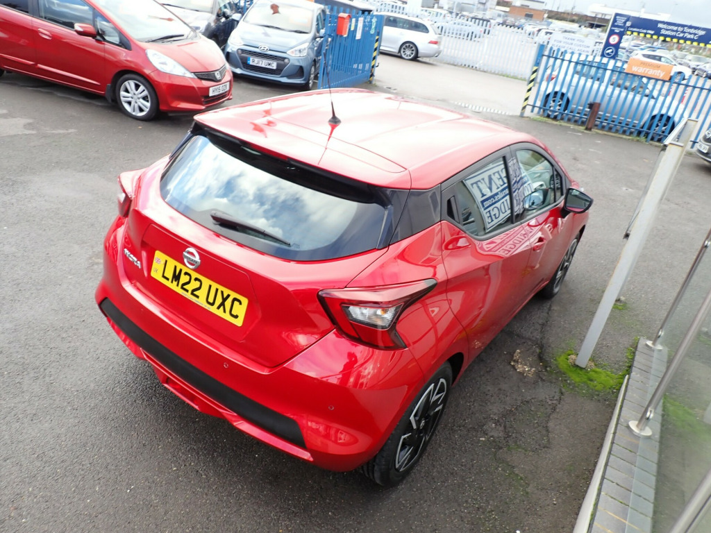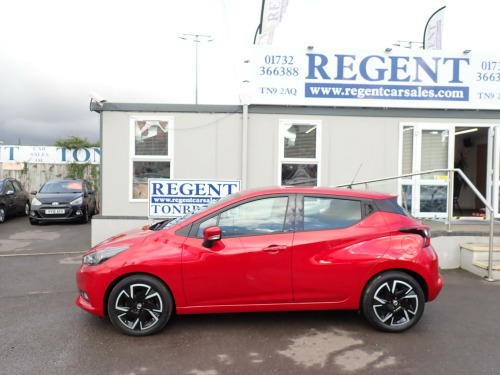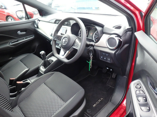 Beautiful low mileage Micra 5-door hatchback finished in Metallic Passion Red, presented in superb condition throughout and complete with a full service history. Powered by the economical 1.0 litre petrol engine and very well equipped, it has satellite navigation, Bluetooth, DAB digital radio, cruise control, climate control, ISOfix, all-round airbags and much more. It also comes with 2 keys, carpet mats and the Nissan book pack. This Micra Acenta is available now for your viewing and test drive in Tonbridge where we are open 7 days a week. v socket - front, 4 speakers, advanced drive assist display - 5in tft coloured screen, audio system with mp3, bluetooth, dab radio, nissan connect display audio, smartphone app integration, usb - ipod connectivity, 16in flex wheels, antenna - 300mm, body coloured door mirrors, body coloured front door handles, concealed rear door handles, door mirrors with turn indicators, electrically adjustable and manual folding door mirrors, front power windows, jacknife key type x1, rear roof spoiler, tyre repair kit, 2 x front and 1 x rear cup holders, 60-40 split folding rear seats, boot cover, boot light, chrome interior door handles, driver and passenger sun visor with vanity mirror, front console storage, front passenger seatback pockets, front and rear door pockets with drink holders, grey pvc front door pads, height adjustable driver seat - manual, height adjustable front headrests with satin silver decoration, height and telescopic adjustable steering wheel, manual air conditioning, map lamp and power window switch illumination, rain sensing windscreen wipers, reclining front seats, satin silver decoration on air vent, satin silver decoration on gear knob and steering wheel, soft knee pad with stitching, soft-touch upper ip with grey pc insert, steering wheel mounted audio controls, two adjustable rear headrests, abs with ebd and brake assist, auto hazard lights, driver-passenger-side and curtain airbags, front and rear seatbelt warning, height adjustable front and rear seatbelts with pre-tensioner and load limiter, hill start assist, isofix on front passenger and rear seats, intelligent emergency braking with pedestrian recognition, nissan anti theft system immobiliser, passenger airbag deactivation system, rear wiper, remote central locking, automatic headlights, front fog lights, halogen headlights with signature finisher, headlights - high beam assist, high mounted rear brake light, led signature daytime running lights, crash warning, cruise control, gear shift indicator, lane departure warning and prevention, outside temperature sensor, power assisted steering, speed limiter, tpms - tyre pressure monitoring system, traffic sign recognition, trip computer