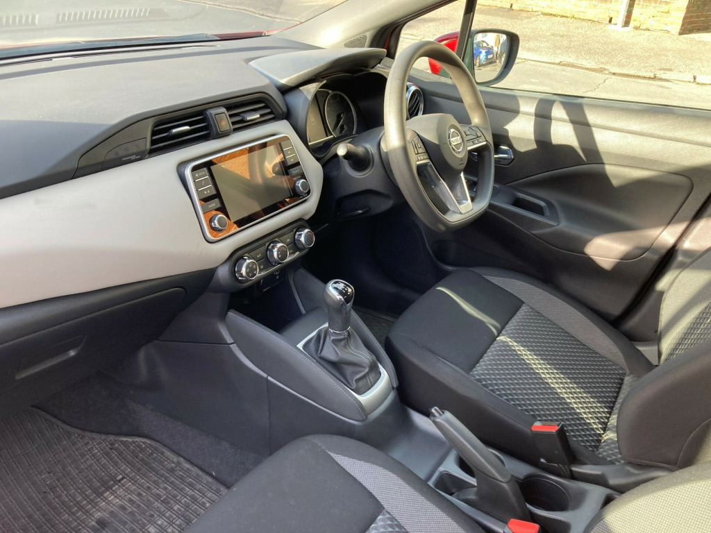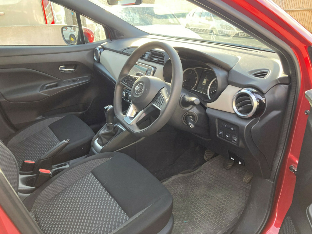 This 2022 Nissan Micra 1.0 IG-T Acenta Hatchback with a petrol manual engine is a reliable and efficient vehicle with only 10000 miles on the odometer. With 5 seats and 5 doors, it's a practical hatchback for urban and suburban driving, and the MOT is valid until 30/05/2026. Being ULEZ compliant, it's perfect for city driving without extra charges. The car includes modern features like a 5-inch TFT coloured screen Advanced Drive Assist Display, Bluetooth capability, an audio system with MP3, 4 speakers, and a 12V socket in the front. This Nissan Micra is a well-maintained, fuel-efficient vehicle that's ready to provide comfortable and convenient transportation for years to come v socket - front, 4 speakers, advanced drive assist display - 5in tft coloured screen, audio system with mp3, bluetooth, dab radio, nissan connect display audio, smartphone app integration, usb - ipod connectivity, 16in flex wheels, antenna - 300mm, body coloured door mirrors, body coloured front door handles, concealed rear door handles, door mirrors with turn indicators, electrically adjustable and manual folding door mirrors, front power windows, jacknife key type x1, rear roof spoiler, tyre repair kit, 2 x front and 1 x rear cup holders, 60-40 split folding rear seats, boot cover, boot light, chrome interior door handles, driver and passenger sun visor with vanity mirror, front console storage, front passenger seatback pockets, front and rear door pockets with drink holders, grey pvc front door pads, height adjustable driver seat - manual, height adjustable front headrests with satin silver decoration, height and telescopic adjustable steering wheel, manual air conditioning, map lamp and power window switch illumination, rain sensing windscreen wipers, reclining front seats, satin silver decoration on air vent, satin silver decoration on gear knob and steering wheel, soft knee pad with stitching, soft-touch upper ip with grey pc insert, steering wheel mounted audio controls, two adjustable rear headrests, abs with ebd and brake assist, auto hazard lights, driver-passenger-side and curtain airbags, front and rear seatbelt warning, height adjustable front and rear seatbelts with pre-tensioner and load limiter, hill start assist, isofix on front passenger and rear seats, intelligent emergency braking with pedestrian recognition, nissan anti theft system immobiliser, passenger airbag deactivation system, rear wiper, remote central locking, automatic headlights, front fog lights, halogen headlights with signature finisher, headlights - high beam assist, high mounted rear brake light, led signature daytime running lights, crash warning, cruise control, gear shift indicator, lane departure warning and prevention, outside temperature sensor, power assisted steering, speed limiter, tpms - tyre pressure monitoring system, traffic sign recognition, trip computer