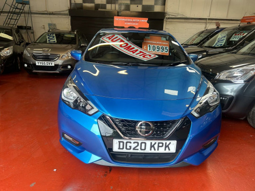 30 AUTOMATIC CARS IN STOCK GO TO WWW.AUTOMATICCARS.NET====With only one previous owner and a full dealership service history, this 2020 Nissan Micra 1.0L Petrol IG-T Acenta is a well-maintained hatchback. The Acenta trim adds a touch of style and convenience to your daily drives. Stay connected on the go with Smartphone App Integration, including Android Auto and Apple CarPlay, making navigation and entertainment seamless. Manoeuvring is made easier with the rear view camera and parking assistance system, while Bluetooth connectivity allows for hands-free calls and audio streaming. Automatic headlights provide added convenience, turning on and off as needed. The manual air conditioning ensures a comfortable cabin environment. This Micra stands out with its low CO2 emissions, making it an environmentally conscious choice. Furthermore, it falls into a low insurance group, potentially saving you money on your annual premiums. This combination of features and economical running costs makes it a practical and appealing option for city driving and beyond.