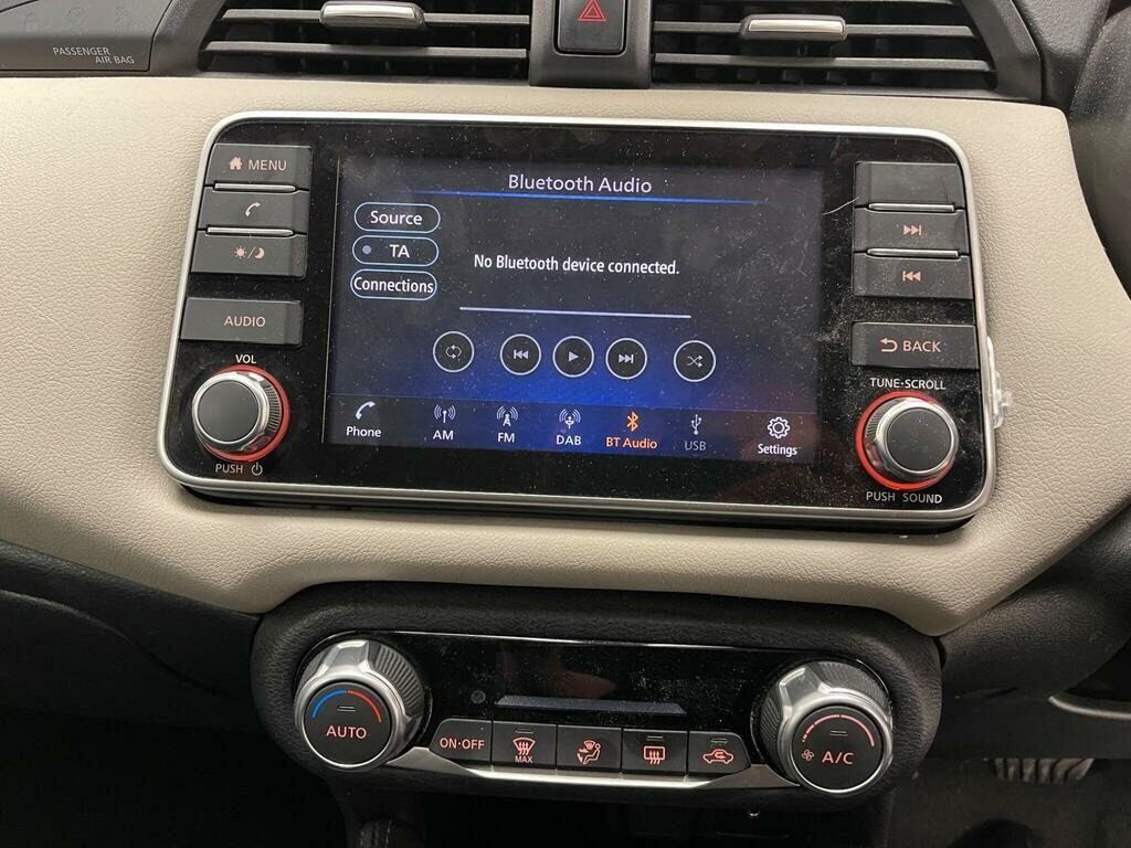 This 2021 Nissan Micra IG-T Acenta is a great choice for those seeking an economical and well equipped compact car. Powered by a 1.0L Euro 6 petrol engine, this Acenta trim model offers a blend of efficiency and practicality. Stay connected on the go with Bluetooth connectivity, which seamlessly integrates with your smartphone via Android Auto and Apple CarPlay. Comfort is assured with manual air conditioning, and for added convenience, the vehicle features automatic headlights, ensuring optimal visibility in varying light conditions.The Nissan Micra IG-T Acenta stands out with its low insurance group, making it a cost effective option for many drivers. This, combined with its user friendly technology and efficient engine, positions it as a sensible and appealing choice within its class. The inclusion of smartphone app integration and automatic headlights further enhances its appeal, offering modern conveniences that simplify your driving experience. v socket - front, 16in flex wheels, 2 x front and 1 x rear cup holders, 3 x 3-point rear seatbelts, 4 speakers, 60-40 split folding rear seats, abs with ebd and brake assist, aux-in socket, advanced drive assist display - 5in tft coloured screen, antenna - 300mm, audio system with mp3, auto hazard lights, automatic headlights, bluetooth, body coloured door mirrors, body coloured front door handles, boot cover, bumpers - body coloured, chrome interior door handles, concealed rear door handles, crash warning, cruise control, dab radio, door mirrors with turn indicators, driver and passenger airbags, driver and passenger sun visor with vanity mirror, driver-passenger-side and curtain airbags, esp - electronic stability programme, electrically adjustable and manual folding door mirrors, front console storage, front fog lights, front passenger seatback pockets, front power windows, front and rear door pockets with drink holders, front and rear seatbelt warning, gear shift indicator, grey pvc front door pads, halogen headlights with signature finisher, headlights - high beam assist, height adjustable driver seat - manual, height adjustable front headrests with satin silver decoration, height adjustable front and rear seatbelts with pre-tensioner and load limiter, height and telescopic adjustable steering wheel, high mounted rear brake light, hill start assist, isofix on front passenger and rear seats, intelligent emergency braking with pedestrian recognition, jacknife key type x1, led signature daytime running lights, lane departure warning and prevention, luggage room lighting, manual air conditioning, map lamp and power window switch illumination, nissan anti theft system immobiliser, outside temperature sensor, passenger airbag deactivation system, power assisted steering, rain sensing windscreen wipers, rear roof spoiler, rear wiper, reclining front seats, remote central locking, satin silver decoration on air vent, satin silver decoration on gear knob and steering wheel, smartphone app integration, soft knee pad with stitching, soft-touch upper ip with grey pc insert, speed limiter, steering wheel mounted audio controls, tpms - tyre pressure monitoring system, traffic sign recognition, trip computer, two adjustable rear headrests, tyre repair kit, usb - ipod connectivity