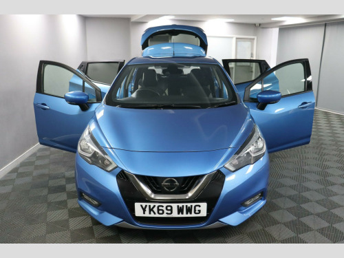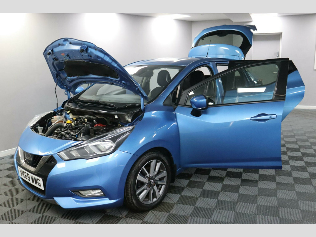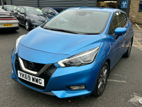 YK69WWG. First launched in 1982, the Nissan Micra has remained one of the most popular small hatchbacks on UK roads. This example comes with Low Mileage, Full Service History, a Lower 9E Insurance Group, and Good Fuel Economy — ideal for first-time drivers, city use, or anyone after a compact car that’s easy to park and affordable to run.Fitted with the Nissan Connect 7-Inch Touchscreen System with built-in Navigation, Apple CarPlay, Android Auto, Bluetooth, and DAB Radio. Cruise Control with Speed Limiter makes longer drives more manageable, and Rear Parking Sensors with a Colour Reversing Camera support easier manoeuvres. Safety kit includes Intelligent Emergency Braking and Lane Departure Warning, while comfort is taken care of with Automatic Air Conditioning and Privacy Glass. A great match for drivers wanting something straightforward, efficient, and better equipped than most in this class.This car comes with a Full Service History (5 records), a new 12 month MOT with no advisories, a clear HPI report and verified mileage for peace of mind.Finance is available, and we can provide a personalised video on request. Please note that some features (e.g., Navigation/CarPlay) may require an active subscription. Spec details can vary, so just ask if you’d like us to confirm anything.For more info or a finance quote, call ☎️ 0113 257 00 00.. Parking Sensors - Rear, Colour Reversing Camera, Apple CarPlay - Android Auto, Cruise Control and Speed Limiter, DAB Radio, Bluetooth, Nissan Connect 7in Touchscreen Navigation and Entertainment System, Air Conditioning - Automatic, Rear Privacy Glass, Lane Departure Warning and Prevention, Intelligent Emergency Braking with Pedestrian Recognition, Electric Folding-Heated Door Mirrors with LED Turn Indicators, USB - iPod Connectivity, Auto Dimming Rear View Mirror, ISOFIX on Front Passenger and Rear Seats, Steering Wheel Mounted Audio Controls, 17in Alloy Wheels, Exterior Pack - Power Blue, Cloth - Absolute Black with Grey Inserts. Full service history