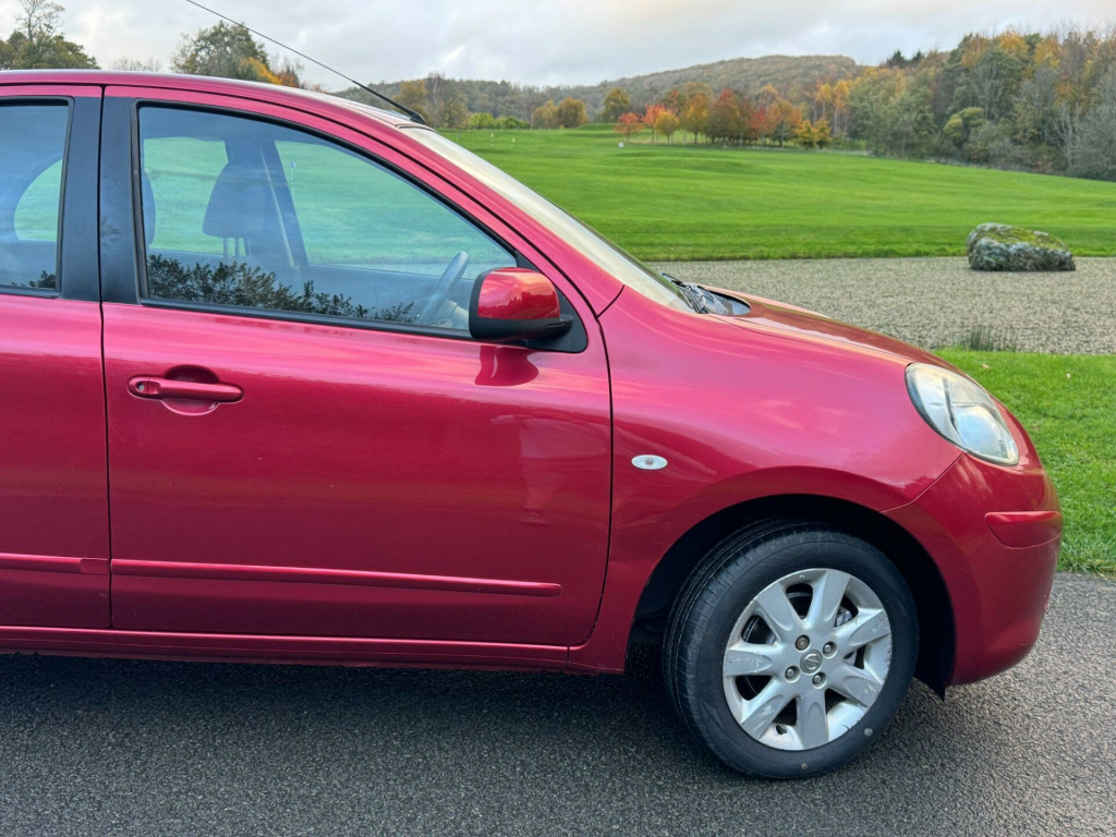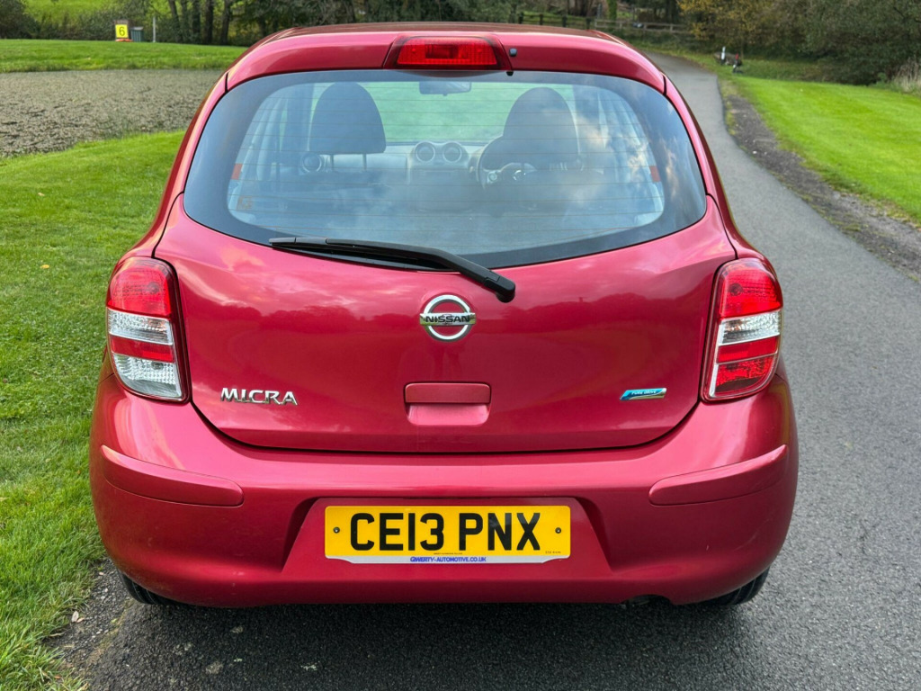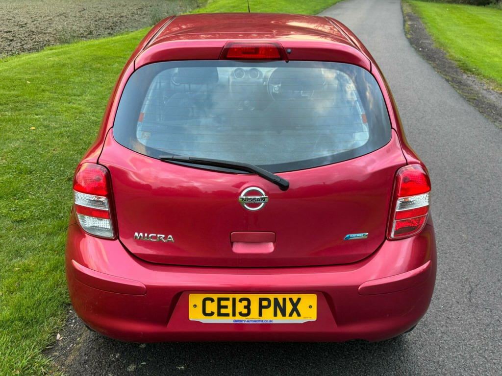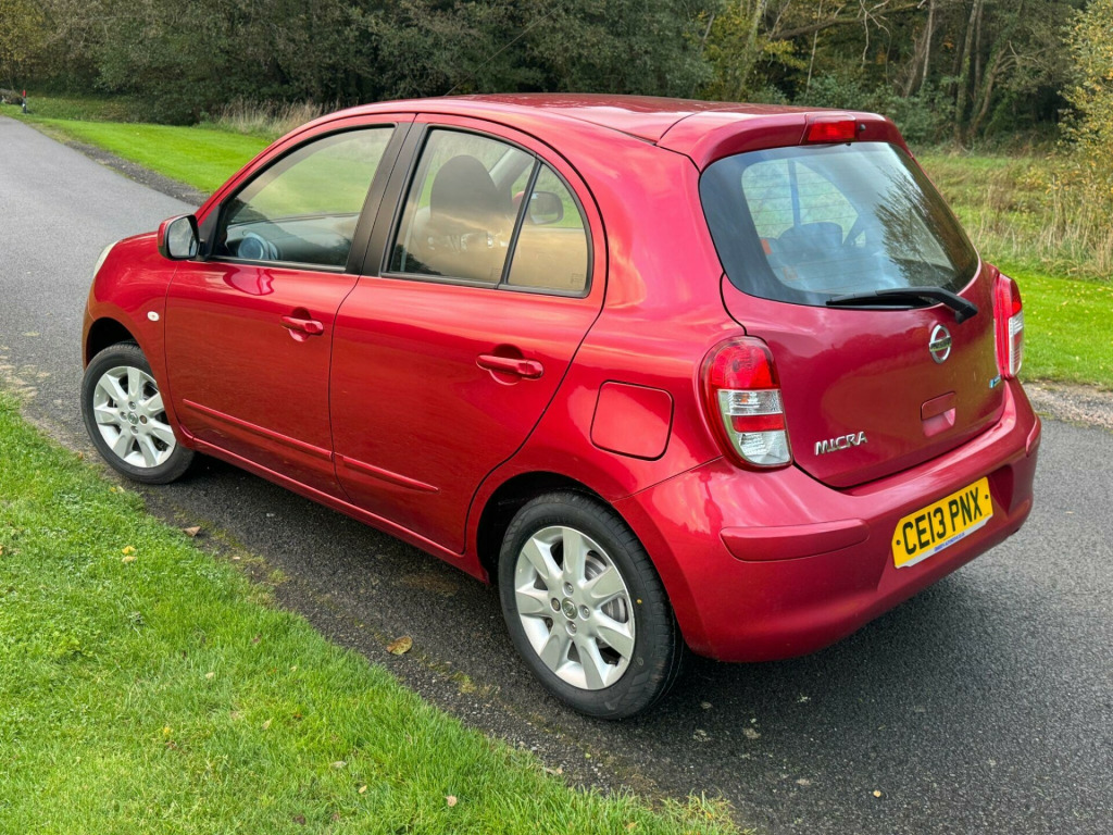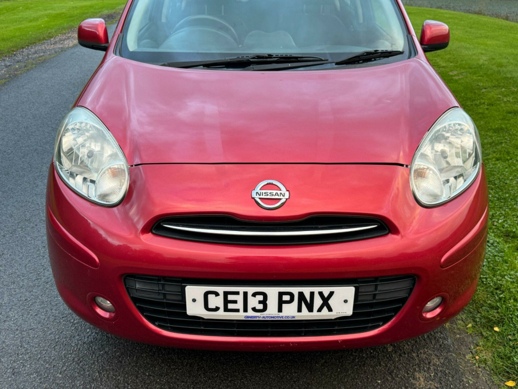 We are pleased to be presenting this 2013 Nissan Micra 1.2 12V Acenta Euro 5 5dr, finished in red and showing 44,000 miles. This example has had 2 owners in total - pre-registered by the supplying dealer and then one keeper from new.Serviced meticulously with 11 services recorded from new, showing consistent maintenance throughout. As part of our pre-sale preparation, we have replaced the clutch and fitted three brand new tyres.Running costs are excellent with ULEZ compliance, £35 annual road tax, and up to 56 MPG combined.Being the Acenta trim, this is a high specification model including air conditioning, alloy wheels, cruise control, electric windows, remote central locking, and Bluetooth connectivity.A very clean, low-mileage example that's been well cared for.As with all our vehicles, this Nissan has been treated to a multi-stage valet using the best products Auto Glym have to offer. Every car we sell receives, at minimum, a service as part of our pre-sale preparation. Supplied with 12 months MOT without advisory, our complimentary 3-month warranty, 12 months free AA breakdown cover, and 2 keys.Please do not hesitate to get in touch via Text, Call or Email at any time to arrange a viewing and test drive. Viewing available by appointment only. To find out more about us, head to our website at WWW.QWERTY-AUTOMOTIVE.CO.UK. Whilst every effort has been made to ensure the accuracy of the above information, sometimes errors may occurplease check with a salesperson. v socket - front, 15in alloy wheels, 3 adjustable rear head restraints, 60-40 split rear folding seats, abs - anti lock brakes, aux-in socket, air conditioning, airbag - driver, airbag - front passenger, airbags - curtain, airbags - side, armrest - driver, auto dimming rear view mirror, bluetooth telephone integration, body coloured door mirrors, body coloured handles, body coloured side mouldings, boot illumination, brake assist, bumpers - body coloured, chrome front grille, driver seat height adjustment, driver seatbelt reminder, driver and front passenger vanity mirrors, ebd - electronic brakeforce distribution, esp - electronic stability programme, electric door mirrors, electric speed-sensitive power steering, engine immobiliser, friendly lighting, front electric windows, front fog lights, front map reading lights, front seat back pockets, isofix child seat anchoring points, leather gear knob, leather steering wheel, pure drive badge, radio - cd player, rear window defroster, remote central locking, speakers x4, steering wheel - rake adjustment, steering wheel mounted audio controls, tachometer, trip computer, nissanconnect, cloth - black, cloth- black