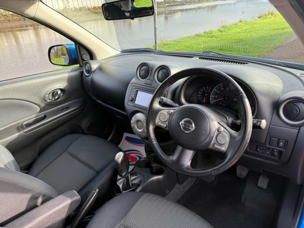 WE ARE DELIGHTED TO OFFER YOU FOR SALE THIS STUNNING LOW MILAGE NISSAN MICRA. THIS BRILLIANT VALUE FOR MONEY EXAMPLE HAS A FSH AND A GREAT SPECIFICATION THAT INCLUDES 15" ALLOYS, BLUETOOTH AUDIO, DAB RADIO, HANDSFREE TELEPHONE, SAT NAV, CLIMATE CONTROL WITH AIRCON, A 5-SPEED MANUA, USB INPUT, CRUISE CONTROL, AUTO WIPERS, ELECTRIC MIRRORS, ELECTRIC WINDOWS AND MUCH MUCH MORE! FOR YOUR ADDED PEACE OF MIND SHE WILL BE PROVIDED WITH A 60MONTH WARRANTY AS STANDARD AS WELL AS A FULL HEALTH CHECK PRIOR TO DELIVERY. IF YOU ARE INTERESTED PLEASE GET IN CONTACT WITH US AS SOON AS POSSIBLE AS SHE WON'T HANG AROUND WITH US FOR LONG! 12V Socket - Front, 15in Alloy Wheels, 3 Adjustable Rear Head Restraints, 60-40 Split Rear Folding Seats, ABS - Anti Lock Brakes, Active Blue, Air Conditioning, Airbag - Driver, Airbag - Front Passenger, Airbags - Curtain, Airbags - Side, Armrest - Driver, Auto Dimming Rear View Mirror, AUX-In Socket, Bluetooth Telephone Integration, Body Coloured Door Mirrors, Body Coloured Handles, Body Coloured Side Mouldings, Boot Illumination, Brake Assist, Bumpers - Body Coloured, Chrome Front Grille, Cloth - Black, Driver and Front Passenger Vanity Mirror, Driver Seat Height Adjustment, Driver Seatbelt Reminder, EBD - Electronic Brakeforce Distribution, Electric Door Mirrors, Electric Speed-Sensitive