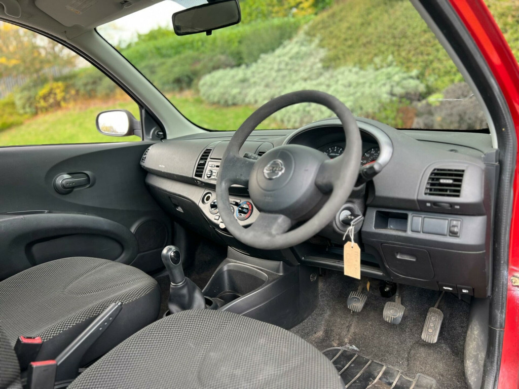 2009 Nissan Micra Visia Plus 1.2 petrol finished in red. 161,000 warranted miles on the clock. MOT til 19th November 2026. 1 former keeper from new. Service history available; 4 services, 2 Main dealers. Car drives well with no mechanical faults. Full V5 available. Comes with a top spec including; alloy wheels, leather steering wheel, Radio/CD, electric windows, central locking, AC/Climate control, TPMS, cup holders and many more. Nationwide Delivery Available. P/X Welcome. HPI Clear. ULEZ Compliant. 2 keys. Any questions do not hesitate to contact us. 07443456706. Whatsapp available as well justable steering column/wheel, air bag driver, air bag passenger, air bag side, air-conditioning, anti-lock brakes, body coloured bumpers, central door locking, centre console, centre rear seat belt, clock, cup holder, electric windows (front), electronic brake force distribution, head restraints, immobiliser, in car entertainment (radio/cd/mp3), mirrors external, power socket, power-assisted steering, rev counter, seat - isofix anchorage point, seat belt pre-tensioners, seats split rear, spare wheel, steel wheels, tachometer, upholstery cloth, windscreen wiper