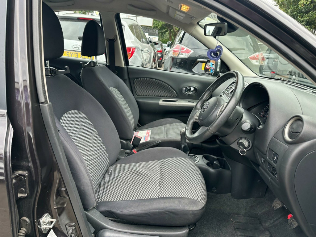 This 2015 Nissan Micra Acenta offers an economical and convenient driving experience, perfect for navigating city streets and beyond. Powered by an efficient 1.2 litre petrol engine, this model boasts a remarkable fuel economy of 57 miles per gallon, making it a cost effective choice for daily commutes. The Acenta trim level comes equipped with desirable features such as Bluetooth telephone integration for hands free calls and music streaming, and climate control to ensure a comfortable cabin temperature in all conditions. Additionally, automatic headlights with a dusk sensor provide added safety and convenience by illuminating the road automatically when light levels drop.The Nissan Micra Acenta stands out with its low insurance group rating, indicating that running costs are kept to a minimum. This, combined with its impressive 57 mpg fuel economy, highlights how this particular vehicle offers a more affordable and efficient ownership proposition compared to many other cars in its class. This 2015 model is a sensible option for drivers seeking reliability and practicality. v socket - front, 15in alloy wheels, 3 adjustable rear head restraints, 60-40 split rear folding seats, abs - anti lock brakes, aux-in socket, airbag - driver, airbag - front passenger, airbags - curtain, airbags - front side, auto dimming rear view mirror, auto rain sensing wipers, automatic headlights - dusk sensor, bluetooth telephone integration, body coloured door mirrors, body coloured handles, boot illumination, brake assist, bumpers - body coloured, chrome front grille, chrome interior door handles, climate control, cruise control with speed limiter, driver seat height adjustment, driver and front passenger vanity mirrors, ebd - electronic brakeforce distribution, esp - electronic stability programme, electric door mirrors, engine immobiliser, first aid kit, folding rear bench seat, front armrest, front electric windows, front fog lights, front map reading lights, front seat back pockets, gloss black centre console, high visibility jackets, isofix child seat anchoring points, led tail lights, leather steering wheel, power assisted steering, radio - cd player, rear window defroster, remote central locking, roof spoiler, safety pack, silver painted door finishers and gear base ring, spare wheel, speakers x4, speed limiter, steering wheel - rake adjustment, steering wheel mounted audio controls, tpms - tyre pressure monitoring system, tachometer, techometer, trip computer, usb port, warning triangle