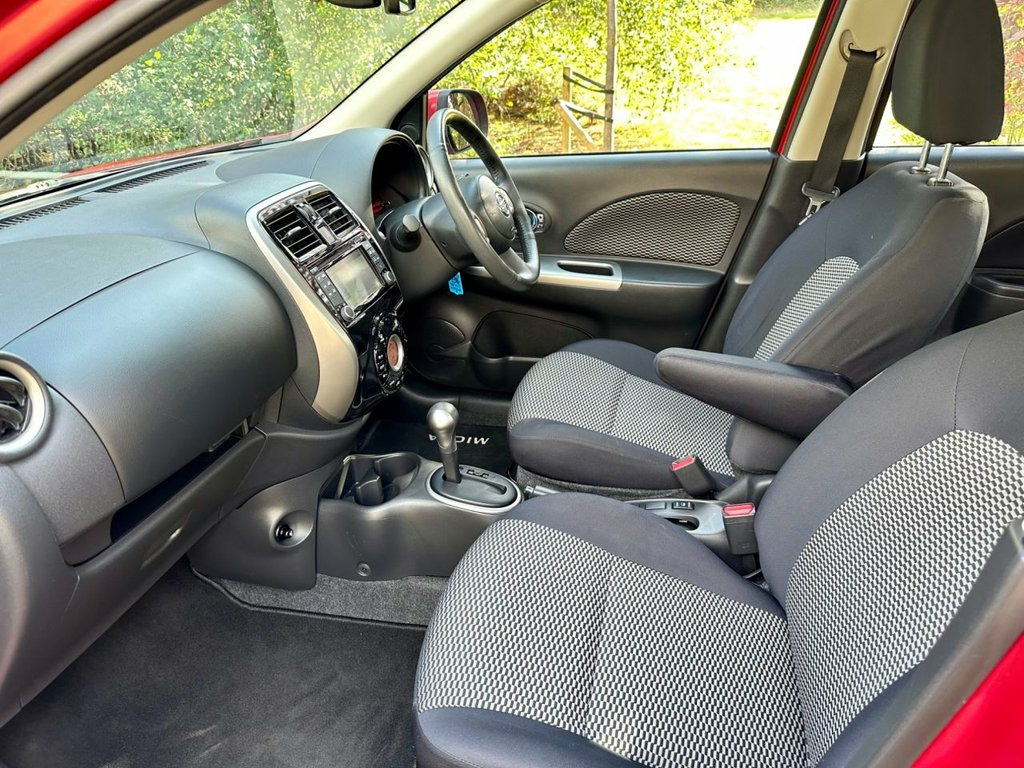This Nissan Micra 1.2 Acenta is a ULEZ Compliant petrol Automatic that has only had 1 owner and covered 8800 miles since new!!It has a Fully Documented Service History incorporating 8 services at Nissan. It has a specification including Nissan Connect Sat Nav, Automatic Transmission, Front /Rear Sensors,Electric Windows, Alloy Wheels, Air Conditioning, Bluetooth Connectivity/Music Streaming and more... Shiraz Red, NissanConnect, Tricot-Mesh Cloth - Black, 12V Socket - Front, 15in Alloy Wheels, 3 Adjustable Rear Head Restraints, 60-40 Split Rear Folding Seats, ABS - Anti Lock Brakes, AUX-In Socket, Airbag - Driver, Airbag - Front Passenger, Airbags - Curtain, Airbags - Front Side, Auto Dimming Rear View Mirror, Auto Rain Sensing Wipers, Automatic Headlights - Dusk Sensor, Bluetooth Telephone Integration, Body Coloured Door Mirrors, Body Coloured Handles, Boot Illumination, Brake Assist, Bumpers - Body Coloured, Chrome Front Grille, Chrome Interior Door Handles, Climate Control, Cruise Control with Speed Limiter, Driver Seat Height Adjustment, Driver and Front Passenger Vanity Mirror, EBD -