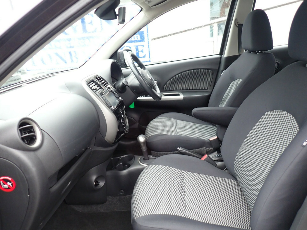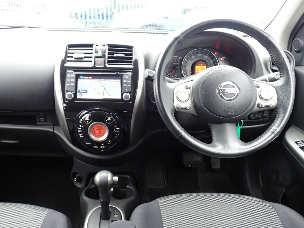 FULL MAIN DEALER SERVICE HISTORY * We are very pleased to offer this Nissan Micra Acenta 5-door hatchback with the 1.2 litre petrol engine and automatic transmission. It's finished in Metallic Nightshade with silver alloy wheels and a charcoal grey fabric interior, and comes equipped with the Nissan Connect colour touchscreen system with satellite navigation. It also comes with air conditioning, cruise control, USB port, remote central locking, ISOfix, split folding rear seats, front electric windows, electric door mirrors and much more. This superb Micra Automatic is available now for your viewing and test drive in Tonbridge where we are open 7 days a week. v socket - front, aux-in socket, bluetooth telephone integration, radio - cd player, speakers x4, usb port, 15in alloy wheels, body coloured door mirrors, body coloured handles, bumpers - body coloured, chrome front grille, chrome interior door handles, electric door mirrors, front electric windows, rear window defroster, roof spoiler, spare wheel, 3 adjustable rear head restraints, 60-40 split rear folding seats, auto dimming rear view mirror, auto rain sensing wipers, boot illumination, climate control, driver seat height adjustment, driver and front passenger vanity mirrors, folding rear bench seat, front armrest, front map reading lights, front seat back pockets, gloss black centre console, leather steering wheel, silver painted door finishers and gear base ring, steering wheel - rake adjustment, steering wheel mounted audio controls, abs - anti lock brakes, airbag - driver, airbag - front passenger, airbags - curtain, airbags - front side, brake assist, ebd - electronic brakeforce distribution, esp - electronic stability programme, engine immobiliser, first aid kit, high visibility jackets, isofix child seat anchoring points, remote central locking, safety pack, warning triangle, automatic headlights - dusk sensor, front fog lights, led tail lights, cruise control with speed limiter, power assisted steering, speed limiter, tpms - tyre pressure monitoring system, tachometer, techometer, trip computer