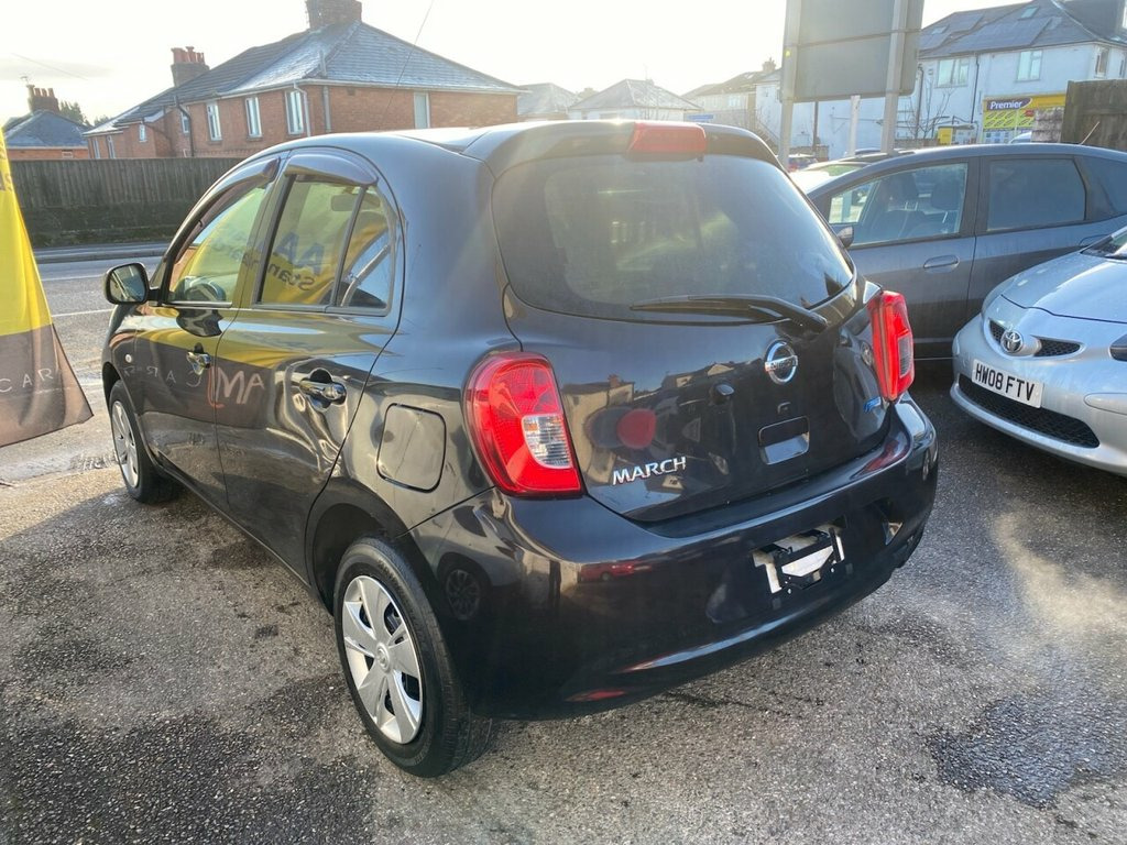 JAPANESE IMPORTED NISSAN MARCH/ MICRA. GENUINE LOW MILEAGE AUTOMATIC. CHEAP/ ECO. GOOD CONDITION THROUGHOUT. FINISHED IN METALLIC BLACK COLOUR. SPEC INCLUDES PRIVACY GLASS, WHEEL TRIMS, ELECTRIC WINDOWS AND MIRRORS, CLOTH INTERIOR, ISOFIX, REMOTE LOCKING, FOLDING DOOR MIRRORS, TRACTION CONTROL. **FINANCE AVAILABLE** We work with many finance providers to give you the best range of finance packages on offer that suit you, ranging from LOW DEPOSIT finance, NO DEPOSIT packages and packages to fit your personal circumstances. **WARRANTY** All cars come with a comprehensive 3 month warranty **PART EXCHANGE** We offer great rates and will take in any vehicle. Open 7 Days A Week 8.30 - 6pm (Sunday by appointment only) Call us to make an appointment to view our great selection of good value cars. We hold stock on 4 sites107 Seaview road, Poole, Bh12 3LR 300 Ringwood Road, Poole , BH14 0RY. ABS Brakes, Air Bag Driver, Air Bag Passenger, Alarm, Central Door Locking - Key, Central Door Locking - Remote, Central Locking, Centre Rear Seat Belt, Child Locks, Computer - Driver Information System, Drivers Information System, Front Head Restraints, Heated Rear Screen, Immobiliser, Power Assisted Steering, Seat - ISOFIX Anchorage Point, Seat - ISOFIX Anchorage Point - Rear, Isofix Child Seat Anchor Points, Traction Control, Electric Door Mirrors, Colour Coding - Body, Body Coloured Bumpers, Metallic Paint, Tinted glass, Trip Computer, Seating Capacity - Five Seats, Head Restraints - Front/Rear, Head Restraints - Front, Clock - Digital, Cup Holder, Adjustable Steering Column/Wheel - Rak