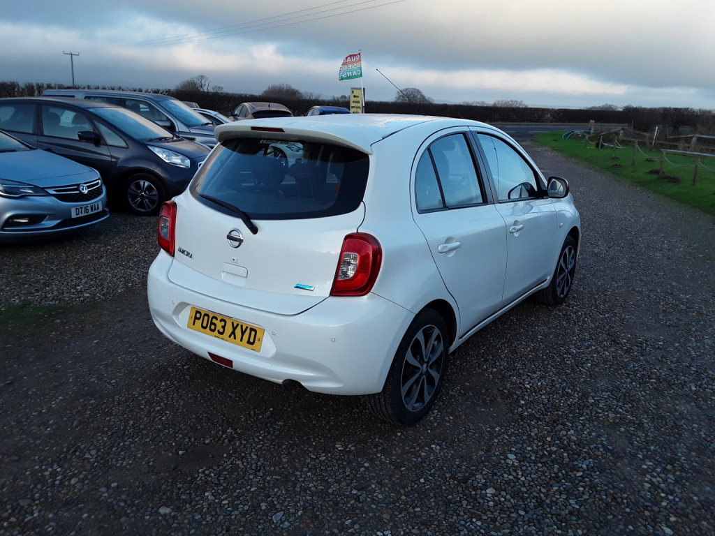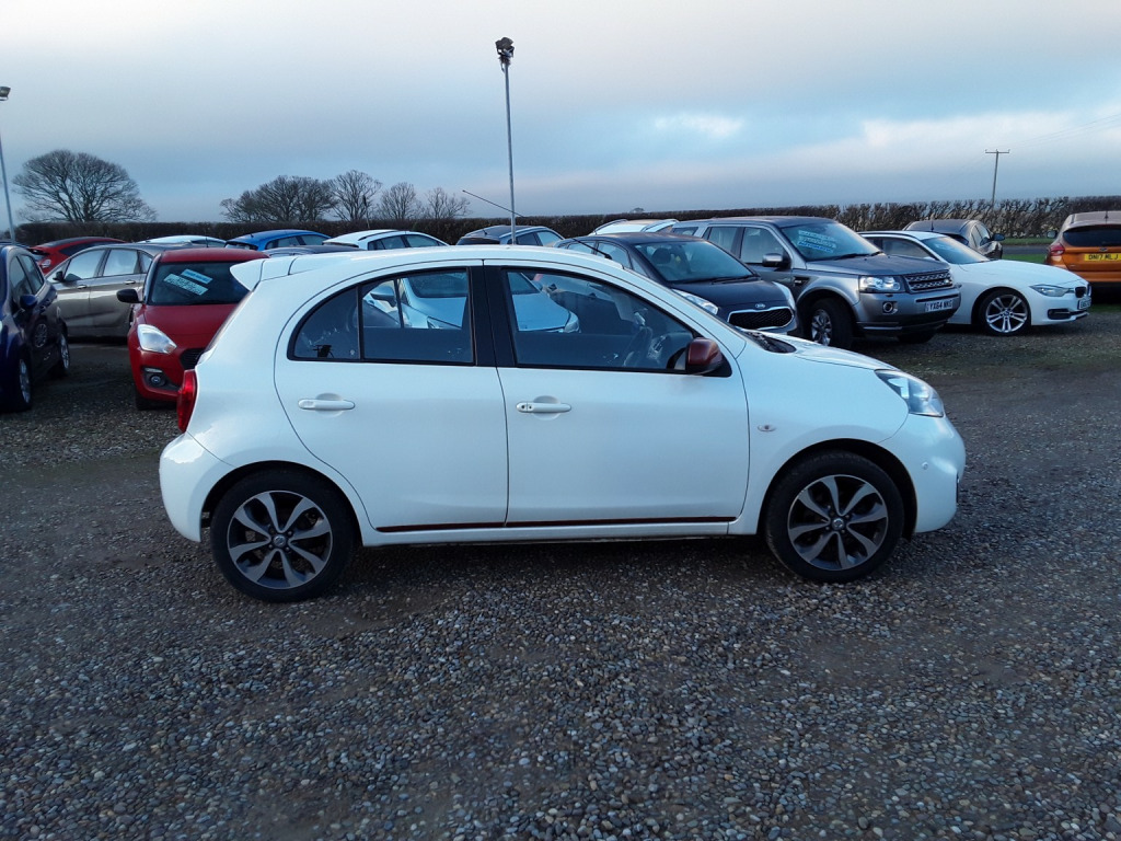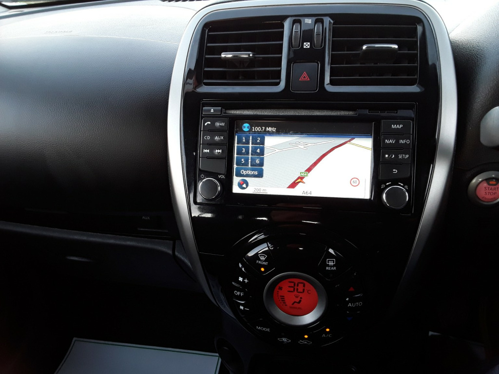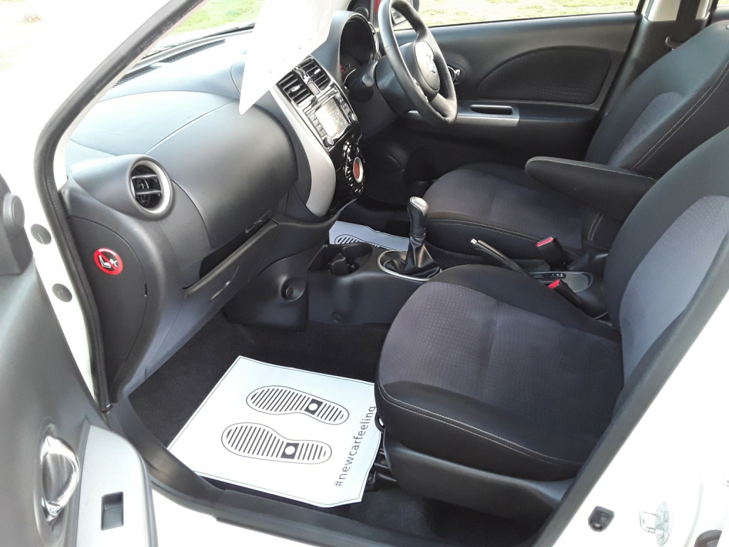 FINISHED IN SNOW WHITE WITH BLACK CLOTH SEATS. NISSAN MICRA TEKNA 5 DOOR.VERY LOW MILEAGE OF 41,000 MILES WITH SERVICE HISTORY. GREAT SPEC WITH IT BEING THE TEKNA MODEL :- FACTORY RED WING MIRRORS, REAR SPOILER, PARKING SENSORS FRONT AND REAR, SATELLITE NAVIGATION, BLUETOOTH, FOLDING ELECTRIC MIRRORS, KEYLESS ENTRY. VERY GOOD CONDITION INSIDE AND OUT. DRIVES FANTASTIC. COMES WITH 12 MONTHS M.O.T.AND A FRESH SERVICE TO BRING THE BOOK UP TO DATE. IDEAL 1ST CAR.