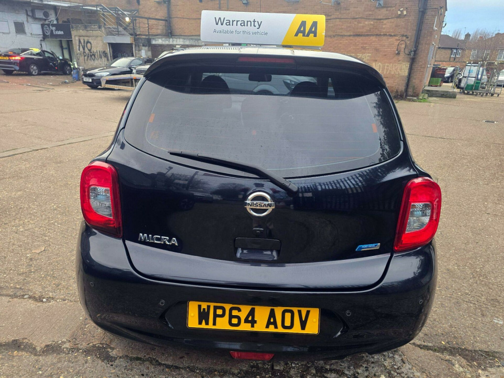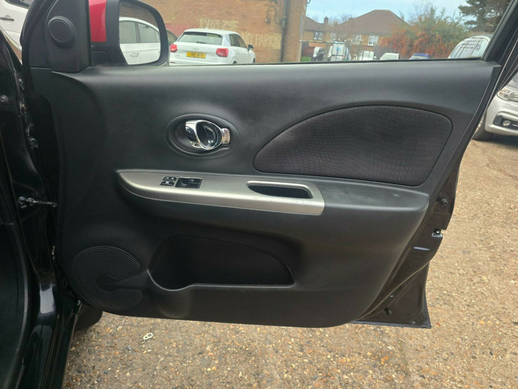 Nissan Micra 1.2 Tekna Euro 5 5dr - Finished in Black, New MOT, Full Service History, Clean Body Work, HPI Clear, For more information pleas call us 2014 63681 Miles Petrol Manual 2 Owners ULEZ CompliantThe Nissan Micra is known for its reliability, practicality, and low running costs. This Tekna model comes with smart features, a spacious interior, and efficient, petrol engine. With ULEZ compliance and Nissan's trusted engineering, ? ULEZ Compliant? Economical 1.2 Engine? SE Trim Alloy Wheels? Air Conditioning ? Bluetooth USB? Excellent Reliability & Comfort? Spacious Hatchback with Great PracticalityWhy Choose Chigwell Motors Ltd?? Trusted, family-run dealership with 15+ years of experience? All cars come with a minimum 6-month MOT & pre-sale inspection? Fresh service included before sale? Transparent fixed pricing - no haggling? Finance options available from 7.9% APR? Nationwide delivery & Click & Collect service? Same-day drive away available 688-690 Chigwell Road, Woodford Green, Essex, IG8 8AH 07392 792466 ? chigwellmotorshotmail.com chigwellmotors.co.uk v socket - front, 16in alloy wheels, 3 adjustable rear head restraints, 60-40 split rear folding seats, abs - anti lock brakes, aux-in socket, airbag - driver, airbag - front passenger, airbags - curtain, airbags - front side, auto dimming rear view mirror, auto rain sensing wipers, automatic headlights - dusk sensor, bluetooth telephone integration, body coloured door mirrors, body coloured handles, boot illumination, brake assist, bumpers - body coloured, chrome front grille, chrome interior door handles, climate control, cruise control with speed limiter, drive computer, driver seat height adjustment, driver and front passenger vanity mirrors, ebd - electronic brakeforce distribution, esp - electronic stability programme, electric folding door mirrors, engine immobiliser, first aid kit, folding rear bench seat, front armrest, front electric windows, front fog lights, front map reading lights, front seat back pockets, gloss black centre console, google send to car, high visibility jackets, isofix child seat anchoring points, intelligent key, led tail lights, leather gear knob, leather steering wheel, nissanconnect, parking aid - rear, parking slot measurement, power assisted steering, push start-stop button, radio - cd player, rear window defroster, remote central locking, roof spoiler, safety pack, silver painted door finishers and gear base ring, spare wheel, speakers x6, speed limiter, steering wheel - rake adjustment, steering wheel mounted audio controls, tpms - tyre pressure monitoring system, tachometer, techometer, touch screen - colour 5.8in, trip computer, usb port, warning triangle