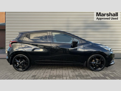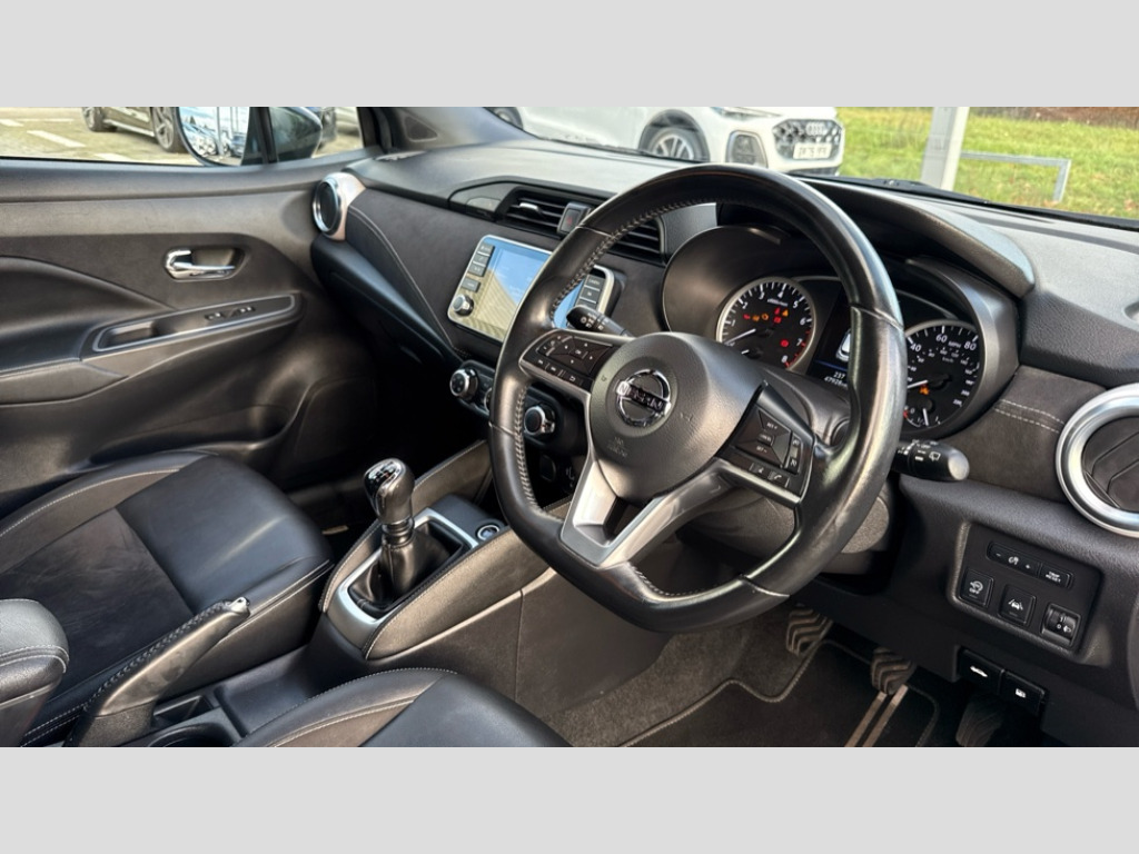 Nissan Micra 1.0 DIG-T 117 N-Sport 5dr Adjustable speed limiter, Bluetooth system, Lane departure warning system, Outside temperature gauge, Power assist steering, Rear parking sensors and rear view camera, Traffic sign recognition, Trip computer, 2 speakers, Radio/MP3 player, USB/iPod connection, Automatic activation of hazard warning lights, Automatic headlights, Black door handles, Body coloured bumpers, Electric folding door mirrors, Electrically adjustable door mirrors, Front fog lights, High beam assist, High mounted stop lamp, LED daytime running lights, Power front windows, Rain sensor windscreen wipers, Rear privacy glass, Rear roof spoiler, Rear wiper, 12V power point front, 2 height adjustable rear headrests, 3 cupholders, 60/40 split folding rear seat, Boot carpet, Boot compartment cover, Boot light, Casual cloth upholstery, Driver's seat manual height adjust, Driver/passenger sunvisors and vanity mirrors, Front and rear door pockets with bottle holders, Front console storage box, Gear shift indicator, Height adjustable front headrests, Height adjustable steering wheel, Isofix front passenger and rear seat preparation, Luggage compartment lighting, Map reading lamp, Parcel shelf, Reclining front seats, ABS+EBD+Brake assist, Crash sensor, Driver/Front Passenger airbags, ESP + ASR traction control + CSV understeer control, Forward emergency braking, Front and rear curtain airbags, Front side airbags, Height adjustable front seatbelts with pre-tensioners and load limiters, Hill start assist, Intelligent emergency braking with pedestrian recognition, Manual passenger airbag deactivation function, Rear seatbelts with pre-tensioners and load limiters, Seatbelt warning, Three 3 point rear seatbelts, Tyre pressure monitoring system, Warning triangle and first aid kit, Anti-theft immobiliser, Remote central locking, 17" Alloy wheels, Tyre repair kit