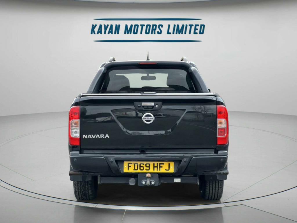 ------PART/EXCHANGE WELCOME. NATIONWIDE WIDE DELIVERY. -----,HPI CLEAR, ULEZ COMPLIANCE, FULL-SERVICE HISTORY, AND 1 YEAR FREE WARRANTY FOR YOUR PEACE OF MIND.=================With an exceptionally low mileage of just 35,300 miles for its 2019 registration, this Nissan Navara 2.3 dCi N-Guard Auto 4WD presents a compelling proposition. This Euro 6-compliant pickup truck boasts a robust 2.3 litre diesel engine paired with a smooth automatic transmission and a capable Four Wheel Drive system, ready for any challenge. It comes with a clear vehicle history check and a 12-month warranty for your peace of mind, alongside partial service history, with the last service completed on 12th November 2025 at 35,303 miles. Notable features include cosy heated front seats, rear parking sensors for easier manoeuvring, and striking LED headlights with a black bezel inlay.Further enhancing its appeal, this Navara is equipped with a 360-degree around view monitor, providing a comprehensive view of your surroundings, and Nissan Intelligent Key for keyless entry. Its impressive towing weight of 3500 kg makes it a practical choice for heavy loads. When considering fuel economy, this model achieves a notable 38 mpg, and its low CO2 emissions further highlight its efficiency compared to similar vehicles. This combination of low mileage, comprehensive features, and strong performance makes this Nissan Navara a standout option. v socket x3, 17in spare wheel - steel, 18in alloy wheels - black, 360 degree around view monitor, 5 link rear suspension, 5in tft combimeter, 8in touchscreen with nissan connect 2.0 entertainment system and satellite navigation, abs with ebd, aux socket, alarm and immobiliser, app integration, audio steering wheel switches, auto dimming rear view mirror, auto on-off headlights with follow me home, automatic ac - dual zone - pollen filter, black fog light surrounds, black front grille, black roof rails, black side steps, black step rear bumper, bluetooth audio streaming, bumper - front - body coloured, c-channel moveable tie-down point, chrome interior door handles, colour combination meter, cruise control with speed limiter, dab digital radio, driver - passenger - side - curtain and knee airbags, dusk sensing headlights, electric folding external door mirrors with indicator, electromagnetic lock on fuel lid, electronic limited slip differential - elsd, external temperature sensor, footwell illumination, forward emergency braking, front armrest, front cupholders x2, front electric windows, front fog lights, front glass top shade, gloss black door handles, gloss black door mirrors, hdc - hill descent control, head restraints - 3 rear, headlights - automatic levelling, headlights - washers, heated front seats, high level led brake light, hill start assist, isofix child seat anchoring points, led daytime running lights, led headlights with black bezel inlay, leather gear lever and handbrake, leather steering wheel, load restraint hooks, locking wheel nuts, magnetic locking fuel cap, mudguards - front and rear, n-guard black - blue side decals, n-guard carpet mats, nissan intelligent key, on board computer, passenger airbag cut-off switch, power assisted steering, privacy glass, push button engine start, rear electric windows, rear parking sensors x4, rear personal lights, rear ventilation, rear view camera, remote central locking, remote power door locks, seats - 4 way adjustable passenger, seats - 8 way adjustable drivers, spare wheel lock, speakers x4, spray-on bed liner, steering wheel audio and hands free controls, sunglasses holder, sunroof, sunvisors with mirror and lights, tailgate spoiler, trailer sway assist, usb port, vdc - vehicle dynamic control