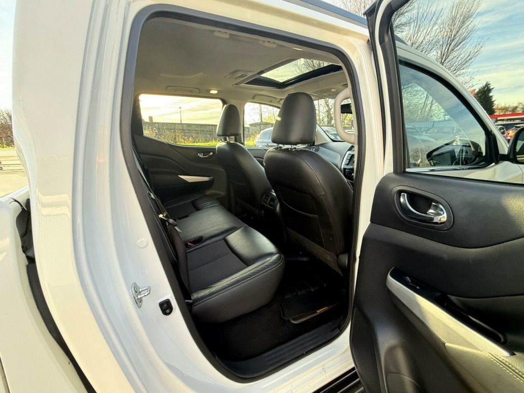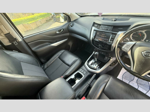 This 2019 Nissan Navara 2.3 dCi N Guard Auto 4WD Euro 6 4dr is a robust and capable pickup truck, perfect for both work and leisure. Featuring a powerful 2.3 litre diesel engine and a reliable four wheel drive system, this N Guard variant is built to handle challenging terrains. It meets Euro 6 emission standards, ensuring compliance with current regulations. The vehicle also boasts an impressive towing weight of 3500 kg, making it ideal for hauling heavy loads.Experience enhanced comfort and convenience with the Navara's notable features, including heated front seats for those colder mornings, and automatic headlights with a follow me home function for added safety. The dual zone automatic air conditioning with a pollen filter ensures a pleasant cabin environment for all occupants. Parking is made easier with the integrated rear view camera, and the LED headlights with black bezel inlay provide excellent visibility. This Navara achieves a fuel economy of up to 38 mpg, and its low CO2 emissions indicate a more efficient performance compared to many vehicles in its class. v socket x3, 17in spare wheel - steel, 18in alloy wheels - black, 360 degree around view monitor, 5 link rear suspension, 5in tft combimeter, 8in touchscreen with nissan connect 2.0 entertainment system and satellite navigation, abs with ebd, aux socket, alarm and immobiliser, app integration, audio steering wheel switches, auto dimming rear view mirror, auto on-off headlights with follow me home, automatic ac - dual zone - pollen filter, black fog light surrounds, black front grille, black roof rails, black side steps, black step rear bumper, bluetooth audio streaming, bumper - front - body coloured, c-channel moveable tie-down point, chrome interior door handles, colour combination meter, cruise control with speed limiter, dab digital radio, driver - passenger - side - curtain and knee airbags, dusk sensing headlights, electric folding external door mirrors with indicator, electromagnetic lock on fuel lid, electronic limited slip differential - elsd, external temperature sensor, footwell illumination, forward emergency braking, front armrest, front cupholders x2, front electric windows, front fog lights, front glass top shade, gloss black door handles, gloss black door mirrors, hdc - hill descent control, head restraints - 3 rear, headlights - automatic levelling, headlights - washers, heated front seats, high level led brake light, hill start assist, isofix child seat anchoring points, led daytime running lights, led headlights with black bezel inlay, leather gear lever and handbrake, leather steering wheel, load restraint hooks, locking wheel nuts, magnetic locking fuel cap, mudguards - front and rear, n-guard black - blue side decals, n-guard carpet mats, nissan intelligent key, on board computer, passenger airbag cut-off switch, power assisted steering, privacy glass, push button engine start, rear electric windows, rear parking sensors x4, rear personal lights, rear ventilation, rear view camera, remote central locking, remote power door locks, seats - 4 way adjustable passenger, seats - 8 way adjustable drivers, spare wheel lock, speakers x4, spray-on bed liner, steering wheel audio and hands free controls, sunglasses holder, sunroof, sunvisors with mirror and lights, tailgate spoiler, trailer sway assist, usb port, vdc - vehicle dynamic control