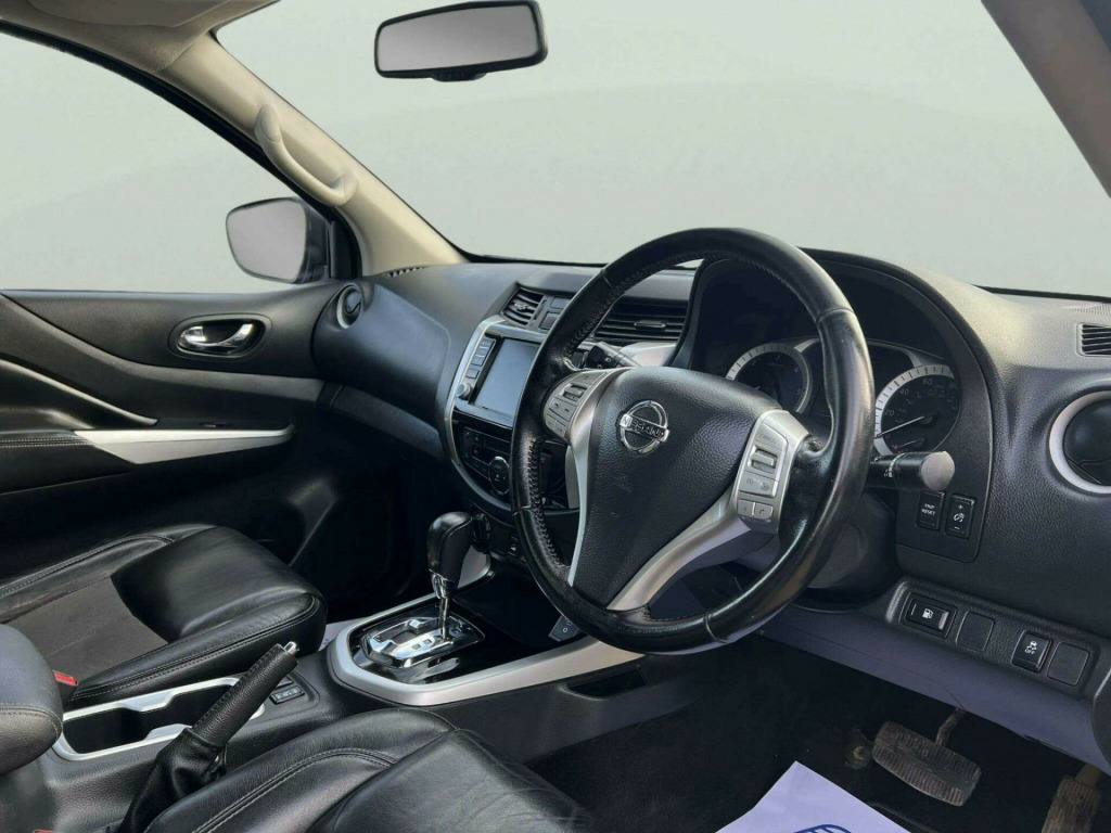 ------FINANCE OPTIONS AVAILABLE, PART/EXCHANGE WELCOME. NATIONWIDE WIDE DELIVERY. -----,HPI CLEAR, ULEZ COMPLIANCE, ONLY 1 OWNER FROM NEW, FULL-SERVICE HISTORY, 2 KEYS, AND 1 YEAR FREE WARRANTY FOR YOUR PEACE OF MIND.=================This 2021 Nissan Navara N-Guard Auto 4WD presents an exceptional ownership proposition, boasting a full service history and a clear vehicle history check, ensuring complete peace of mind. With only one owner from new and an MOT valid until January 2027, this Euro 6-compliant 2.3 dCi model has been meticulously maintained, with its last service completed on 24 January 2026 at 54,383 miles. The N-Guard trim level comes equipped with desirable features such as Nissan Intelligent Key with keyless entry, dual zone automatic air conditioning with climate control and a pollen filter, and dusk-sensing headlights that automatically switch on. Further enhancing convenience are the auto on-off headlights with follow me home functionality and Bluetooth audio streaming for seamless connectivity.The Nissan Navara N-Guard is a capable and well-equipped vehicle, offering a robust Four Wheel Drive system and a powerful 2.3-litre diesel engine. Its impressive towing weight of 3500 kg makes it ideal for a variety of tasks, while its fuel economy of 38 mpg highlights its efficiency for a vehicle of its class. The inclusion of a 12-month warranty provides an additional layer of security for the new owner, underscoring the quality and reliability of this particular Navara. v socket x3, 17in spare wheel - steel, 18in alloy wheels - black, 360 degree around view monitor, 5 link rear suspension, 5in tft combimeter, 8in touchscreen with nissan connect 2.0 entertainment system and satellite navigation, abs with ebd, aux socket, alarm and immobiliser, app integration, audio steering wheel switches, auto dimming rear view mirror, auto on-off headlights with follow me home, automatic ac - dual zone - pollen filter, black fog light surrounds, black front grille, black roof rails, black side steps, black step rear bumper, bluetooth audio streaming, bumper - front - body coloured, c-channel moveable tie-down point, chrome interior door handles, colour combination meter, cruise control with speed limiter, dab digital radio, driver - passenger - side - curtain and knee airbags, dusk sensing headlights, electric folding external door mirrors with indicator, electromagnetic lock on fuel lid, electronic limited slip differential - elsd, external temperature sensor, footwell illumination, forward emergency braking, front armrest, front cupholders x2, front electric windows, front fog lights, front glass top shade, gloss black door handles, gloss black door mirrors, hdc - hill descent control, head restraints - 3 rear, headlights - automatic levelling, headlights - washers, heated front seats, high level led brake light, hill start assist, isofix child seat anchoring points, led daytime running lights, led headlights with black bezel inlay, leather gear lever and handbrake, leather steering wheel, load restraint hooks, locking wheel nuts, magnetic locking fuel cap, mudguards - front and rear, n-guard black - blue side decals, n-guard carpet mats, nissan intelligent key, on board computer, passenger airbag cut-off switch, power assisted steering, privacy glass, push button engine start, rear electric windows, rear parking sensors x4, rear personal lights, rear ventilation, rear view camera, remote central locking, remote power door locks, seats - 4 way adjustable passenger, seats - 8 way adjustable drivers, spare wheel lock, speakers x4, spray-on bed liner, steering wheel audio and hands free controls, sunglasses holder, sunroof, sunvisors with mirror and lights, tailgate spoiler, trailer sway assist, usb port, vdc - vehicle dynamic control