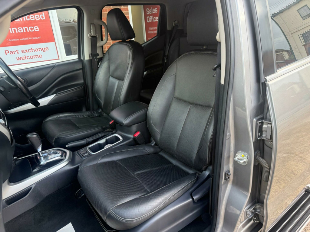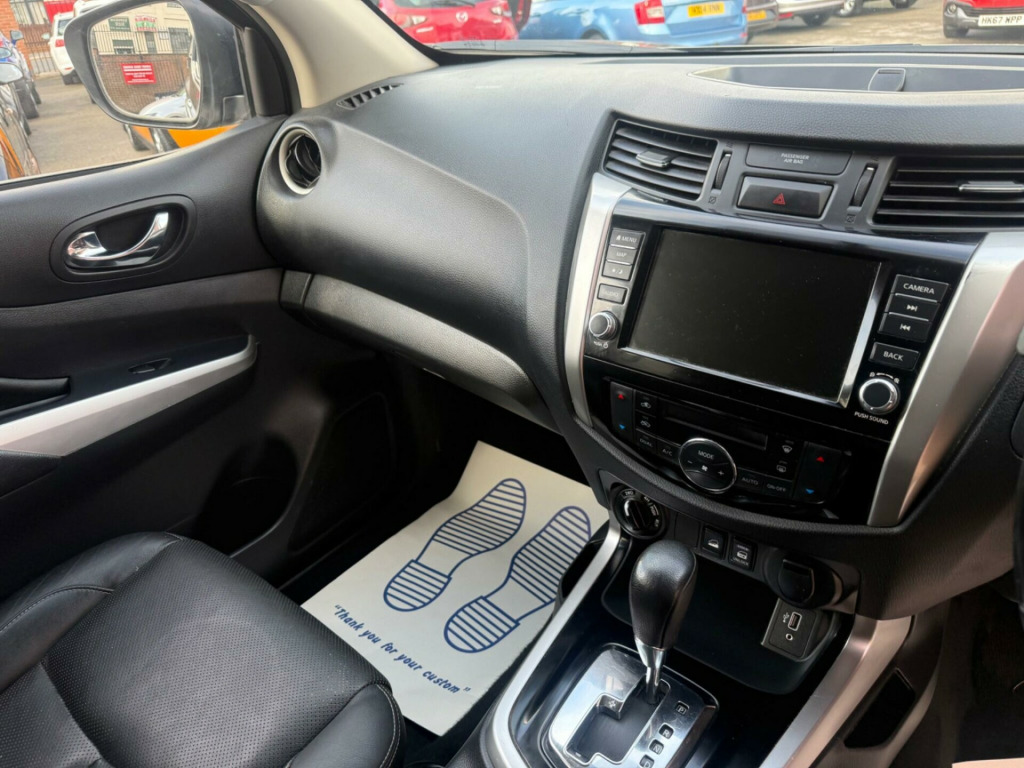 STUNNING TRUCK WITH FULL DEALER SERVICE HISTORY AND STILL UNDER NISSAN WARRANTY UNTIL 2026. 12 MONTHS MOT AND 2 KEYS. NEED FINANCE? PLEASE GIVE US A CALL, OR VISIT OUR WEBSITE TO QUOTE OR APPLY ONLINE.VIEWING ESSENTIAL.This 2021 Nissan Navara Tekna is a superb example, having had only one owner since new. This robust 2.3 dCi Tekna Auto 4WD Euro 6 4dr model offers a powerful 2.3 litre diesel engine and a capable four wheel drive system, perfect for tackling any terrain. It comes equipped with desirable features such as dual zone automatic air conditioning with a pollen filter, LED headlights with a distinctive black bezel inlay, and Bluetooth audio streaming for seamless connectivity. Manoeuvring is made effortless with the 360 degree around view monitor, and you can enjoy added comfort with heated front seats.With an impressive fuel economy of 38 mpg, this Navara Tekna offers excellent efficiency for its class. Its substantial towing weight of 3500 kg means it's ready for demanding tasks. The Euro 6 emission standard ensures it meets current environmental regulations. These combined attributes, including its single owner provenance and comprehensive feature set, position this Nissan Navara as a standout choice for those seeking a reliable and well equipped pick up truck., v socket x3, 17in spare wheel - steel, 18in alloy wheels, 360 degree around view monitor, 5 link rear suspension, 5in tft combimeter, 8in touchscreen with nissan connect 2.0 entertainment system and satellite navigation, abs with ebd, aux socket, alarm and immobiliser, app integration, audio steering wheel switches, auto dimming rear view mirror, auto on-off headlights with follow me home, automatic ac - dual zone - pollen filter, bluetooth audio streaming, bumper - front - body coloured, c-channel moveable tie-down point, chrome fog light surrounds, chrome front grille, chrome interior door handles, chrome step rear bumper, colour combination meter, cruise control with speed limiter, dab digital radio, door handles - chrome, door mirrors - chrome, driver - passenger - side - curtain and knee airbags, dusk sensing headlights, electric folding external door mirrors with indicator, electromagnetic lock on fuel lid, electronic limited slip differential - elsd, external temperature sensor, forward emergency braking, front armrest, front cupholders x2, front electric windows, front fog lights, front glass top shade, hdc - hill descent control, head restraints - 3 rear, headlights - automatic levelling, heated front seats, high level led brake light, hill start assist, isofix child seat anchoring points, led daytime running lights, led headlights with black bezel inlay, leather gear lever and handbrake, leather steering wheel, load restraint hooks, locking wheel nuts, magnetic locking fuel cap, mudguards - front and rear, nissan intelligent key, on board computer, passenger airbag cut-off switch, power assisted steering, privacy glass, push button engine start, rear electric windows, rear parking sensors x4, rear personal lights, rear ventilation, rear view camera, remote central locking, remote power door locks, seats - 4 way adjustable passenger, seats - 8 way adjustable drivers, silver roof rails, silver side steps, spare wheel lock, speakers x4, steering wheel audio and hands free controls, sunglasses holder, sunvisors with mirror and lights, tailgate spoiler, trailer sway assist, usb port, vdc - vehicle dynamic control