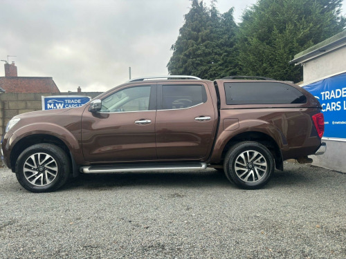 NO VAT,FULL SERVICE HISTORY,FULL LEATHER INTERIOR,REAR CANOPY,HEATED SEATS,PARKING CAMERA,SAT NAV,HPI CLEAR,ANY INSPECTION WELCOME,FINANCE OPTIONS AVAILABLE REPRESENTATIVE EXAMPLE 9.7 APR, WE ARE A CREDIT BROKER NOT A LENDER FOR FURTHER INFORMATION PLEASE NAVIGATE TO OUR WEBSITE www. mwtradecarsltd.co.uk AND CLICK ON THE FINANCE TAB. OR CONTACT US ON 01384861237. v socket x3, 17in spare wheel - steel, 18in alloy wheels, 360 degree around view monitor, 5 link rear suspension, 5in tft combimeter, 8in touchscreen with nissan connect 2.0 entertainment system and satellite navigation, abs with ebd, aux socket, alarm and immobiliser, app integration, audio steering wheel switches, auto dimming rear view mirror, auto on-off headlights with follow me home, automatic ac - dual zone - pollen filter, bluetooth audio streaming, bumper - front - body coloured, c-channel moveable tie-down point, chrome fog light surrounds, chrome front grille, chrome interior door handles, chrome step rear bumper, colour combination meter, cruise control with speed limiter, dab digital radio, door handles - chrome, door mirrors - chrome, driver - passenger - side - curtain and knee airbags, dusk sensing headlights, electric folding external door mirrors with indicator, electromagnetic lock on fuel lid, electronic limited slip differential - elsd, external temperature sensor, forward emergency braking, front armrest, front cupholders x2, front electric windows, front fog lights, front glass top shade, hdc - hill descent control, head restraints - 3 rear, headlights - automatic levelling, heated front seats, high level led brake light, hill start assist, isofix child seat anchoring points, led daytime running lights, led headlights with black bezel inlay, leather gear lever and handbrake, leather steering wheel, load restraint hooks, locking wheel nuts, magnetic locking fuel cap, mudguards - front and rear, nissan intelligent key, on board computer, passenger airbag cut-off switch, power assisted steering, privacy glass, push button engine start, rear electric windows, rear parking sensors x4, rear personal lights, rear ventilation, rear view camera, remote central locking, remote power door locks, seats - 4 way adjustable passenger, seats - 8 way adjustable drivers, silver roof rails, silver side steps, spare wheel lock, speakers x4, steering wheel audio and hands free controls, sunglasses holder, sunvisors with mirror and lights, tailgate spoiler, trailer sway assist, usb port, vdc - vehicle dynamic control