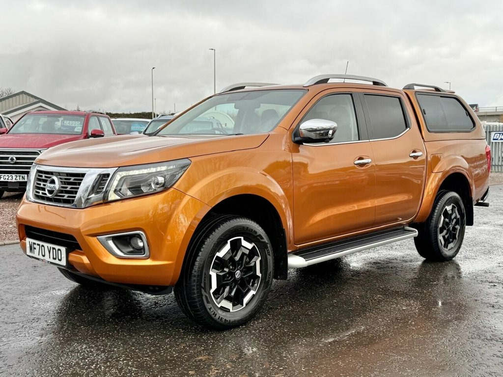 The 2020 Nissan Navara 2.3 dCi Tekna combines robust capability, practicality and premium features — making it an ideal pickup for work, leisure or everyday use. Driven by a 2.3-litre twin-turbo diesel engine delivering 190 bhp, it offers strong performance, excellent torque, and confident all-terrain handling thanks to its 4WD system and manual transmission. As a Tekna edition, this Navara is generously specified with leather-trimmed seats, heated front seats, 360° around-view camera, rear-view camera, satellite navigation, dual-zone climate control, alloy wheels, side-steps, and reversing sensors — bringing comfort and convenience to a durable workhorse. The Double Cab layout seats five comfortably, while the bed area provides generous load capacity for tools, equipment or leisure gear. With NO VAT to pay, it delivers excellent value and makes it especially appealing to private buyers. A tough, versatile and well-equipped pickup that blends rugged utility with refined features. tow bar , Rear load liner , SJS window canopy top , Leather - Graphite, Rear Differential Lock, Savannah Yellow, 12V Socket x3, 17in Spare Wheel - Steel, 18in Alloy Wheels, 360 Degree Around View Monitor, 5 Link Rear Suspension, 5in TFT Combimeter, 8in Touchscreen with Nissan Connect 2.0 , ABS with EBD, AUX Socket, Alarm and Immobiliser, App Integration, Audio Steering Wheel Switches, Auto Dimming Rear View Mirror, Auto On-Off Headlights with Follow Me Ho, Automatic AC - Dual Zone - Pollen Filter, Bluetooth Audio Streaming, Bumper - Front - Body Coloured, C-Channel Moveable Tie-Down Point, Chrome Fog Light Surrounds, Chrome Front Grille, Chrome Interior Door Handles, Chrome Step Rear Bumper,