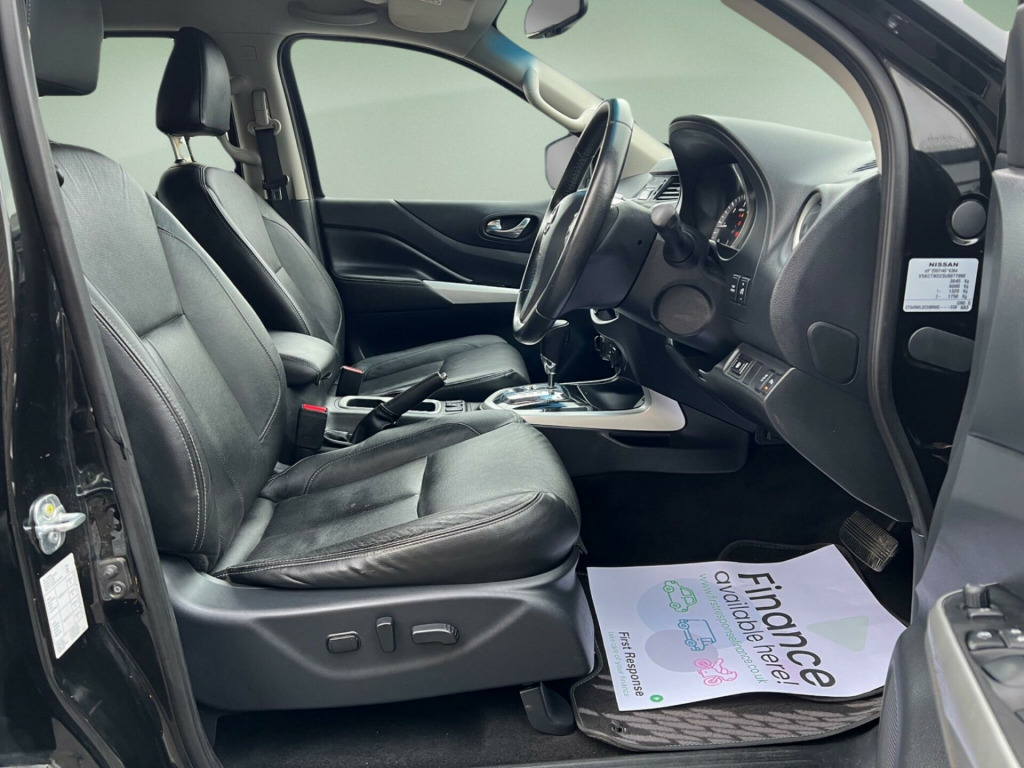 NISSAN NAVARA 2.3 DCi TEKNA -1 - AUTOMATIC - ULEZ - DONE 62665 MILES - BLACK - WITH BLACK LEATHER INTERIOR - 4 MAIN DEALER SERVICES - PRE DELIVERY SERVICE PROVIDED - LONG MOT - SAT NAV REVERSE CAMERA - PARKING SENSORS - KEYLESS ENTRY - PUSH BUTTON START HEATED ELECTRIC FRONT SEATS - FOLDING ELECTRIC DOOR MIRRORS - DAB RADIO - MULTI FUNCTION STEERING WHEEL -ORIGINAL NISSAN REAR BACK LIFT UP COVER - MULTIFUNCTION STEERING WHEEL -BLACK MULTISPOKE ALLOY WHEEL - REAR BARS - SIDE BARS - TOW BAR - FINANCE AVAILABLE - NATIONWIDE DELIVERY SERVICE CAN BE ARRANGE - VIEW MANY MORE PICK UP'S ON WWW.MOTOPORIUM.COM. 12V Socket x3, 16in Spare Wheel - Steel, 18in Alloy Wheels - Black, 5in TFT Combimeter, ABS with EBD and Brake Assist, AM-FM Radio and CD Player, AUX Socket for MP3 Player, Around View Monitor - 360 Bird-View, Auto Dimming Rear View Mirror, Auto On-Off Headlights with Follow Me Home, Automatic Air Conditioning with Dual Zone Climate Control, Black Load Bed Styling Bars with LED Spot Lamps, Black Side Styling Bars, Bluetooth Telephone Integration, Bumpers - Body Coloured, C-Channel Moveable Tie-Down Point, Chrome Daytime Running Light Surrounds, Chrome Interior Door Handles, Colour Reversing Camera, Cruise Control with Speed Limiter, Door Handles - Chrome, Door Mirrors - Chrome, Door Step Light, Driver - Passenger - Side - Curtain and Knee Airbags, Electric Folding and Heated Door Mirrors, Electronic Limited Slip Differential - eLSD with Cut Off, External Temperature Sensor, Forward Emergency Braking, Front Armrest, Front Electric Windows, Front Fog Lights with Chrome Surrounds, Grille - Front - Black, Grille - Front - Chrome, HDC - Hill Descent Control, Head Restraints - 3 Rear, Headlights - LED, Headlights - Pop Up Washers, Heated Front Seats, High Level LED Brake Light, Hill Start Assist, ISOFIX Child Seat Anchoring Points, LED Daytime Running Lights, LED Turn Indicator on Door Mirrors, Leather Gear Lever and Handbrake, Leather Steering Wheel, Load Bed Divider, Load Restraint Hooks, Locking Wheel Nuts, Mudguards - Front and Rear, Nissan Anti Theft System Immobiliser, Nissan Approved Alarm System, Nissan Intelligent Key, NissanConnect 2 Entertainment System with Satellite Navigation, Passenger Airbag Cut-Off Switch, Plastic Bed Cover, Pollen Filter, Power Assisted Steering, Privacy Glass, Push Start-Stop Button, Rear Electric Windows, Rear Parking Sensors, Rear Step - Bumper - Chrome, Rear Ventilation, Remote Central Locking, Roof Rails, Seats - 4 Way Adjustable Passenger, Seats - 8 Way Adjustable Drivers, Side Steps, Spare Wheel Lock, Speakers x6, Steering Wheel Mounted Audio Controls, Suspension - 5-Link Rear, Tailgate Spoiler, Trek-1 Stickers - Both Sides of Load Bed, Trip Computer, USB Port, VDC - Vehicle Dynamic Control, Wheel Nuts - Chrome. Full service history