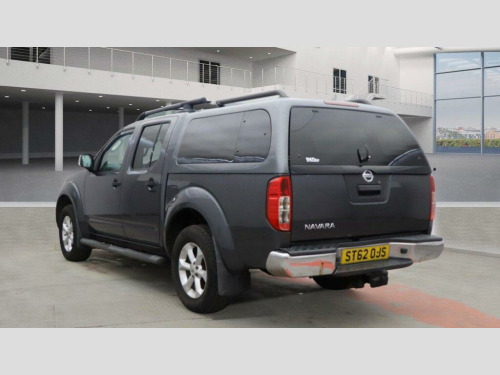 This 2013 Nissan Navara 2.5 dCi Tekna 4WD Euro 5 4dr presents exceptionally low mileage for its age, with only 91,000 miles recorded and a clear vehicle history check. This robust four wheel drive pickup is powered by a capable 2.5 litre diesel engine and boasts a generous towing weight of 2600 kg, making it ideal for demanding tasks. The Tekna trim level ensures a well equipped interior, featuring automatic headlights that activate with the dusk sensor, Bluetooth telephone integration for seamless connectivity, and heated front seats for added comfort.Further enhancing the driving experience, this Navara includes dual zone climate control, allowing both driver and passenger to set their preferred temperatures independently. Its low insurance group rating is a notable highlight, suggesting that running costs may be more economical compared to similar vehicles. This combination of practical capability, comfort features, and favourable running costs makes this Nissan Navara a compelling choice. v socket - front, 17in alloy wheels, abs - anti lock brakes, aux-in socket, airbag - driver, airbag - front passenger, airbags - curtain, airbags - side, alarm, aluminium front door entry guards, ambient footwell lighting, auto dimming rear view mirror, auto rain sensing wipers, automatic headlights - dusk sensor, bluetooth telephone integration, brake assist, c-channel moveable tie-down point, cd radio, chrome front grille, cruise control with speed limiter, door mirrors - chrome, door mirrors - puddle lights, drive computer, driver seat height adjustment, dual zone climate control, ebd - electronic brakeforce distribution, esp - electronic stability programme, electric folding and heated door mirrors, front fog lights, front map reading lights, front and rear electric windows, head restraints - active front, headlights - pop up washers, isofix child seat anchoring points, in-dash 6-cd autochanger, leather gear knob, leather steering wheel, power assisted steering, rear privacy glass, rear step - bumper, remote central locking, roof rails, seats - 60-40 split foldable rear bench, seats - drivers electric adjustment, seats - drivers lumbar support, seats - heated front, side steps, speakers x6, speed limiter, steering wheel mounted audio controls, sunglasses holder, superlocking for cab, tilt adjustable steering wheel, usb - ipod connectivity