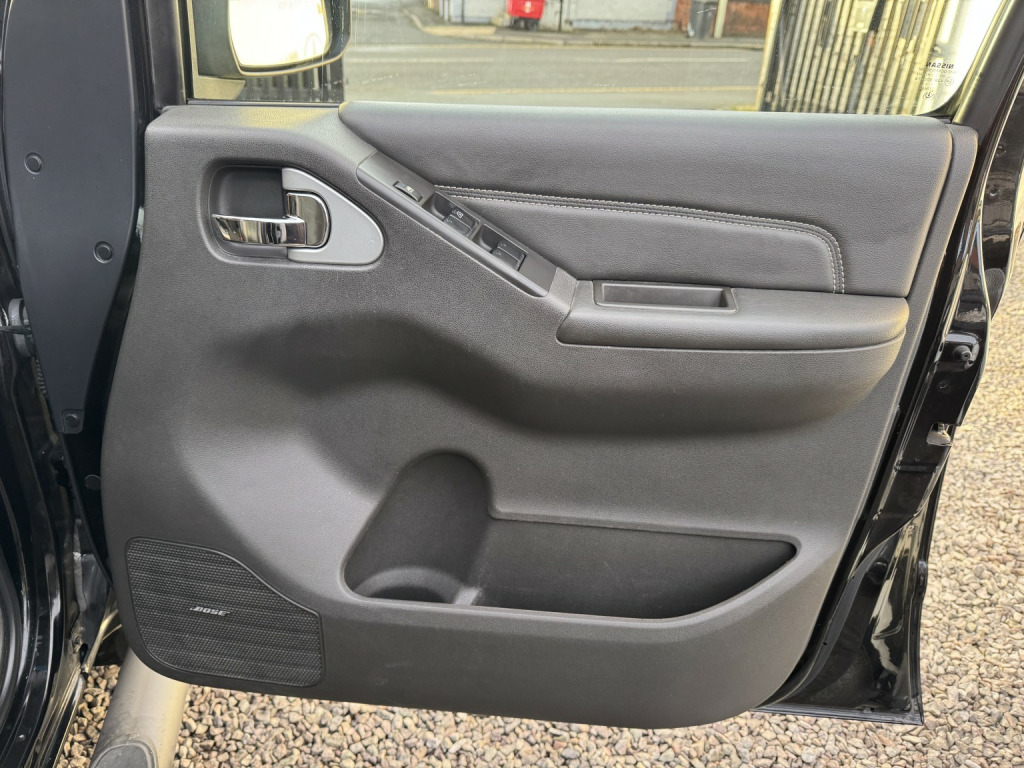 This 2014 Nissan Navara 3.0 dCi V6 Outlaw Auto 4WD Euro 4 4dr boasts a clear vehicle history, offering peace of mind for its next owner. This robust four wheel drive pickup is powered by a capable 3.0 litre diesel engine and features the desirable Outlaw trim. For added comfort and convenience, it includes heated front seats, a rear parking camera, and a premium BOSE audio system. The vehicle also benefits from automatic headlights and dual zone climate control, ensuring a pleasant driving experience in various conditions. , The Navara Outlaw is well equipped to handle a variety of tasks, with a substantial towing weight of 3000 kg. The inclusion of features such as the BOSE sound system and heated front seats demonstrate a higher level of specification compared to many other vehicles in its class. These elements contribute to a more refined and enjoyable ownership experience, making this Navara a compelling choice for those seeking a dependable and well appointed pickup.