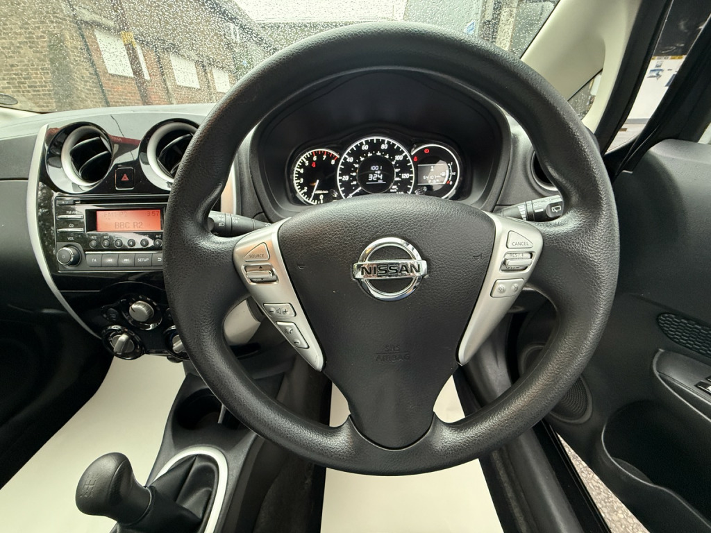 getaround in this immaculate 1.2 petrol Note from Nissan. This 5-speed manual Acenta model looks great finished in black metallic with contrasting dark cloth interior. It has a good spec that includes electric windows, cruise control, remote locking, rear parking sensors and air-conditioning. The car has a new advisory-free MOT and a comprehensive service history. It cones with the owners book pack, fully stamped service booklet, one key, locking wheel nut and clear HPi certificate. Phone, text or email for an appointment to view this sought after ulez compliant hatchback soon.