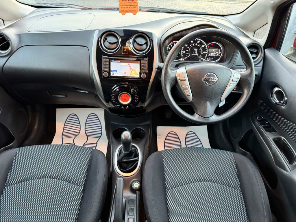THIS NISSAN NOTE IS IN GREAT CONDITION, LOVELY METALLIC PAINTWORK, COMES WITH SERVICE HISTORY, JUST HAD A SERVICE, MOT SEP 2026, TWO KEYS. THIS ACENTA PREMIUM FEATURES DRIVER SAFETY TECHNOLOGY - BLIND SPOT WARNING, LANE DEPARTURE, 360 CAMERA, CLIMATE CONTROL, REVERSE CAMERA, SAT-NAV, FRONT FOGLAMPS, DAB/BLUETOOTH/MEDIA, CRUISE CONTROL, AUTOLIGHTS, ELECTRIC WINDOWS X4, ALLOYS. A LOVELY SPACIOUS FAMILY CAR WITH GREAT FUEL ECONOMY AND LOW INSURANCE. WARRANTY INCLUDED.