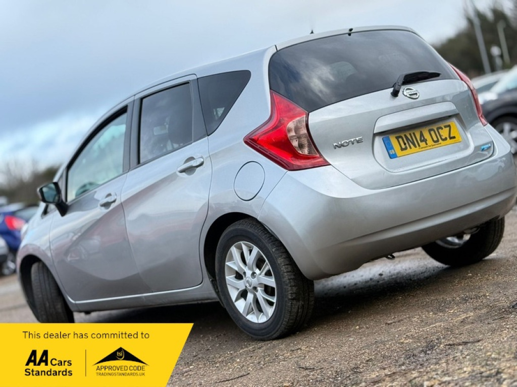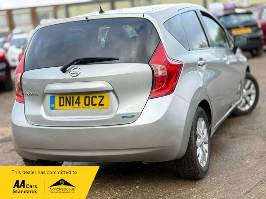 2 keys £20 road tax service history, last service done recently total 9 services done long MOT till 24/11/2026 Navigation System Climate Control Alloy Wheels Privacy Glass This 2014 Nissan Note Acenta Premium is a great choice, This Acenta Premium model is equipped with a 1.2 litre petrol engine and features Climate Control for your comfort. You will appreciate the excellent fuel economy of this Nissan Note, achieving an impressive 60 miles per gallon, which is better than many other vehicles in its class. It also boasts low CO2 emissions, making it an environmentally conscious option. Furthermore, the generous boot space provides ample room for your shopping or luggage, and its low insurance group rating means more savings for you. Clean body work, interior in excellent condition, 3 months warranty including parts and labour. Competitive finance rates available, call now for a free quote. Reserve this vehicle with a small deposit. Nationwide delivery service available. 12 months free AA breakdown cover. Part exchange welcome. We accept all major card payments, cash, and bank transfer. We are located in Hitchin, only 0.4 miles from the train station (8-minute walk). Address: 9 Bury Mead Road, Next to Euraqua UK Ltd, SG5 1RT For more cars visit: https://www.inhertsmotors.co.uk DVSA mileage 22k (29/03/2017), 33k (21/03/2018), 42k (20/03/2019), 50k (20/03/2020), 53k (19/03/2021), 58k (21/03/2022), 63k (28/03/2023), 67k (21/03/2024), 69k (24/03/2025) 15in Alloy Wheels, ABS, Alarm, Bluetooth, Body Coloured Bumpers, Brake Assist, CD Player, Central Locking, Climate Control, Cruise Control, Daytime Running Lights, ESP, Electric Windows, Engine Immobiliser, Folding Rear Seats, Front Airbags, Front Fog Lights, Heated Door Mirrors, ISOFix Anchor Point, Power Assisted Steering, Privacy/Tinted Glass, Radio, Satellite Navigation, Side Impact Airbags, Steering Wheel Controls, Traction Control