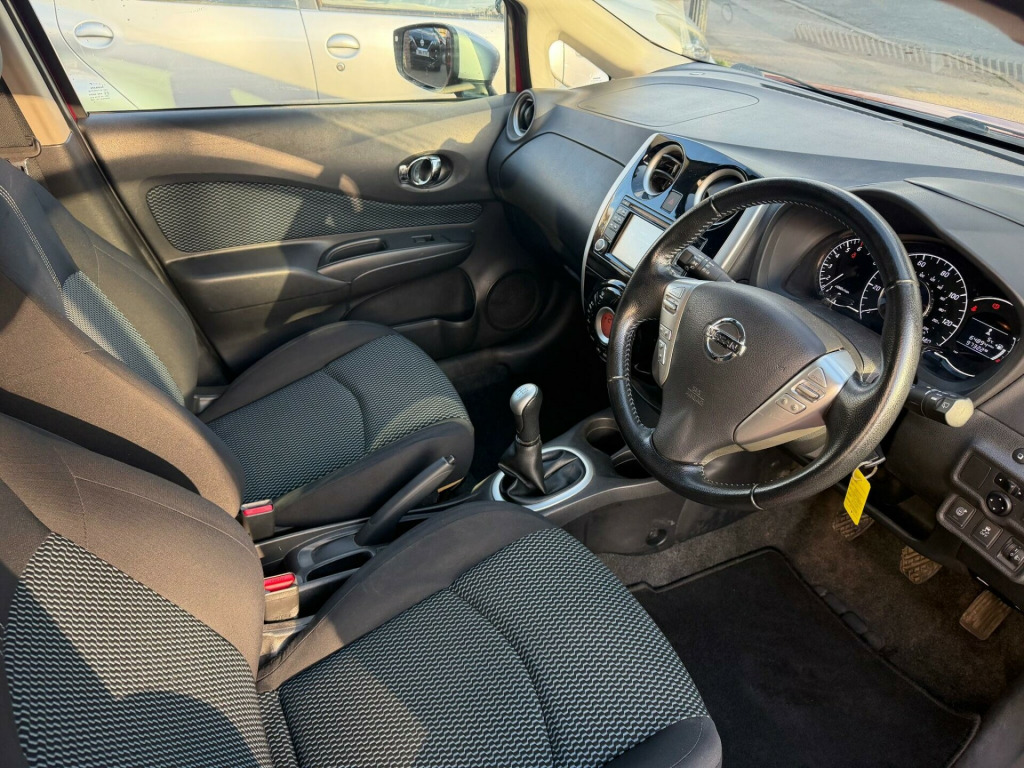 This 2015 Nissan Note n-tec is a standout choice, having been owned by just one careful keeper from new. This popular hatchback boasts a fuel efficient 1.2 litre petrol engine and comes equipped with a suite of useful features. Stay connected on the go with Bluetooth telephone integration, and enjoy effortless driving thanks to automatic headlights and climate control. Parking is made simpler with a rear view camera, and for added peace of mind, this model includes blind spot warning technology.The Nissan Note n-tec offers several advantages that set it apart. Its impressive fuel economy of 60 miles per gallon means fewer trips to the petrol station, while its low CO2 emissions contribute to a lower environmental impact. You'll also appreciate the generous boot space, perfect for shopping trips or luggage, and its placement in a low insurance group makes it an economical choice for many drivers. in alloy wheels, 6 speakers, 60-40 split rear folding seats, abs - anti lock brakes, airbag - driver, airbag - front passenger, airbags - curtain, airbags - side, alarm, armrest - rear, auto rain sensing wipers, automatic headlights, blind spot warning, blue stitched front seats, blue stitching on steering wheel, bluetooth telephone integration, body coloured side mouldings, brake assist, bumpers - front sport, cd radio, carbon look rear bumper, chrome front lip and trunk finisher strip, climate control, cruise control with speed limiter, dab radio, daytime running lights, driver seat height adjustment, ebd - electronic brakeforce distribution, esp - electronic stability programme, eco driving mode, eco meter, electrically adjustable and heated door mirrors, first aid kit, flexi-board boot storage system, front armrest, front cabin and luggage compartment lights, front fog lights, front and rear electric windows, gear knob - blue stitching, gear shift indicator, gloss black centre console, glossy black front grille, halogen headlamps, head restraints - 3 rear, head restraints - front, headlight finisher - black, headlights - washers, high visibility jackets, isofix child seat anchoring points, immobiliser, lane departure warning, leather steering wheel, moving object detection, nissanconnect, passenger airbag cut-off switch, pollen filter, power assisted steering, rear cabin light, rear privacy glass, rear view camera, remote central locking, safety kit, safety shield, satin silver door handles, satin silver door mirrors, service indicator, sliding rear bench, steering wheel - rake adjustment, steering wheel mounted audio controls, tpms - tyre pressure monitoring system, traction control, trip computer, tyre repair kit, usb-aux socket input, warning triangle, n-tec badge